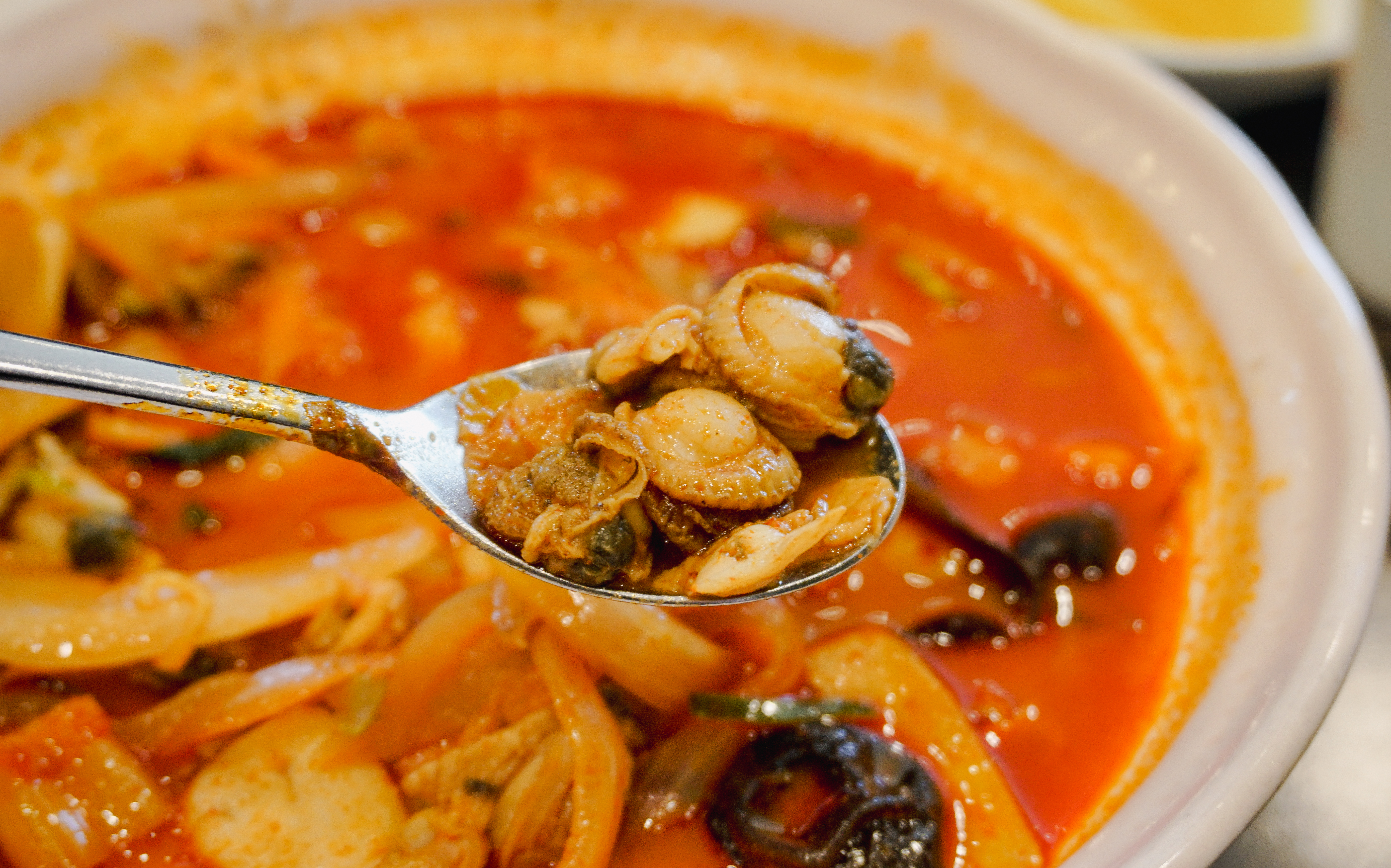 짬뽕은 가리비, 홍합, 바지락, 돼지고기 등 다양한 재료들이 들어가 있었고, 양파, 배추, 대파, 호박 등 채소들도 여유 있게 들어가 있어 얼큰하면서도 시원한 국물이 좋았습니다. 특히 앞서 설명드린 것처럼 수제비짬뽕은 쫀득한 식감에 수저로 떠먹기 좋아서 먹기 편해서 더 좋았습니다. 물론 일반 짬뽕도 맛있고요.