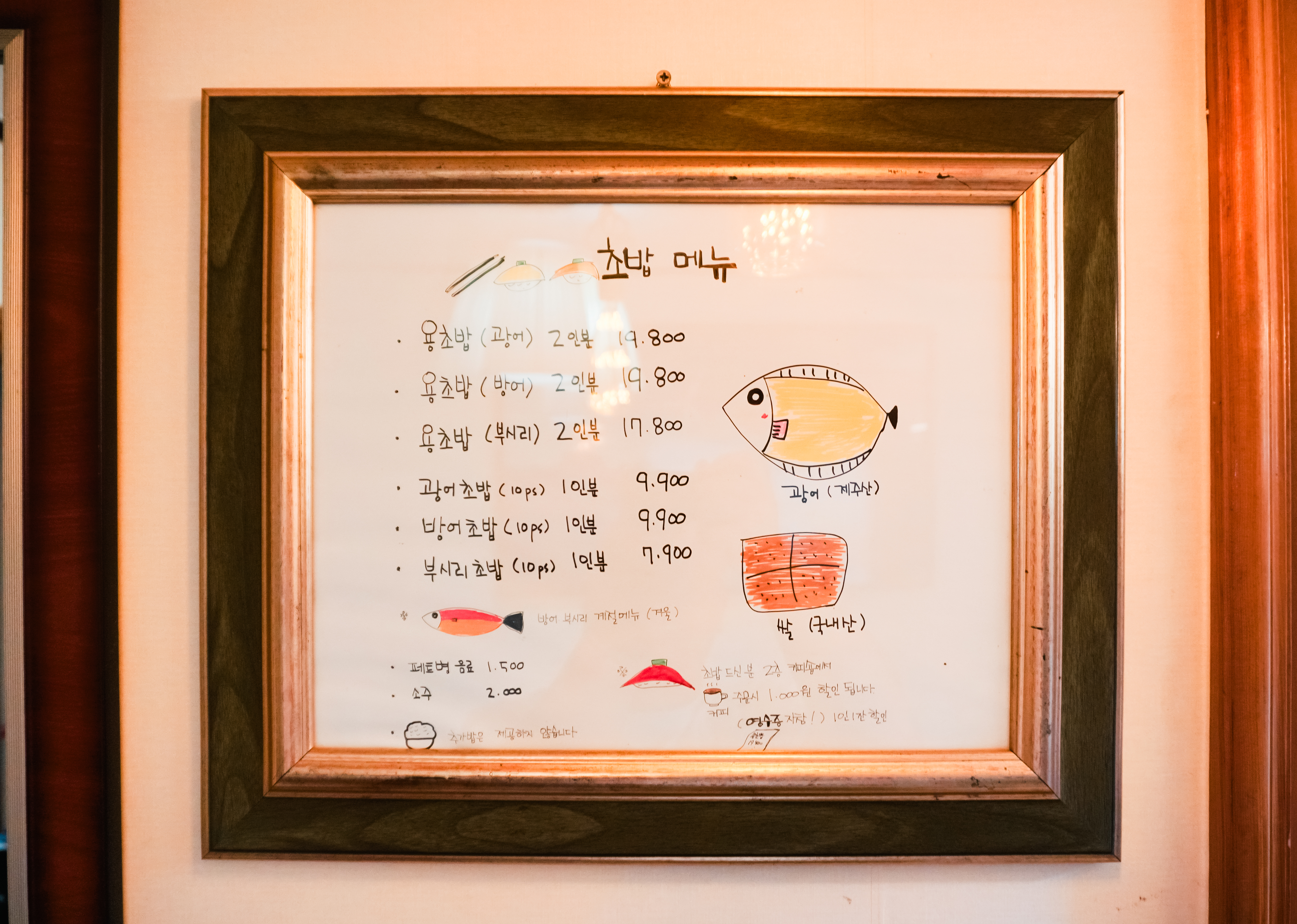 가게 내부로 들어가면 위처럼 예스럽고, 아기자기한 분위기의 실내를 만날 수 있었고, 사실 대왕초밥을 판매하는 가게라서 사장님도 굉장히 유머러스한 분일줄 알고 방문했는데, 생각보다 조용하신 편이시더라고요. 그래도 가게 곳곳을 보면서 사장님의 성품을 대략적으로 알 수 있을듯한 요소를 많이 발견할 수 있었습니다.