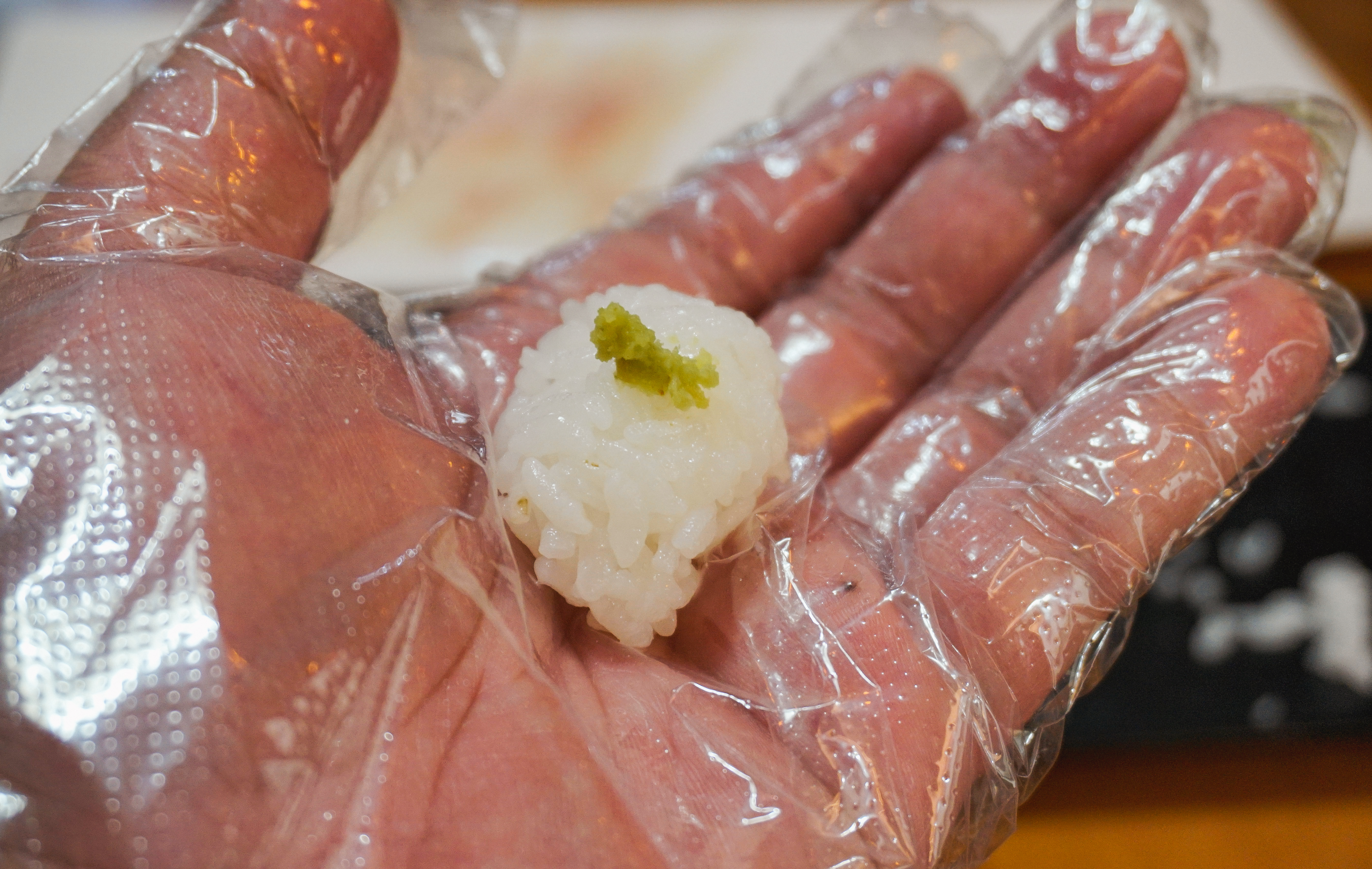 용초밥의 메뉴는 광어, 방어, 부시리, 광어초밥, 방어초밥, 부시리초밥 등이 있었습니다. 여기서 용초밥이라는 메뉴가 대왕초밥을 의미하며, 먹는 방법은 먼저 ➊ 대왕초밥의 기념촬영(인증샷)을 찍은 다음, ➋ 초밥접시를 사장님께 가져가면 횟감을 먹기 좋은 크기로 썰어주셨습니다. 그 사이 ❸ 초밥을 약 25피스 정도 만들어주면 되었고, ➍ 비닐장갑을 이용해 먹거나, 젓가락으로 먹으면 되었습니다.