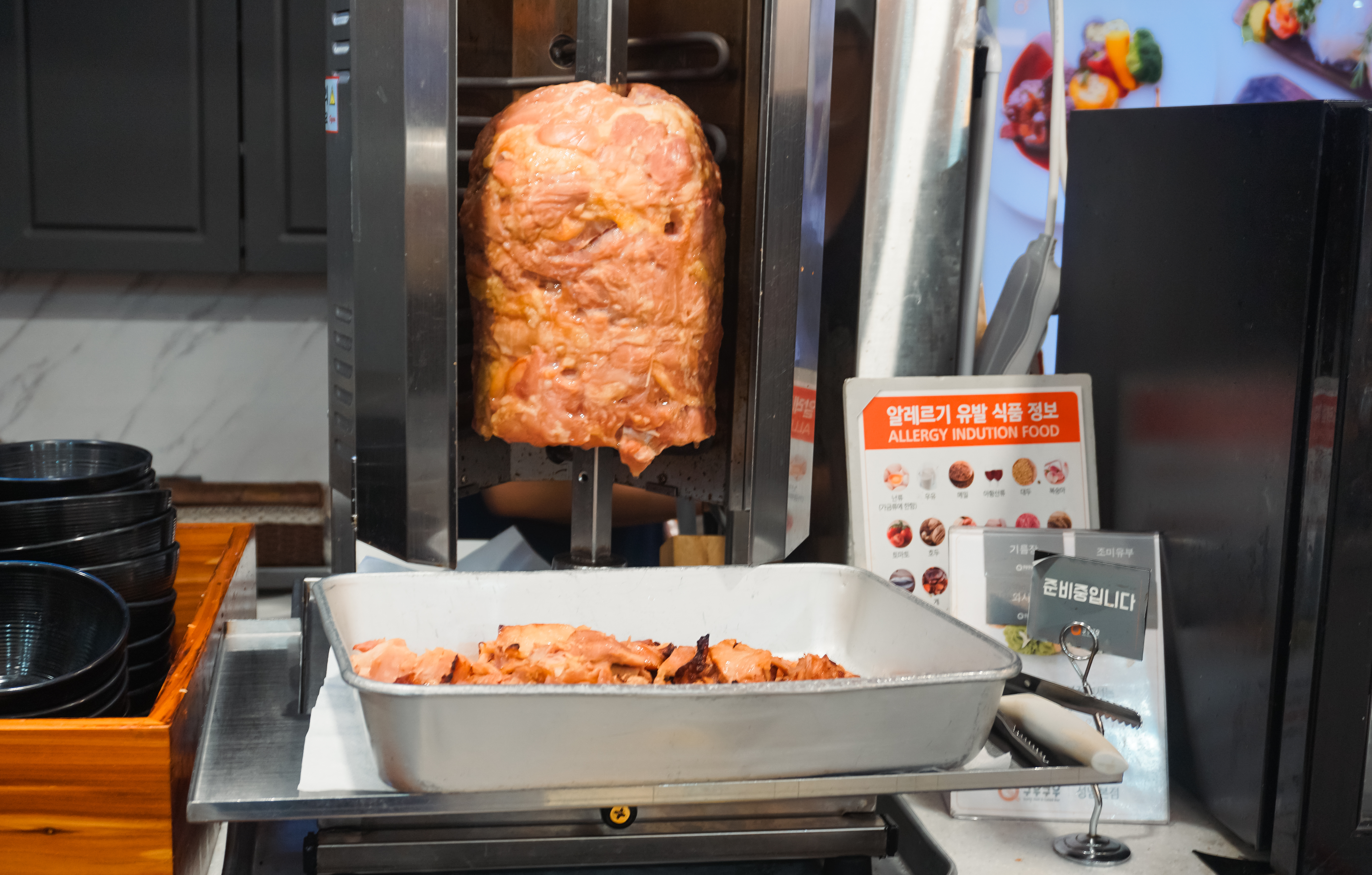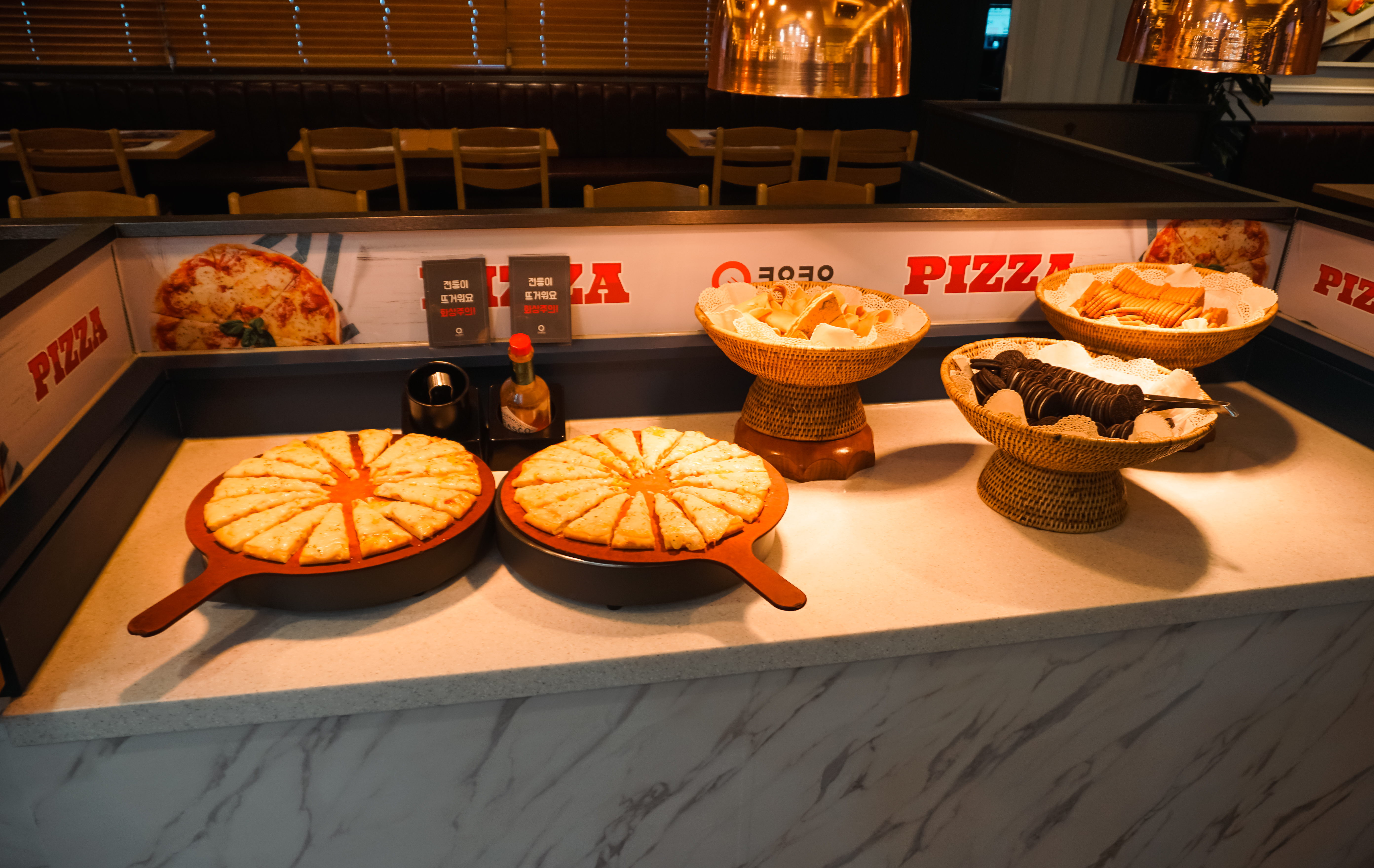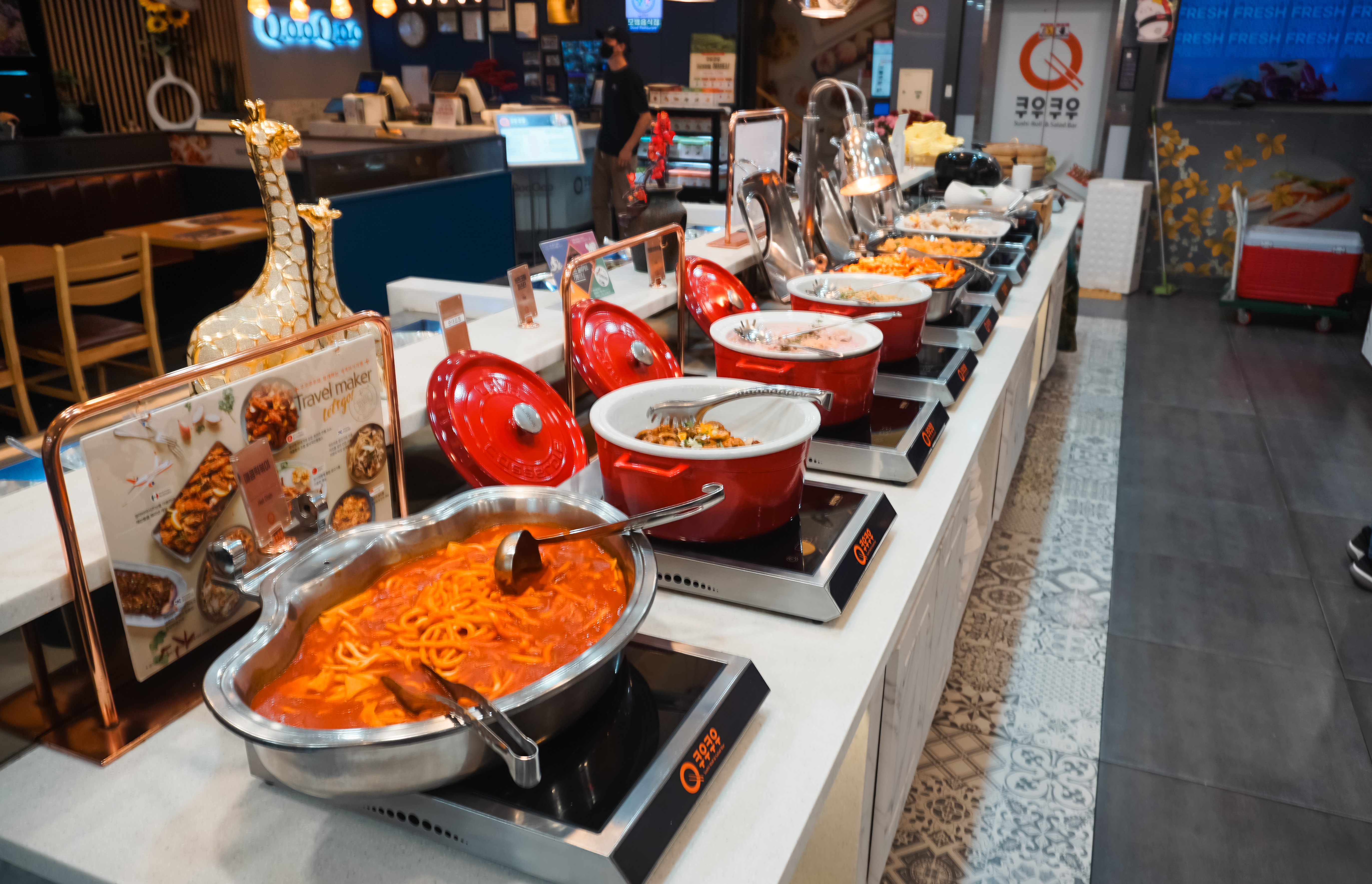 11시 쿠우쿠우 오픈시간에 맞춰서 가게에 입장할 수 있었습니다. 메뉴는 피자, 치킨, 볶음, 구이, 튀김요리, 샐러드 등 다양하게 있었습니다. 저는 뷔페에 가면 처음에는 조금씩 이것저것 담아 오다가 입맛에 맞는 메뉴가 있으면, 많이 담아 오거나 여러 번에 걸쳐서 담아 오는 편인데, 본점이라고 해서 특별히 메뉴의 가짓수가 많지는 않았지만, 괜찮은 메뉴들이 많이 보였습니다.