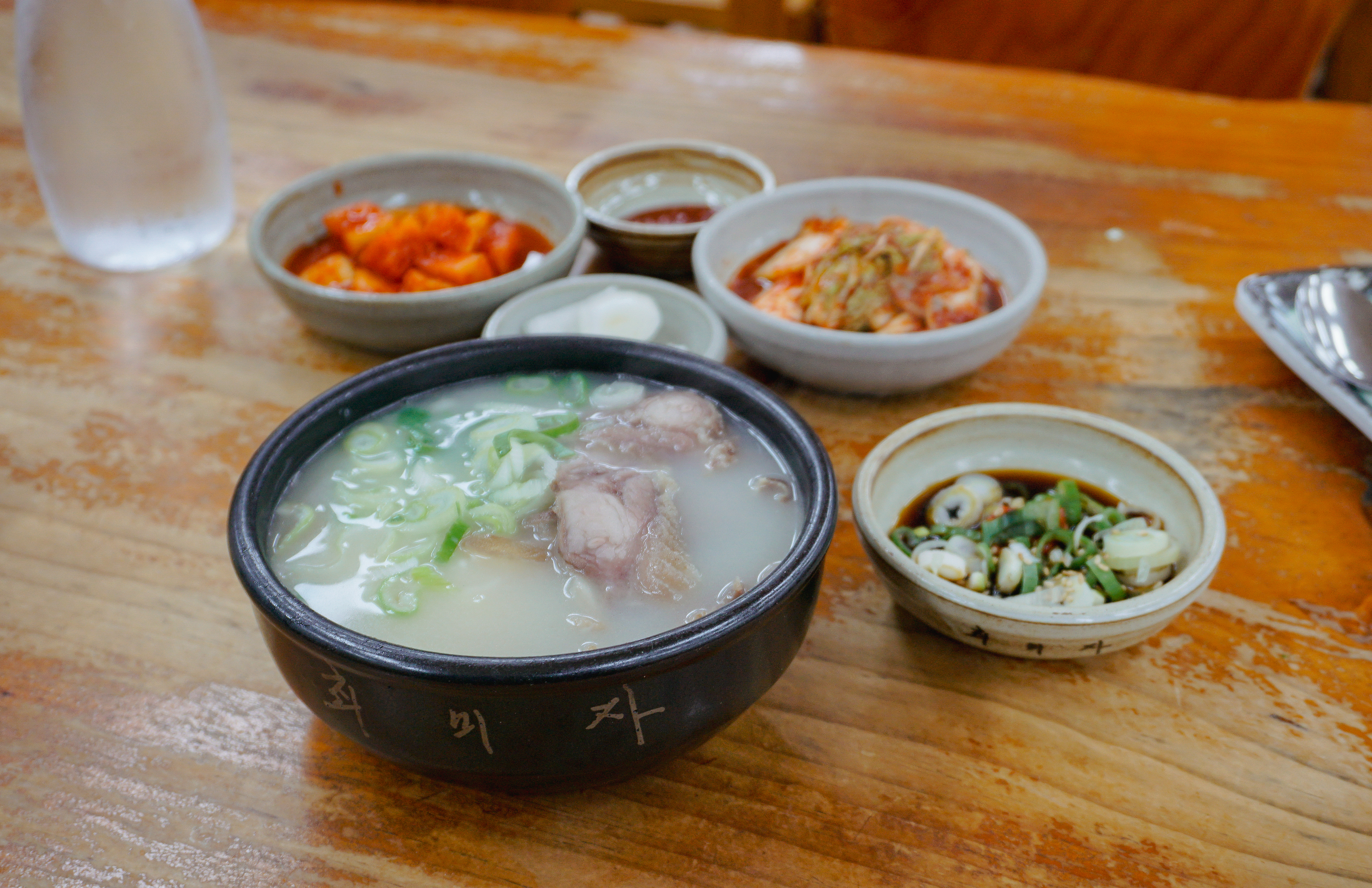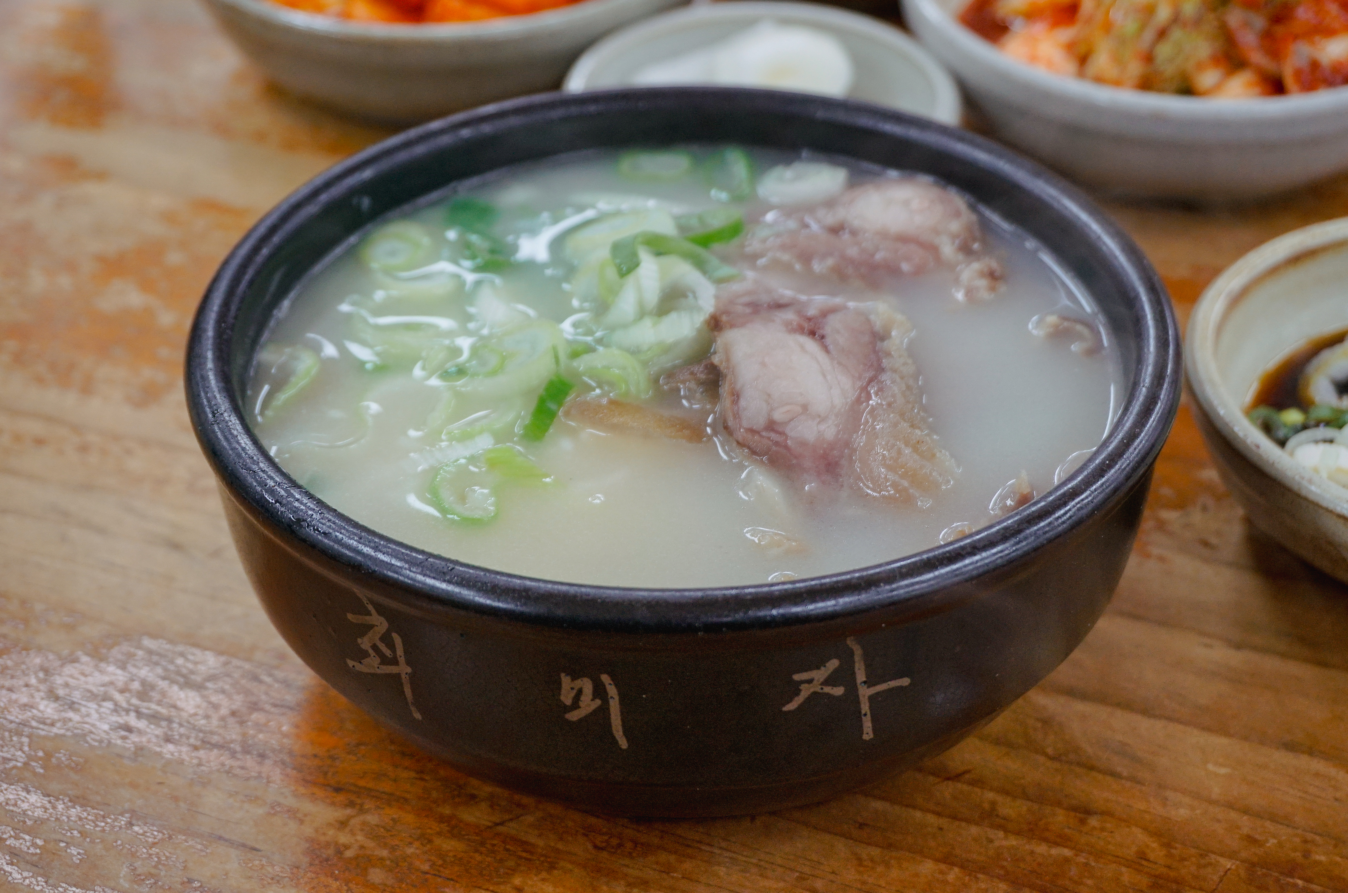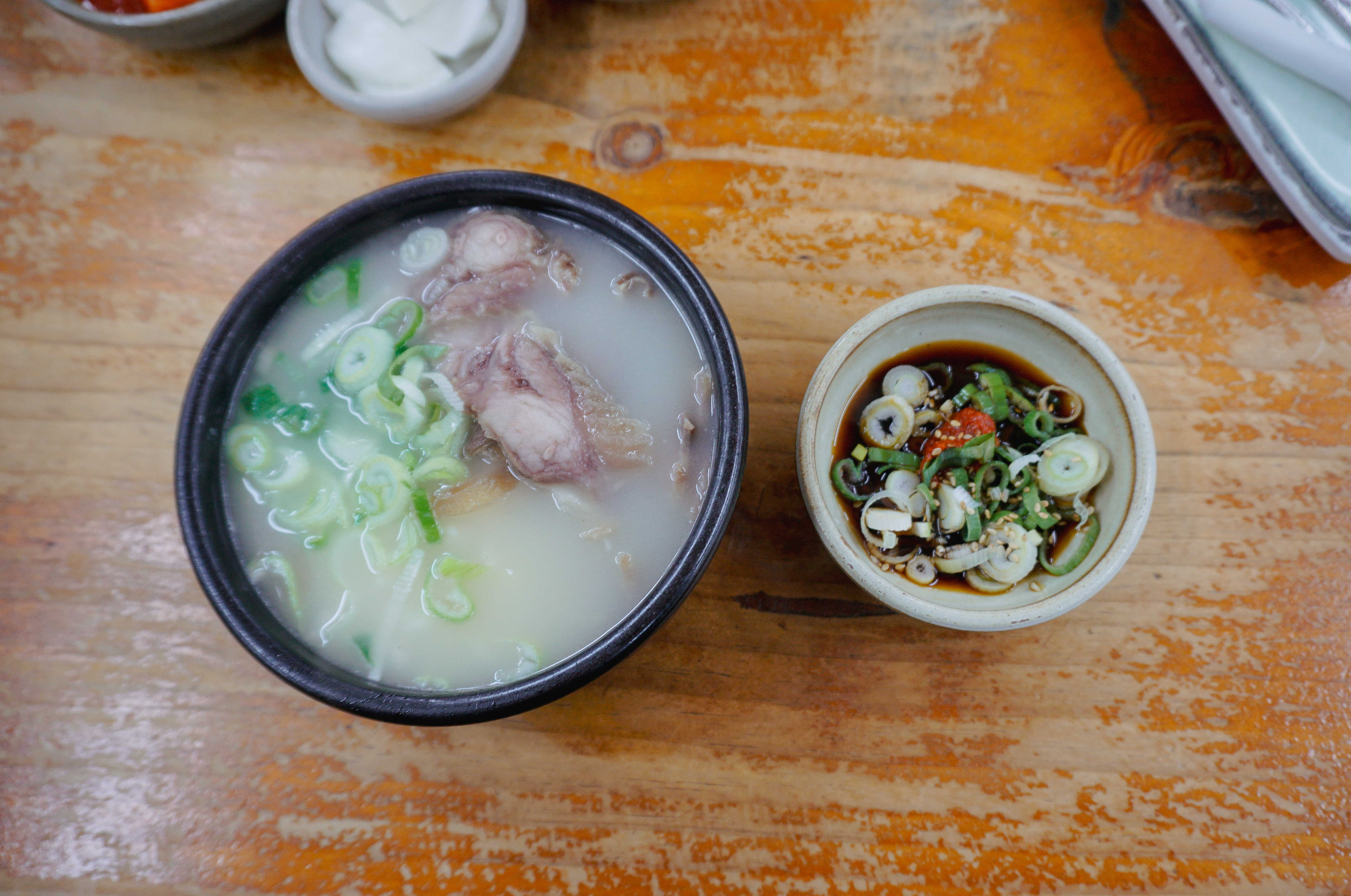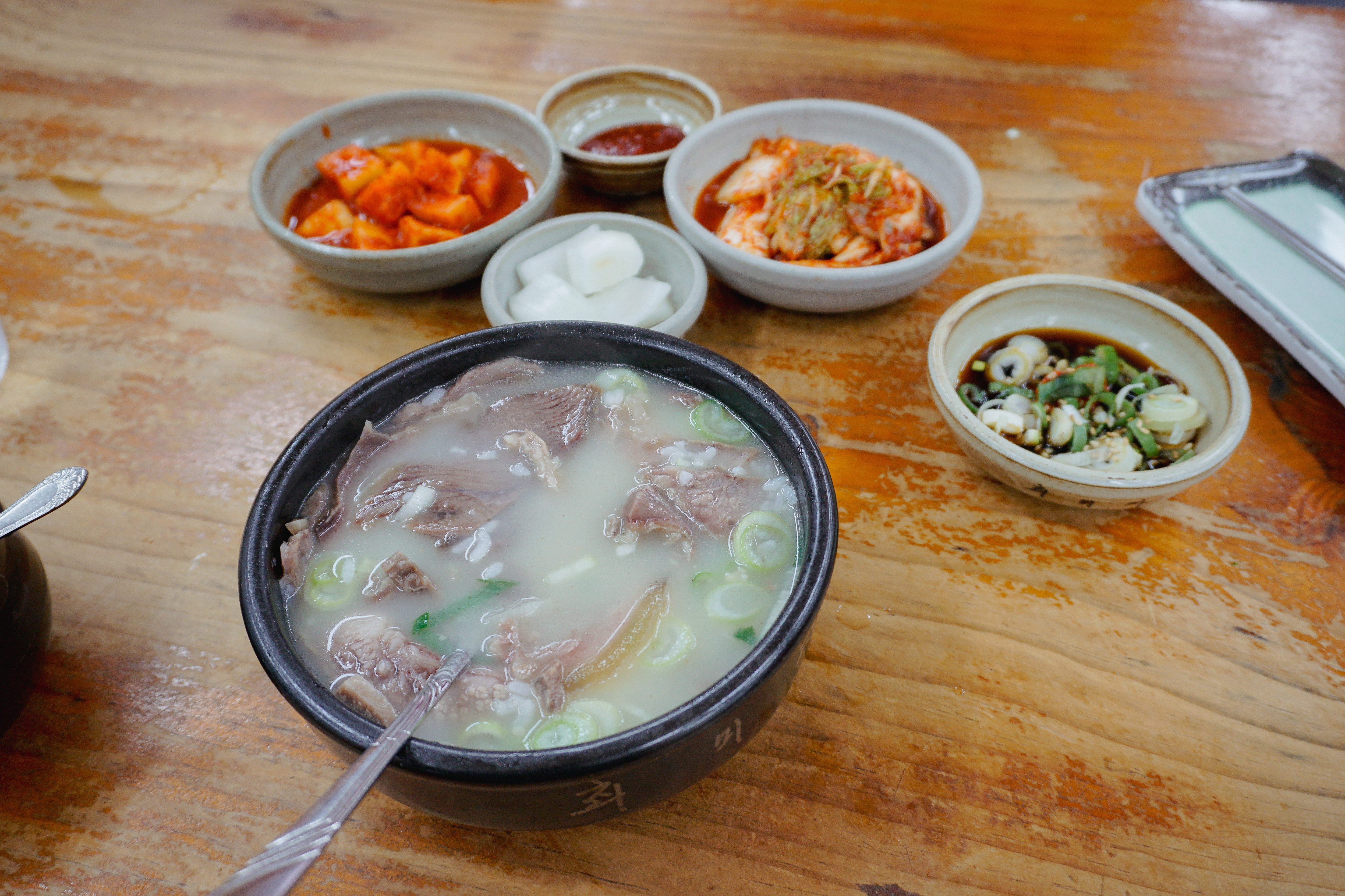 소머리국밥은 위와 같이 배추김치, 깍두기, 양파, 간장소스와 함께 제공되고 있었습니다. 소머리곰탕은 국물 속 고기가 많이 들어있었고, 같이 나오는 새콤한 간장소스와 같이 곁들여 먹으면 더 맛있더라고요.