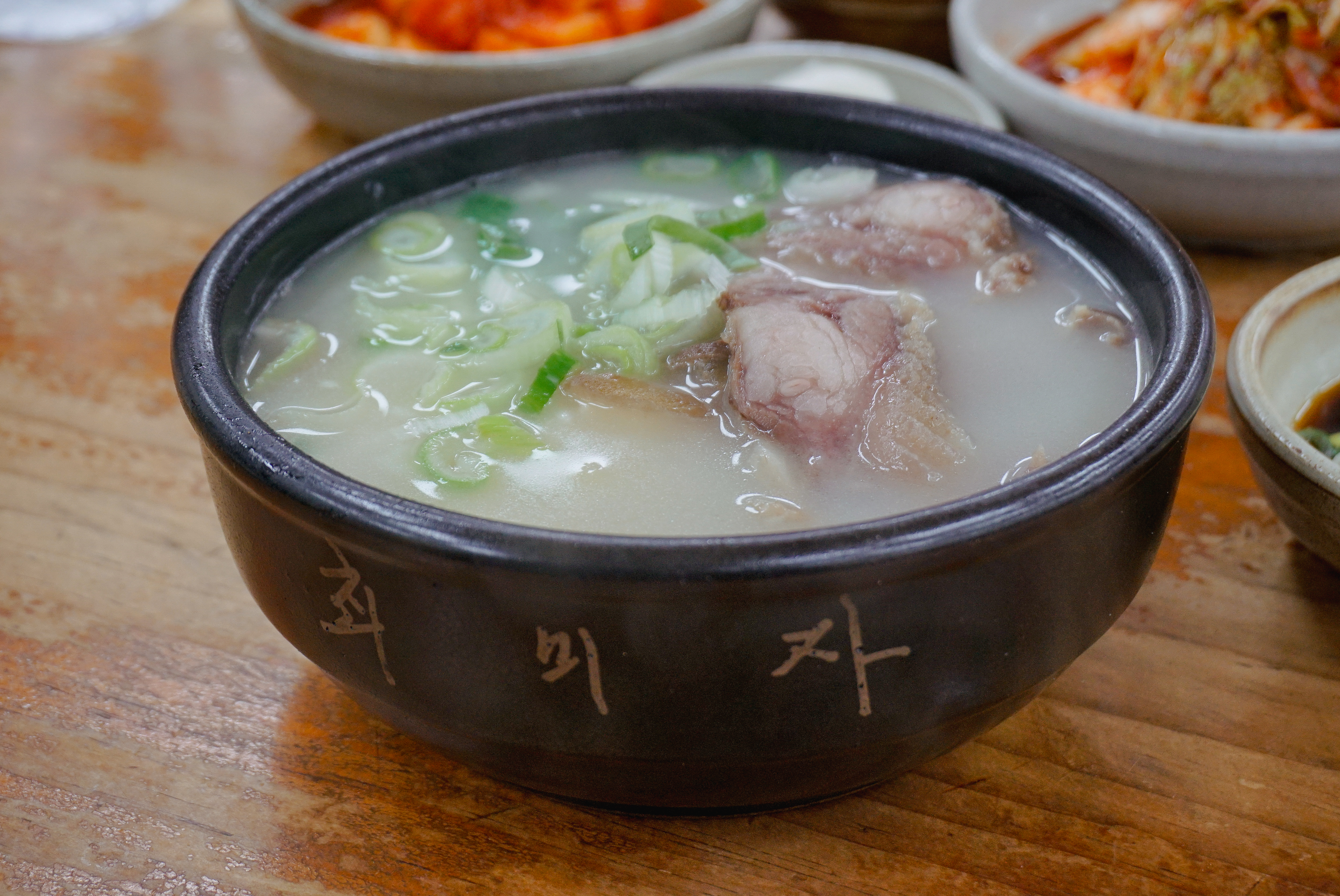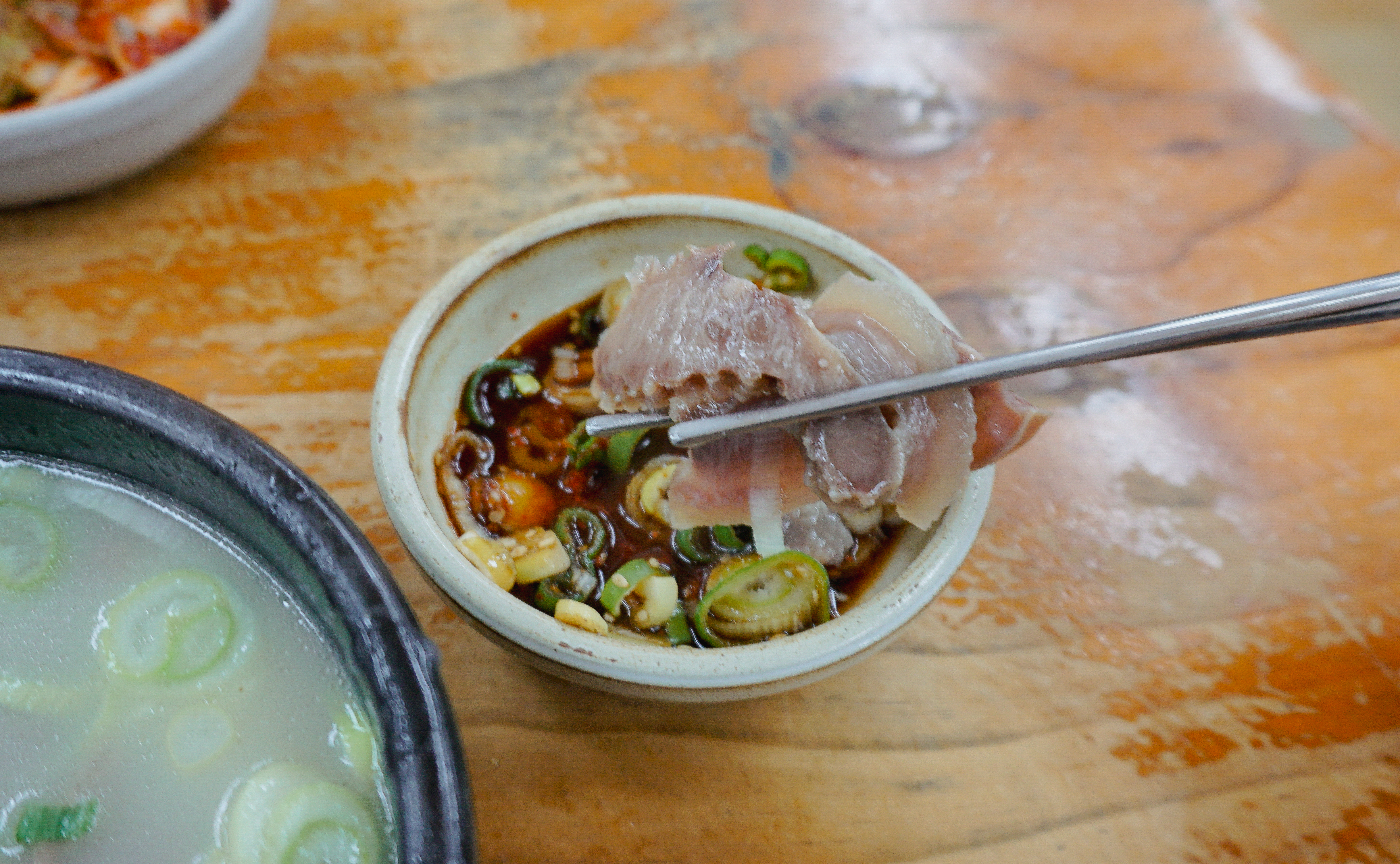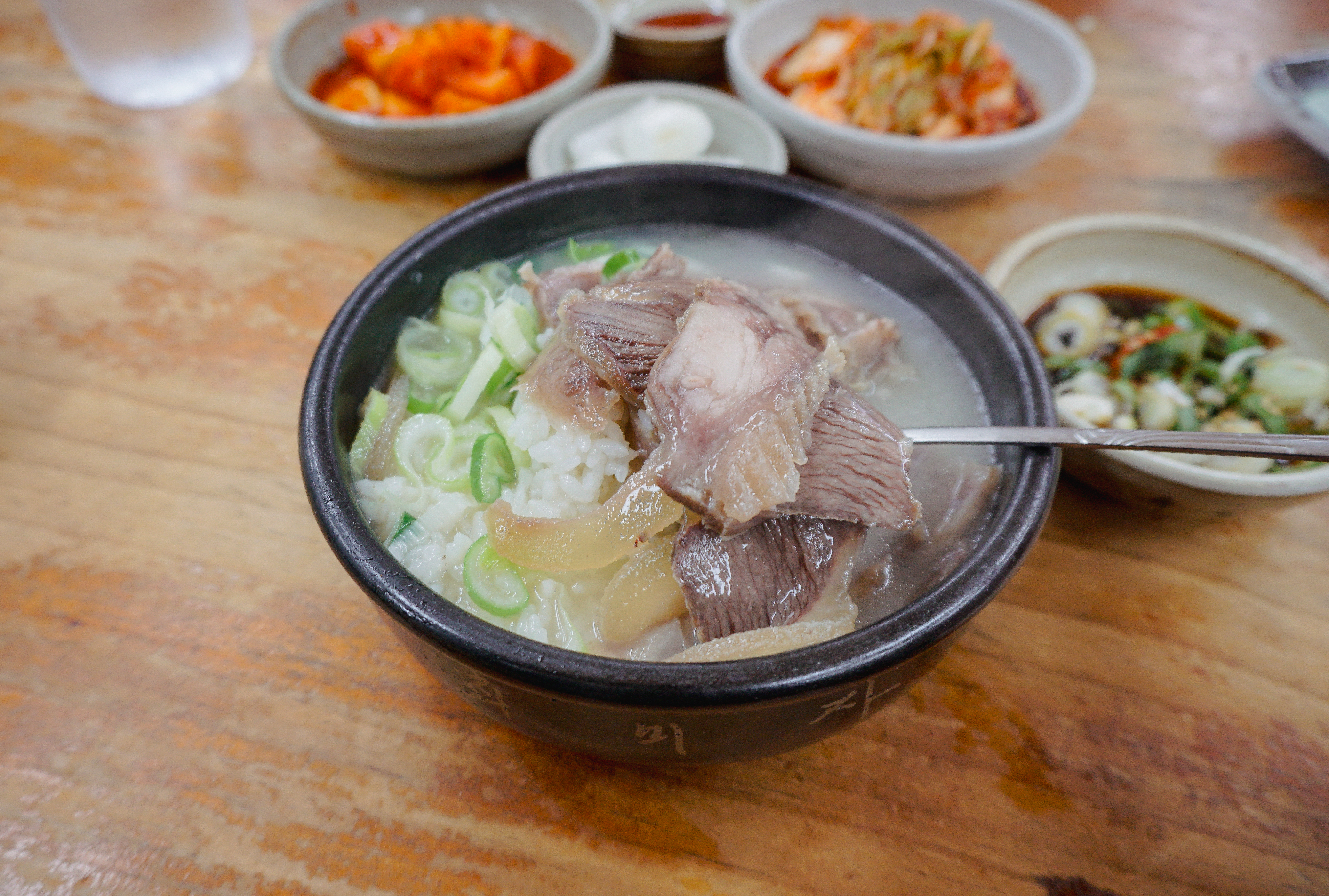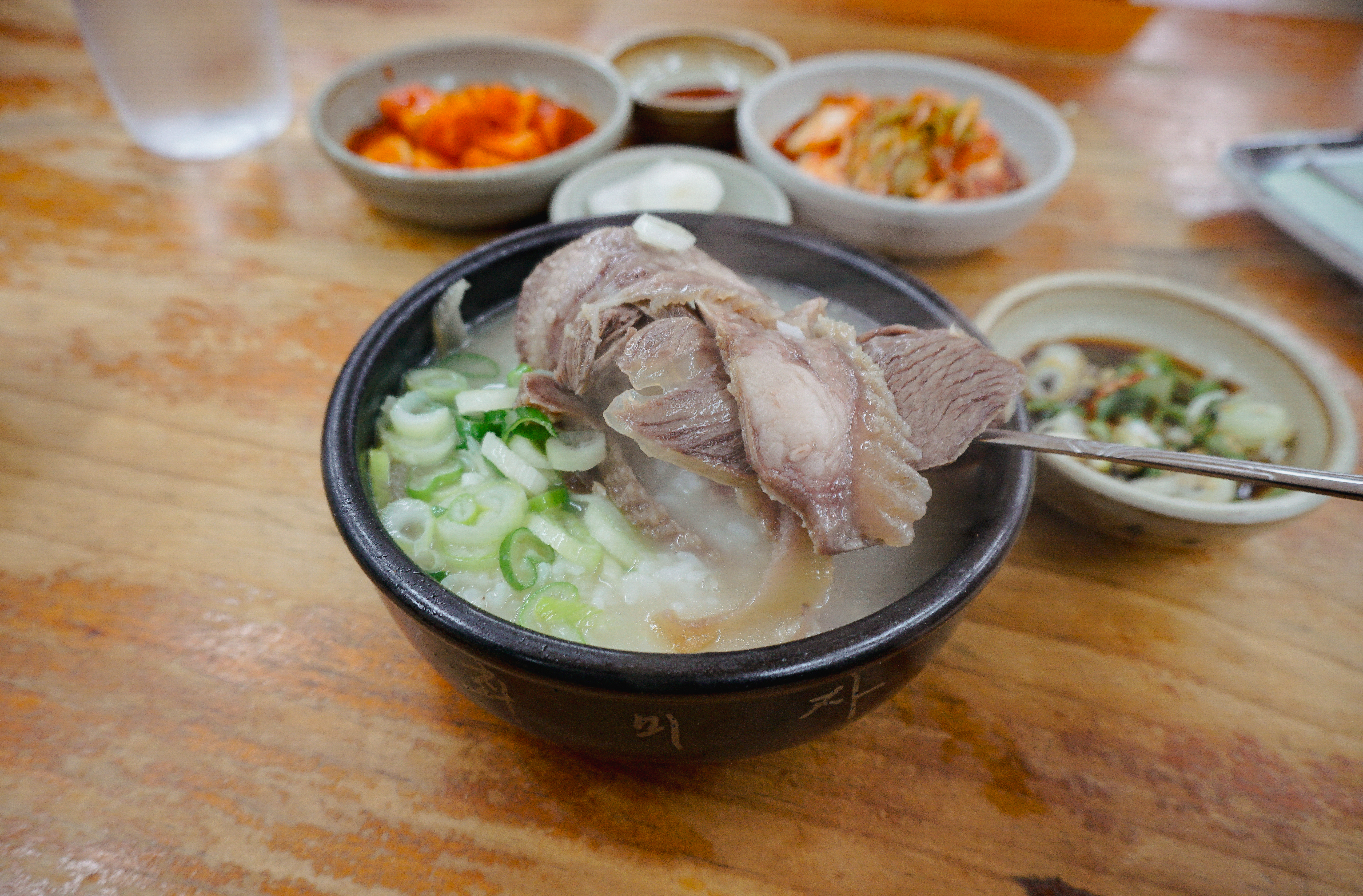 소머리국밥은 위와 같이 배추김치, 깍두기, 양파, 간장소스와 함께 제공되고 있었습니다. 소머리곰탕은 국물 속 고기가 많이 들어있었고, 같이 나오는 새콤한 간장소스와 같이 곁들여 먹으면 더 맛있더라고요.