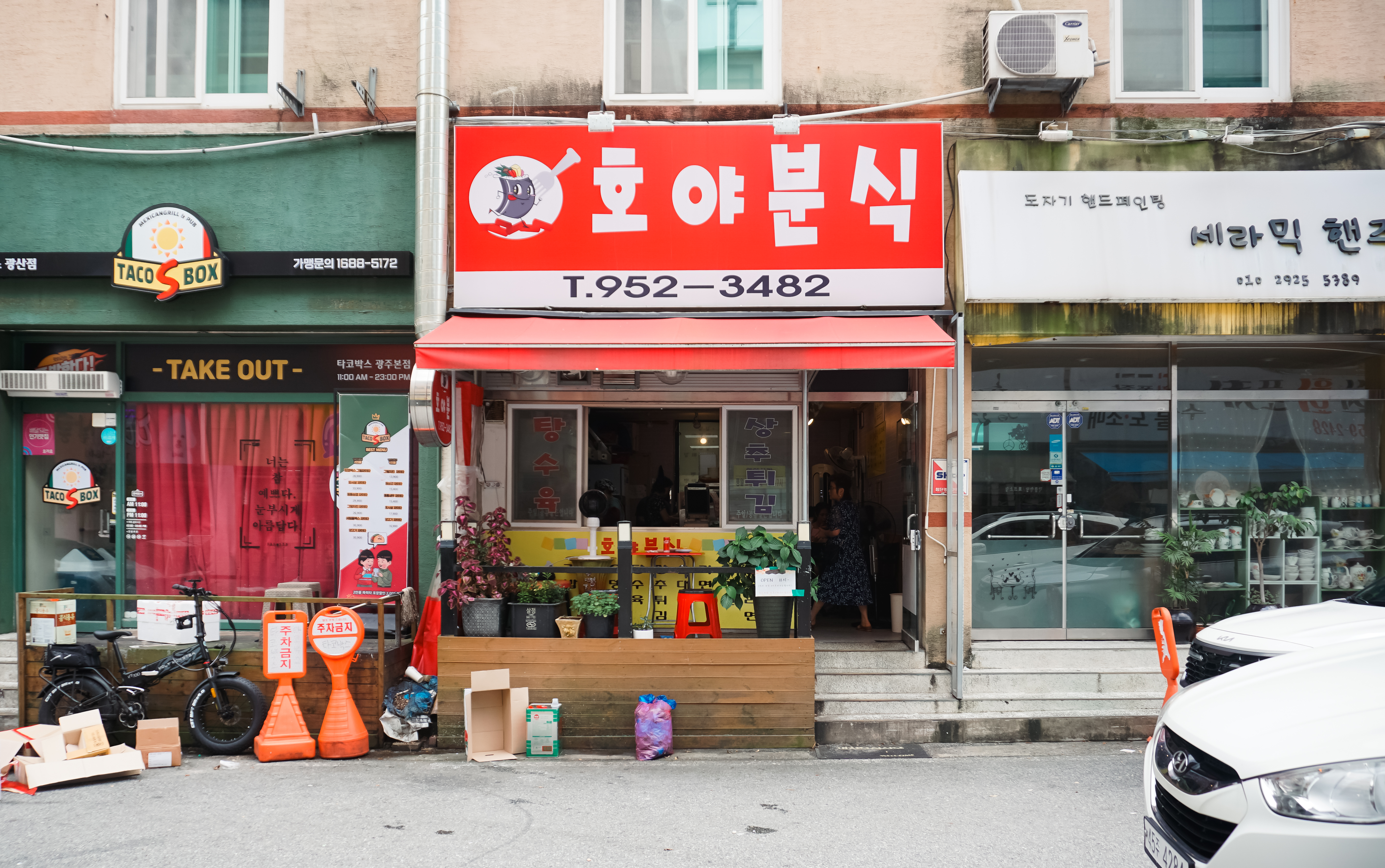 호야분식은 광주 광산구 신가동 1019-2, 1층에 있었습니다. 이곳은 상추튀김으로 유명한 가게여서 그런지 가게에는 손님이 가득했고, 포장하는 손님들도 많이 찾는 가게였습니다. 영업시간은 11:00~19:00 였으며, 브레이크타임은 14:30~15:00 였습니다. 가게에는 별도의 주차공간이 없었고, 대개 인근 골목에 주차를 하고 방문하시는 것 같더라고요.