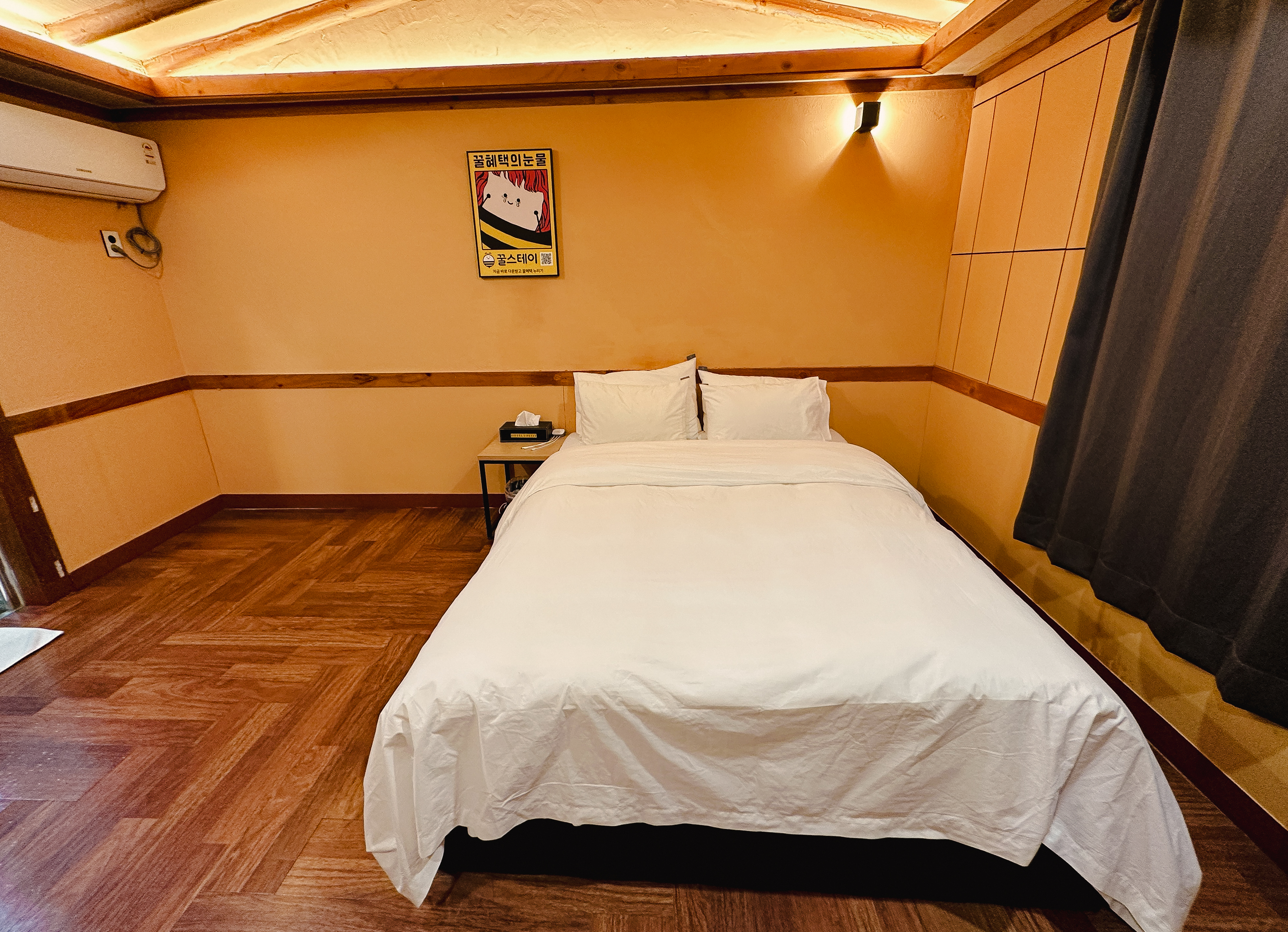 김포 쁘띠호텔은 위와 같이 일회용품을 제공하고 있었고, 방은 바닥난방이 들어오고 에어컨은 객실에서 직접 제어할 수 있도록 하고 있었습니다. 침대는 꽤 크고 널찍했으며 혼자서 이용하기엔 부족함 없는 숙소였습니다. 크기도 크고 청소상태도 잘 되어있었습니다.
