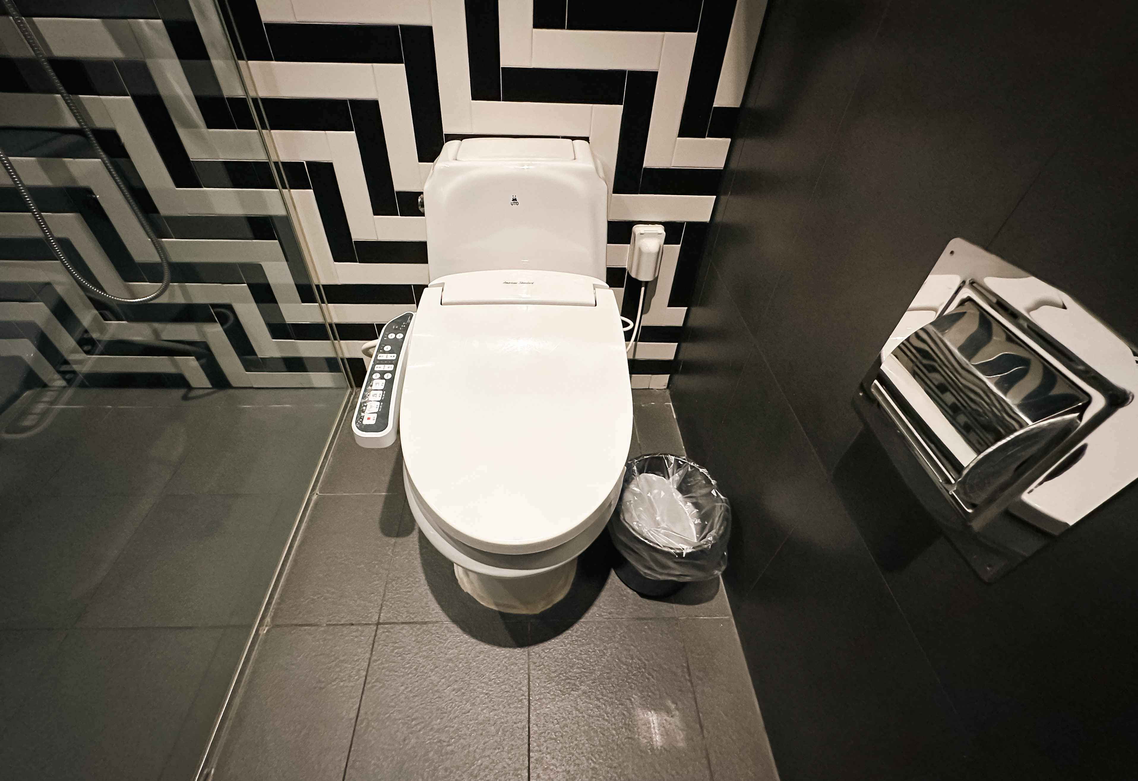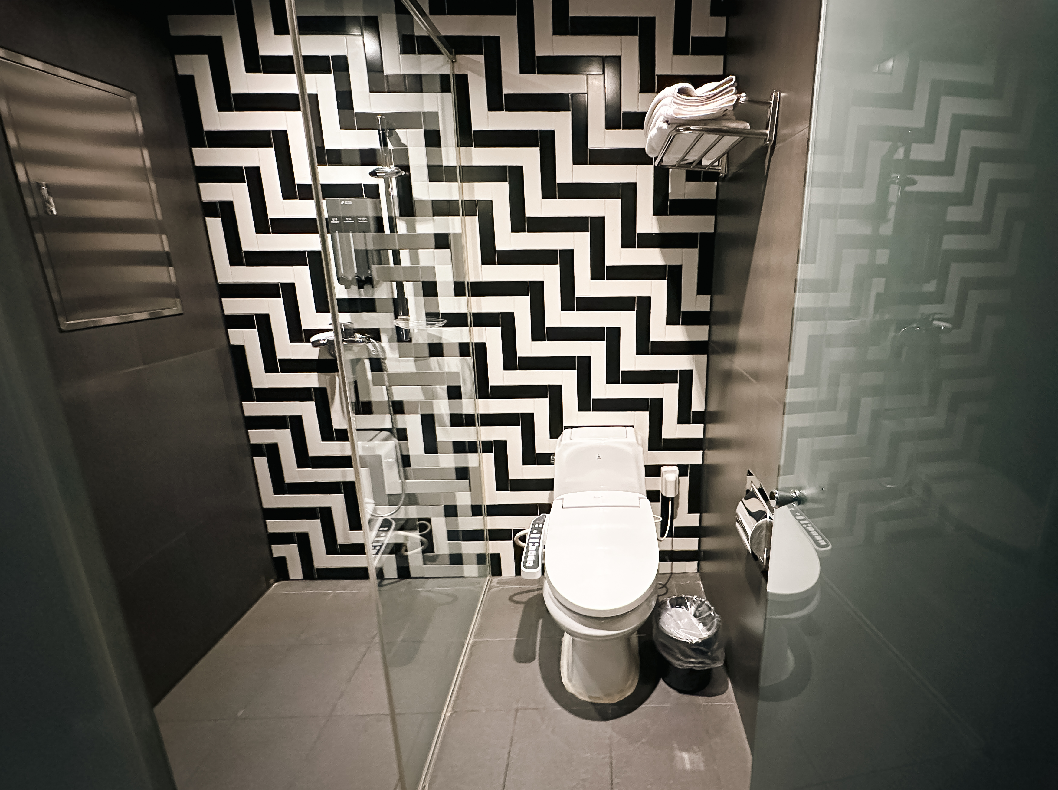 욕실은 유리문으로 변기와 샤워시설을 구분 짓고 있었고, 칫솔, 치약, 비누, 비데와 같이 편의용품과 편의시설이 잘 갖춰져 있었습니다. 샴푸, 린스, 바디워시도 별도로 챙겨갈 필요 없이 욕실에 비치되어 있어서 이용이 편리했습니다.