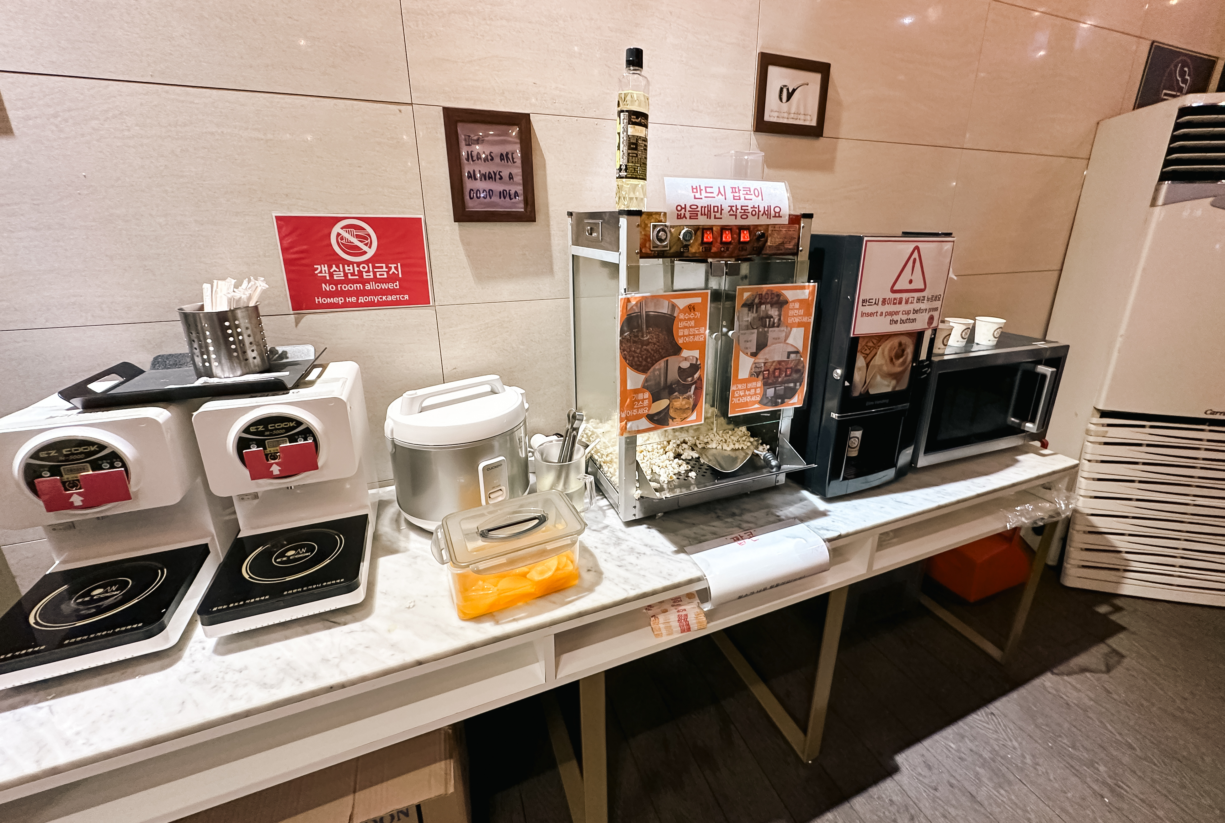 호텔 7층에는 간단한 운동을 할 수 있는 짐(GYM)이 있었고, 호텔 내 조식도 운영하고 있었습니다. 저희는 숙소이용만하고 조식은 필요하지 않아서 트윈룸을 빌린 뒤 객실키를 받아 객실로 올라갔습니다.