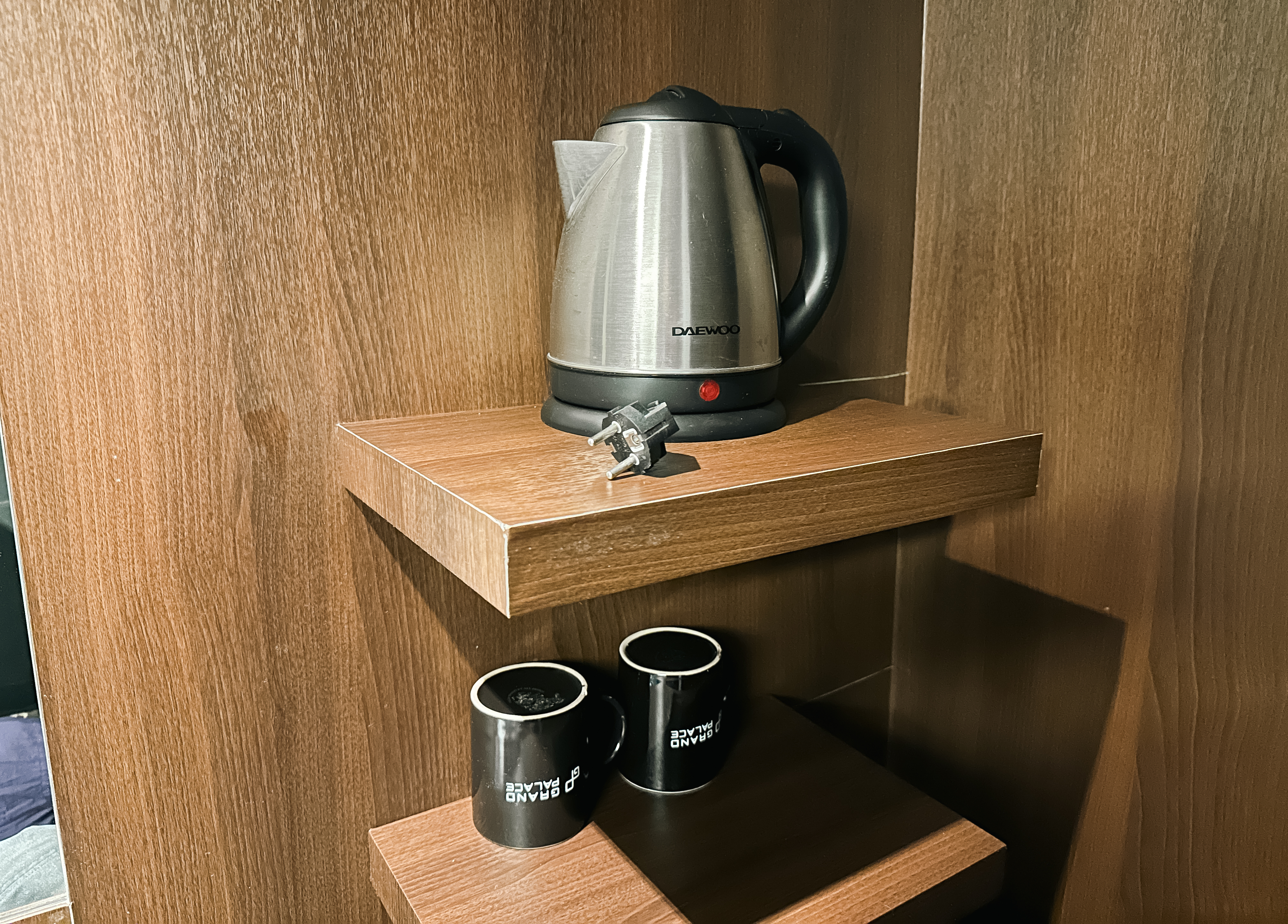 객실은 중앙냉난방으로 되어있었는데, 저녁에 조금 더워서 에어컨을 세게 틀고 싶었는데 조절이 안되어 불편하더라고요. 그밖에 TV와 냉장고, 커피포트가 있었습니다. 객실에는 간단한 작업을 할 수 있는 책상이 2군데 마련되어 있어서 간단한 업무를 할 수도 있었습니다.