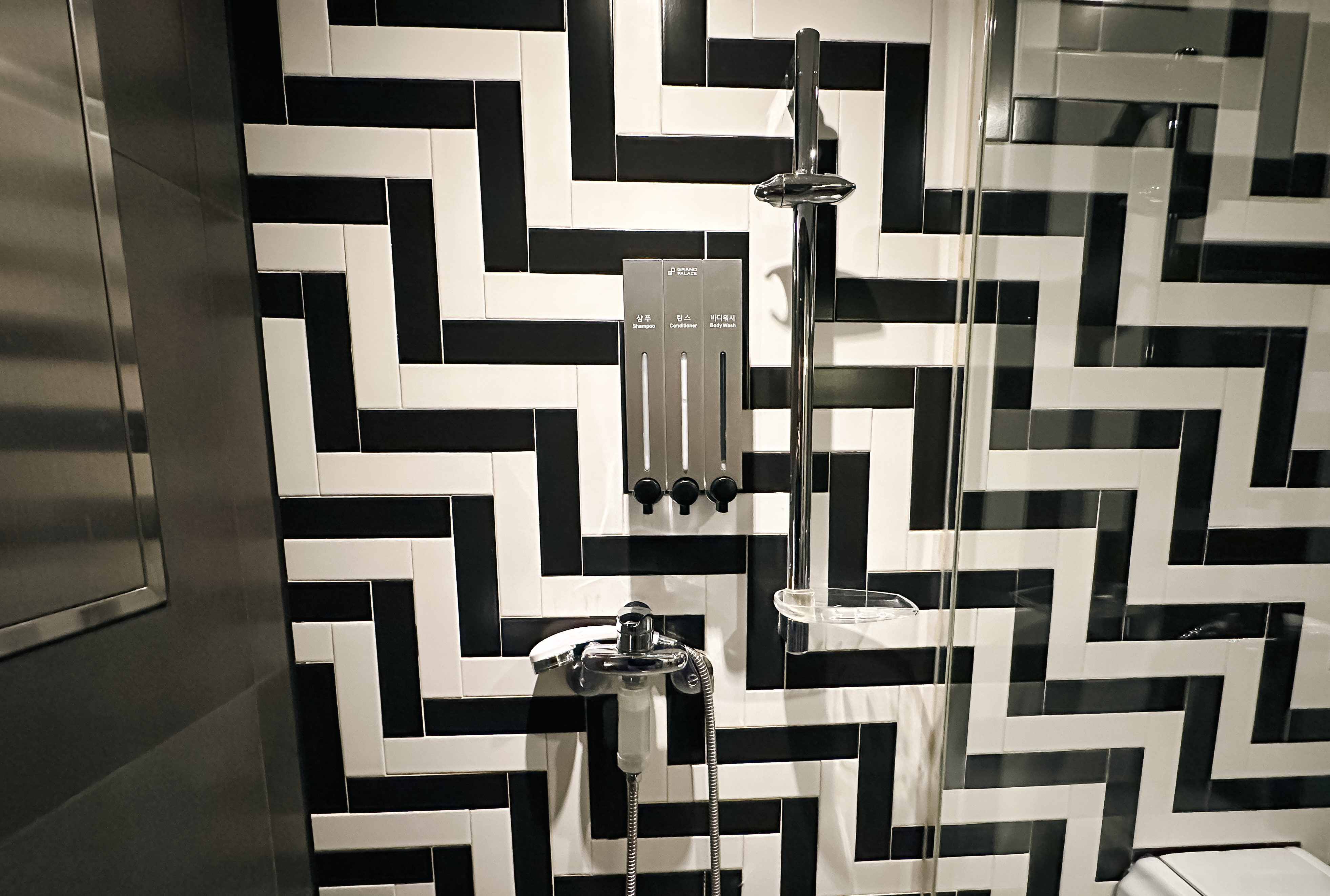 욕실은 유리문으로 변기와 샤워시설을 구분 짓고 있었고, 칫솔, 치약, 비누, 비데와 같이 편의용품과 편의시설이 잘 갖춰져 있었습니다. 샴푸, 린스, 바디워시도 별도로 챙겨갈 필요 없이 욕실에 비치되어 있어서 이용이 편리했습니다.