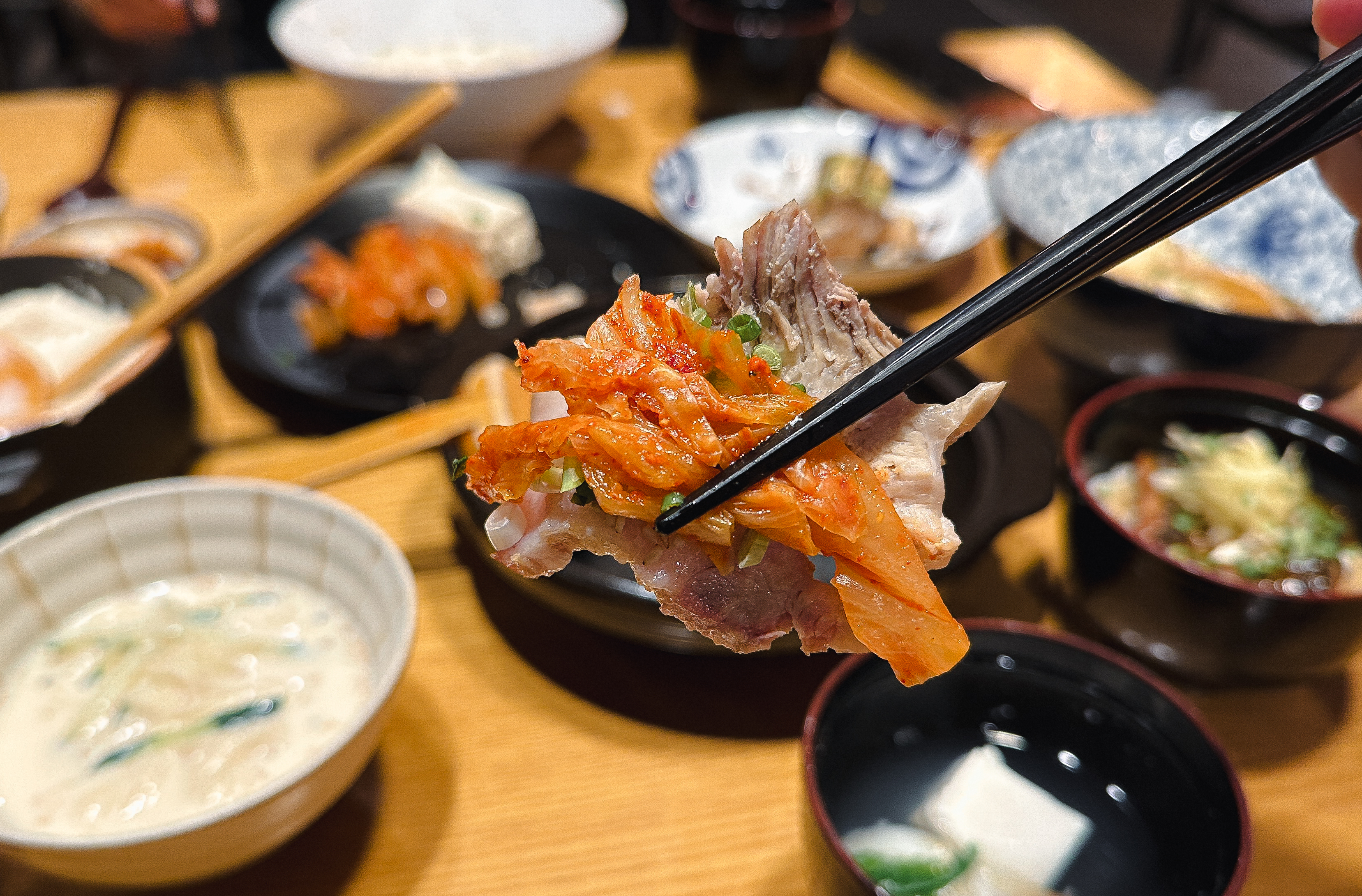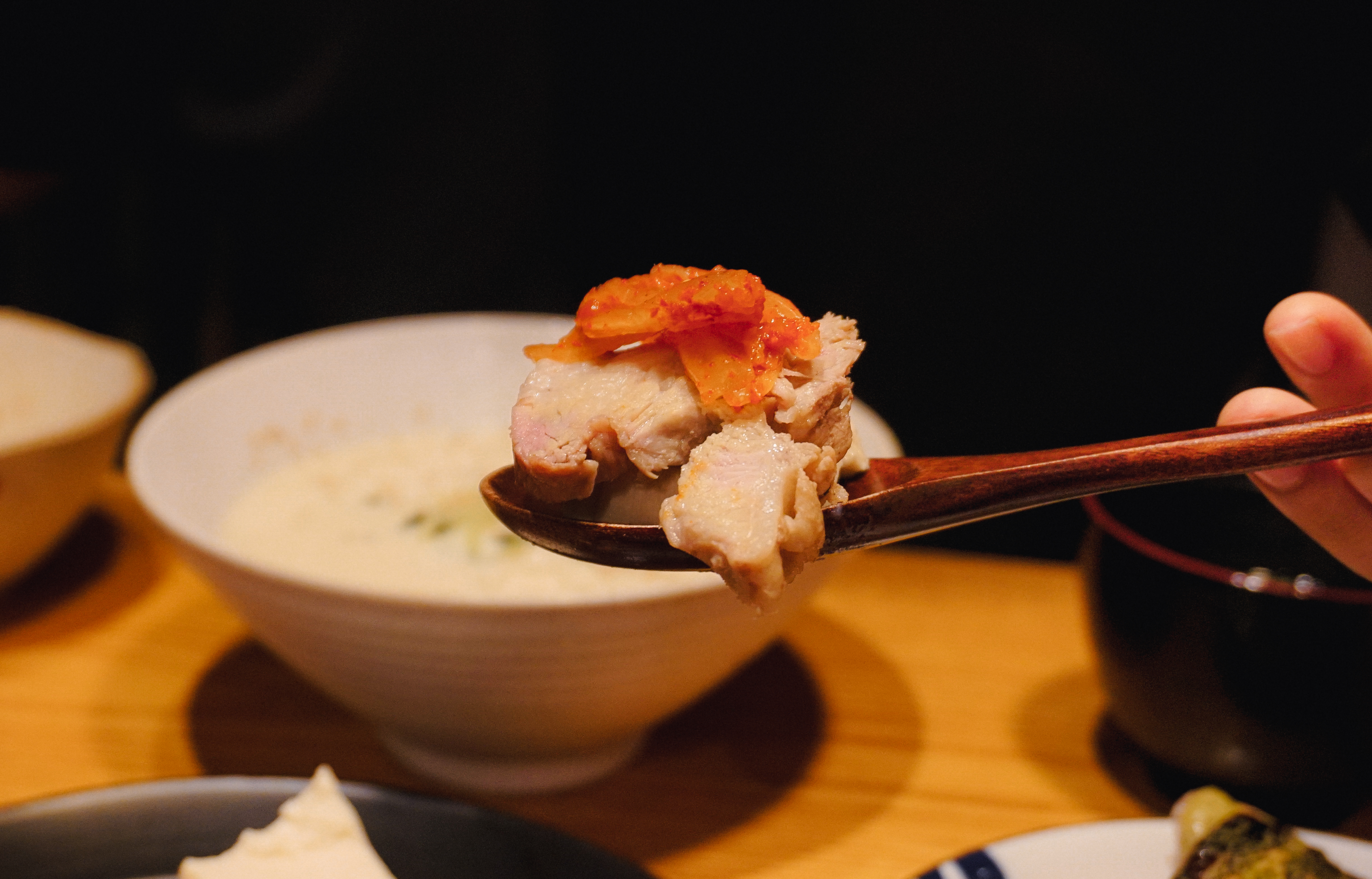 다음으로 나온 메뉴는 모두부 수육입니다. 비계와 살코기의 비율이 적당히 있는 야들야들한 수육과 잘 숙성된 묵은지 그리고 모두부를 삼합처럼 싸 먹으면 되는 메뉴였는데 짭짤하면서 새콤하게 익은 묵은지와 적당히 기름진 수육 그리고 담백하면서도 단단한 식감의 두부와의 조합이 참 괜찮더라고요.