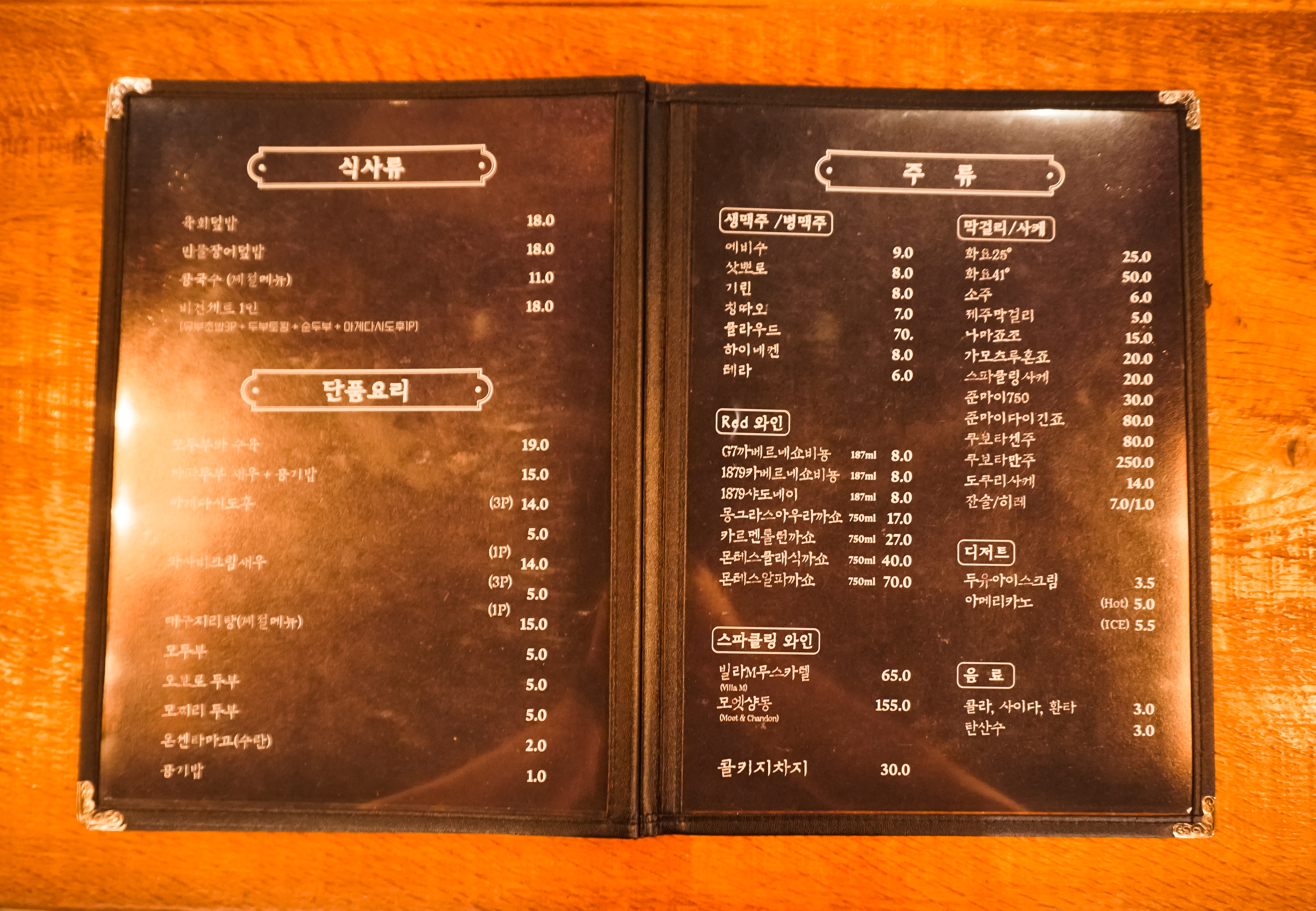 메뉴는 코스요리처럼 하나씩 등장했는데, 대략적인 구성은 위와 같았습니다. 그럼 이제 제주 신의한모 2인 세트메뉴의 메뉴가 나온 순서대로 하나씩 살펴보실까요?