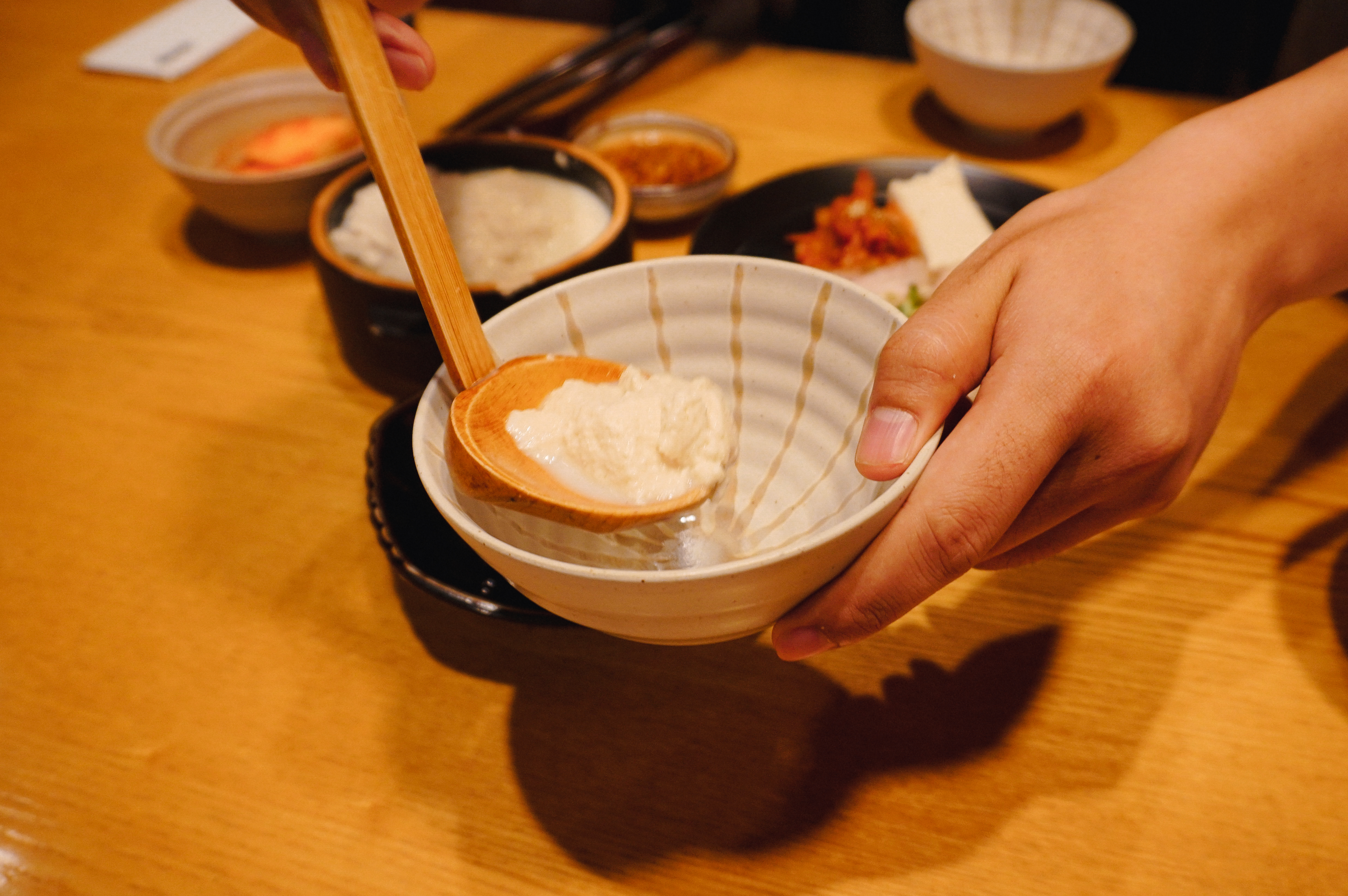 먼저, 수란과 함께 먹는 신의한모 순두부가 나왔습니다. 직원의 안내에 따라서 먼저 진한 두유한 잔 먹은 다음에 순두부를 개인 그릇에 덜어낸 다음 수란을 위에 얹어주고 양념장을 곁들여 먹었습니다. 진하고 걸쭉한 두유는 적당히 단맛과 고소한 맛이 있었고, 순두부는 부드러우면서도 매콤 짭짤한 간장양념을 더해 맛이 좋았습니다.