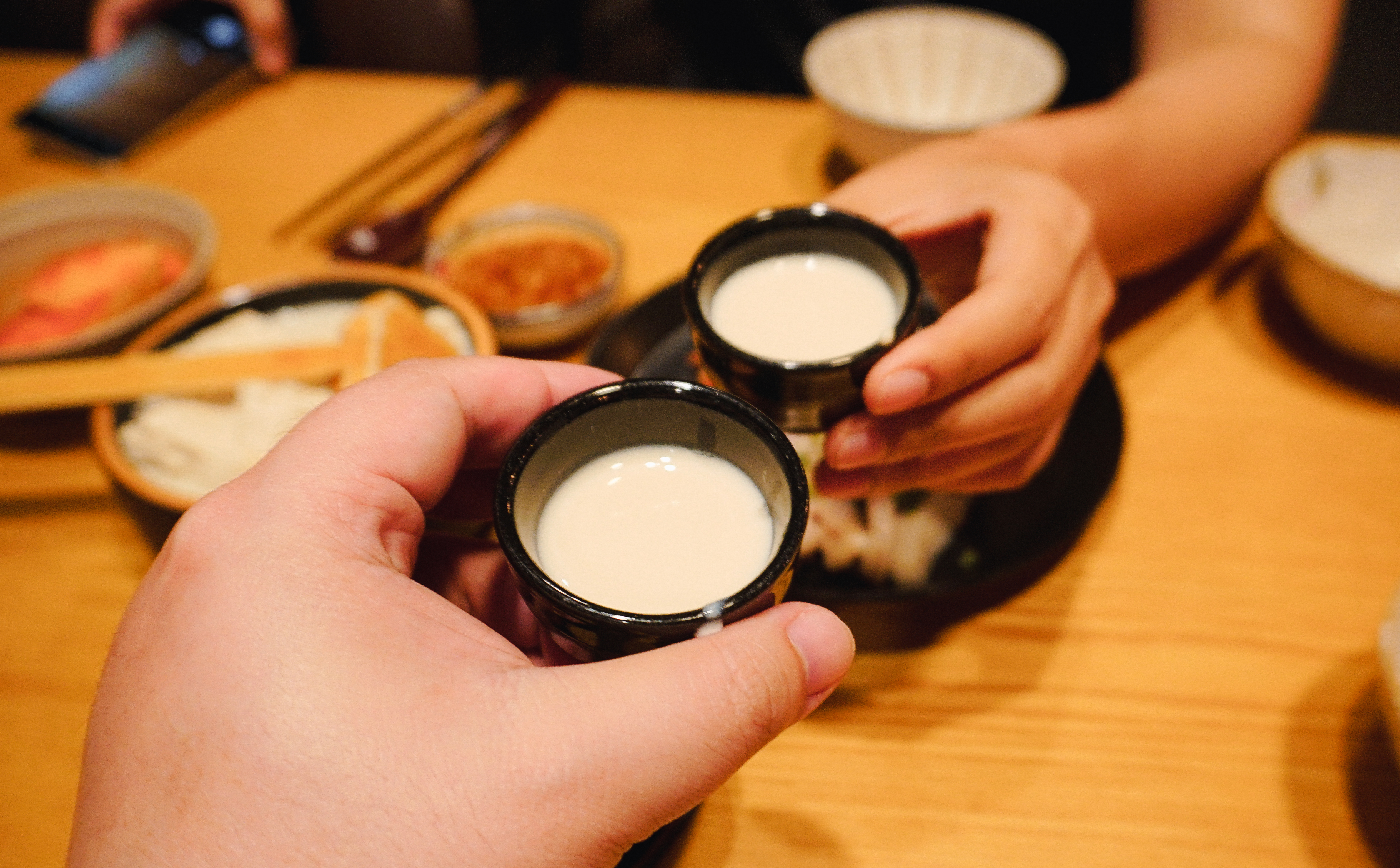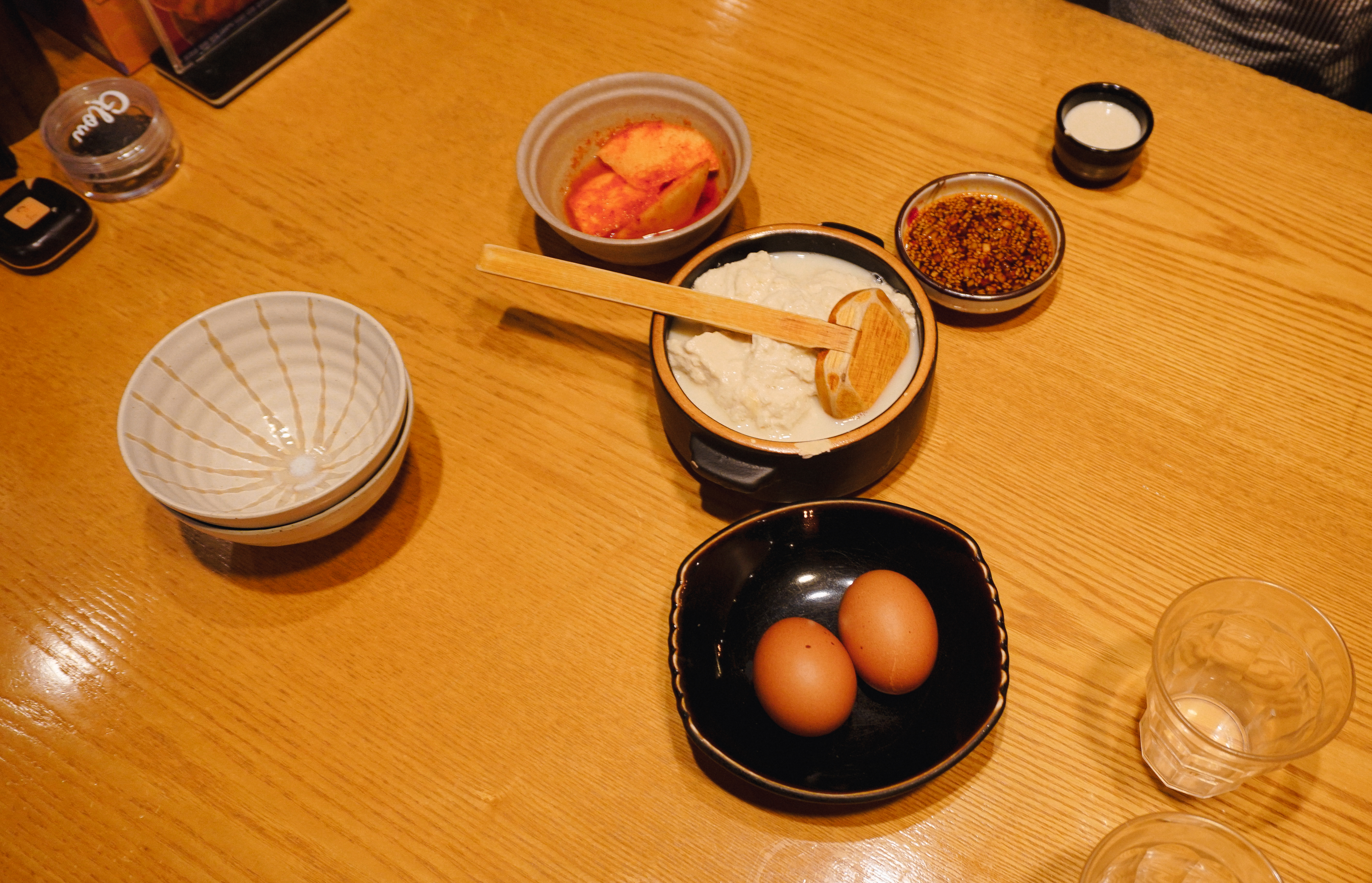 먼저, 수란과 함께 먹는 신의한모 순두부가 나왔습니다. 직원의 안내에 따라서 먼저 진한 두유한 잔 먹은 다음에 순두부를 개인 그릇에 덜어낸 다음 수란을 위에 얹어주고 양념장을 곁들여 먹었습니다. 진하고 걸쭉한 두유는 적당히 단맛과 고소한 맛이 있었고, 순두부는 부드러우면서도 매콤 짭짤한 간장양념을 더해 맛이 좋았습니다.