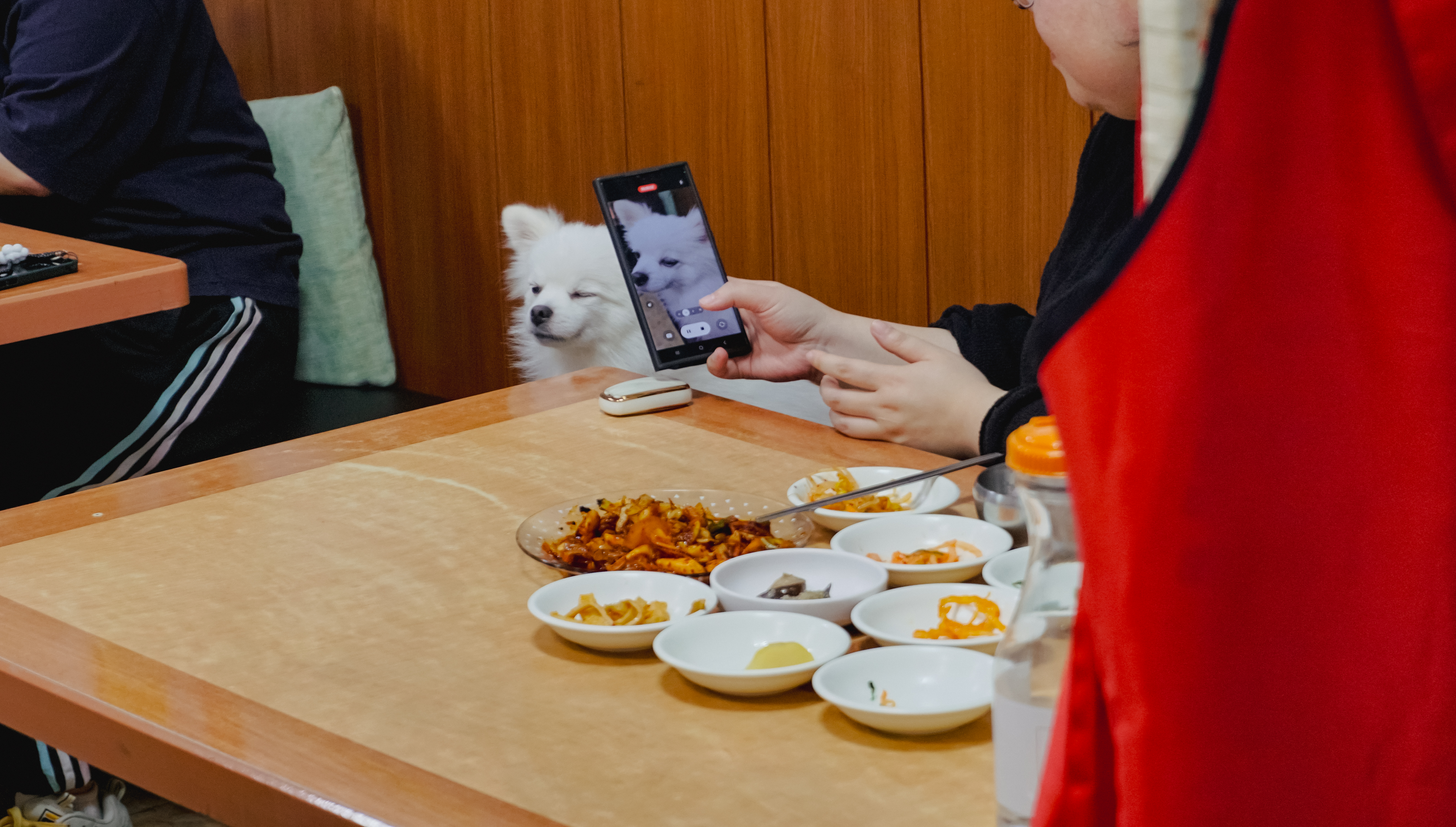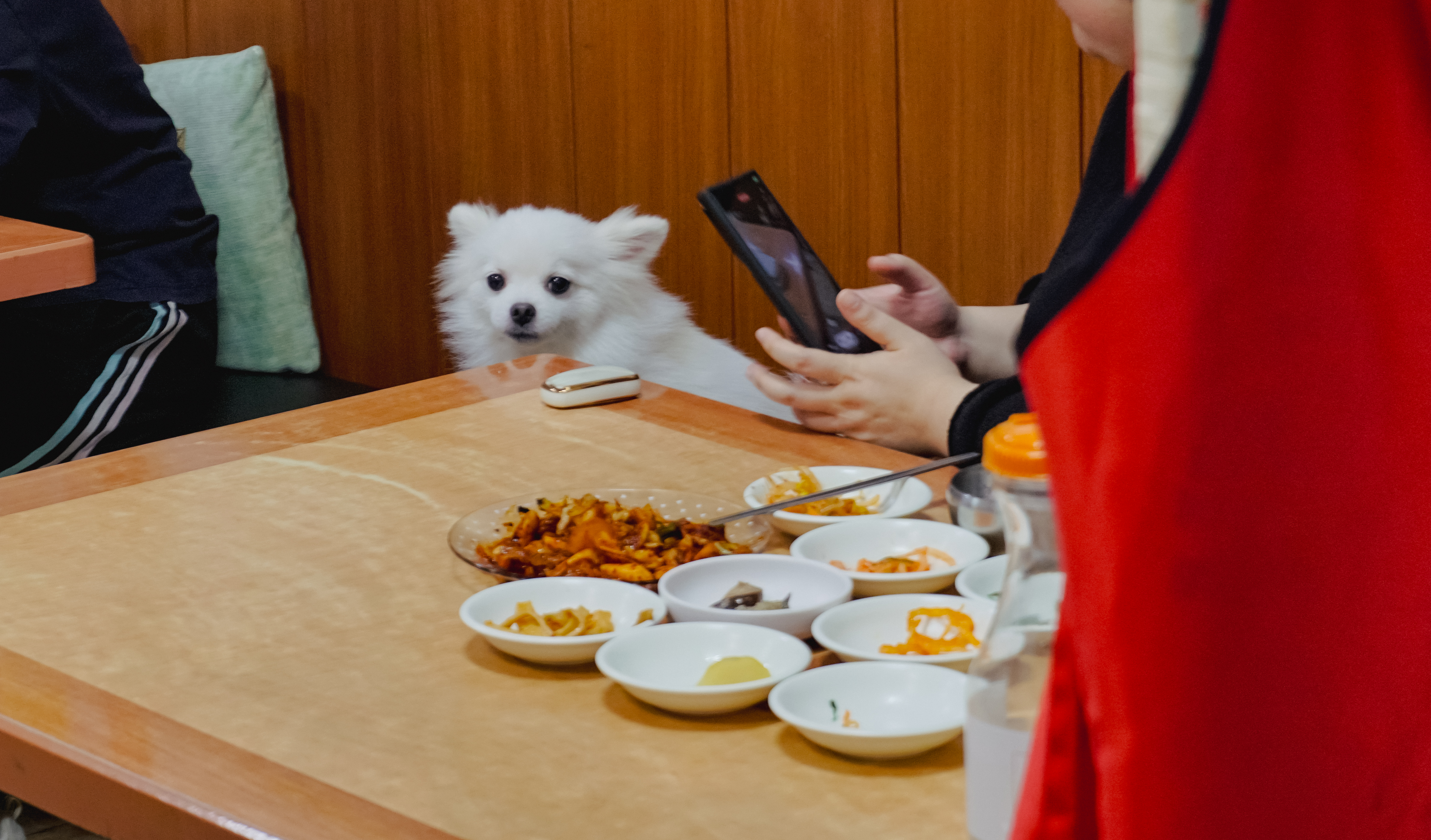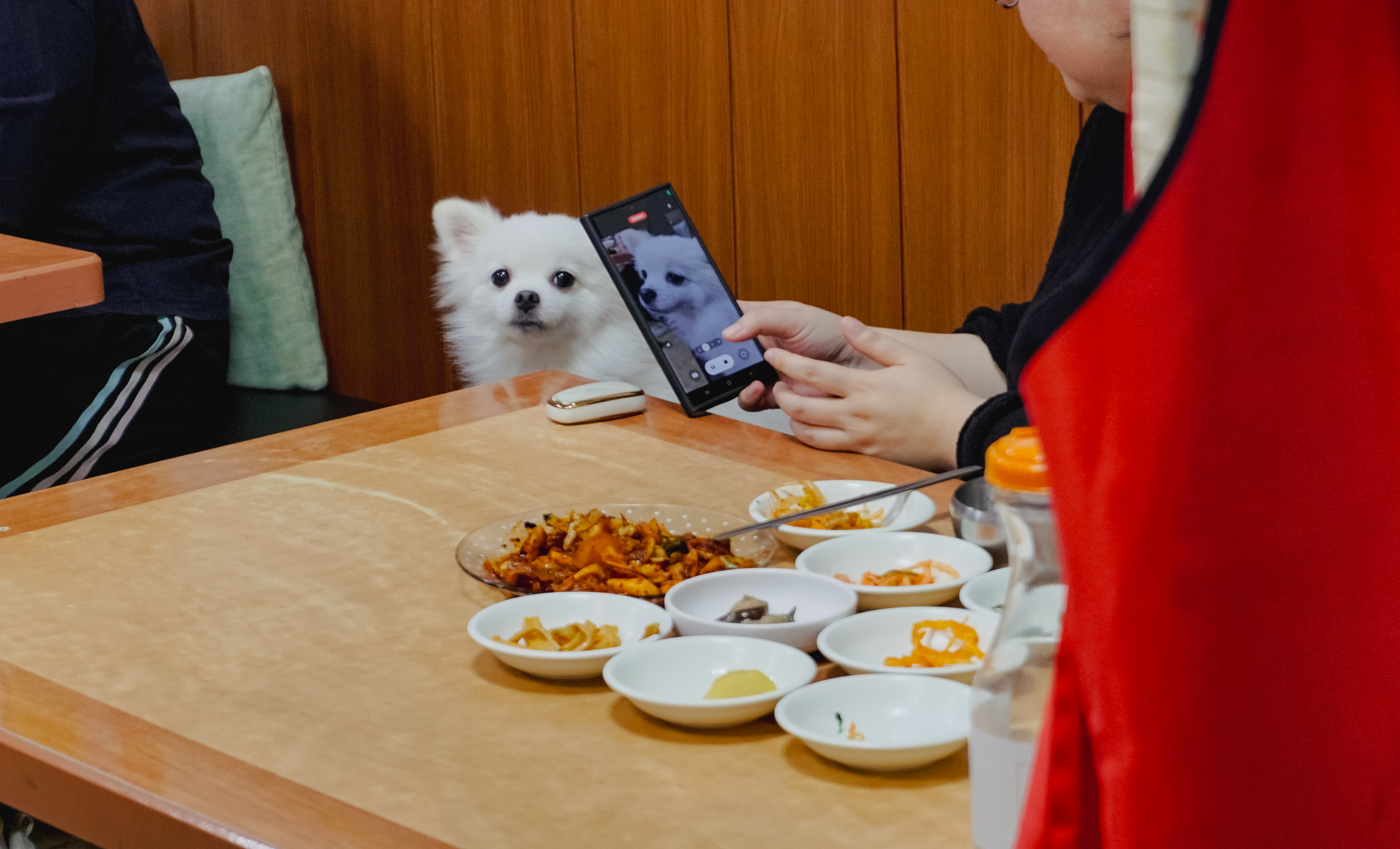 분당 서현동에 위치한 <고창댁설렁탕> 이라는 가게였는데, 실제로 손님들은 식사를 하는 도중에도 강아지 사진도 찍고 쓰다듬기도 하는 모습을 볼 수 있었습니다.