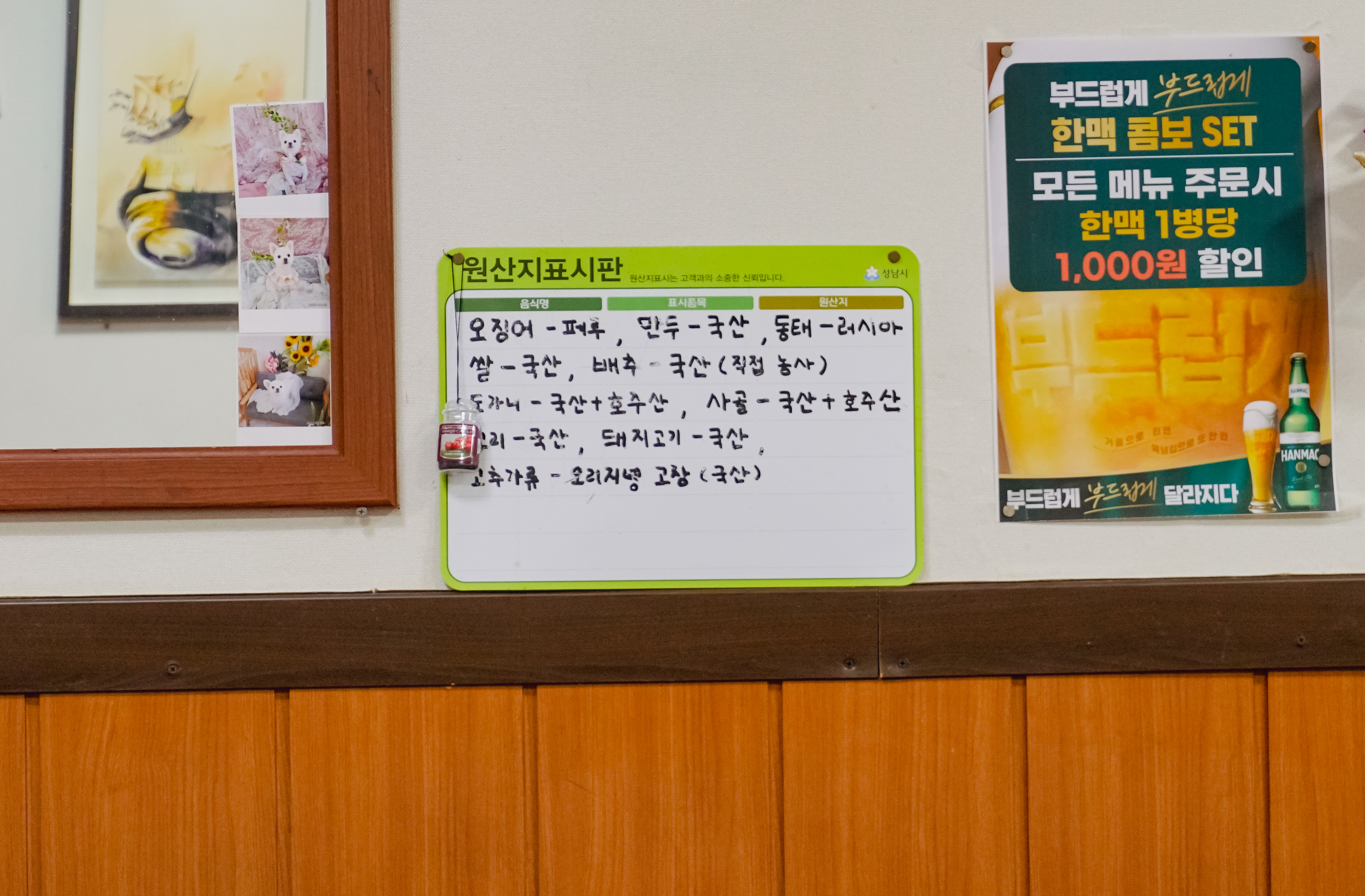 오불이는 오징어와 돼지고기, 버섯, 채소와 함께 볶아 만드는 메뉴였는데, 맛이 자극적이지 않았고 밥과도 잘 어울렸습니다. 반찬들도 하나하나 다 맛깔나게 만들어 손이 계속 가더라고요. 사실, 제가 방문했을 때 아주머니께서 괜히 퉁명스럽게 대하시는 것 같아서 기분이 썩 좋지는 않았는데, 남자 사장님이 대신 친절하게 대해 주시고 심지어 밥도 한 그릇 더 주시면서 서비스해 주시더라고요. 덕분에 기분이 좀 찜찜하다가 누그러들었습니다.
