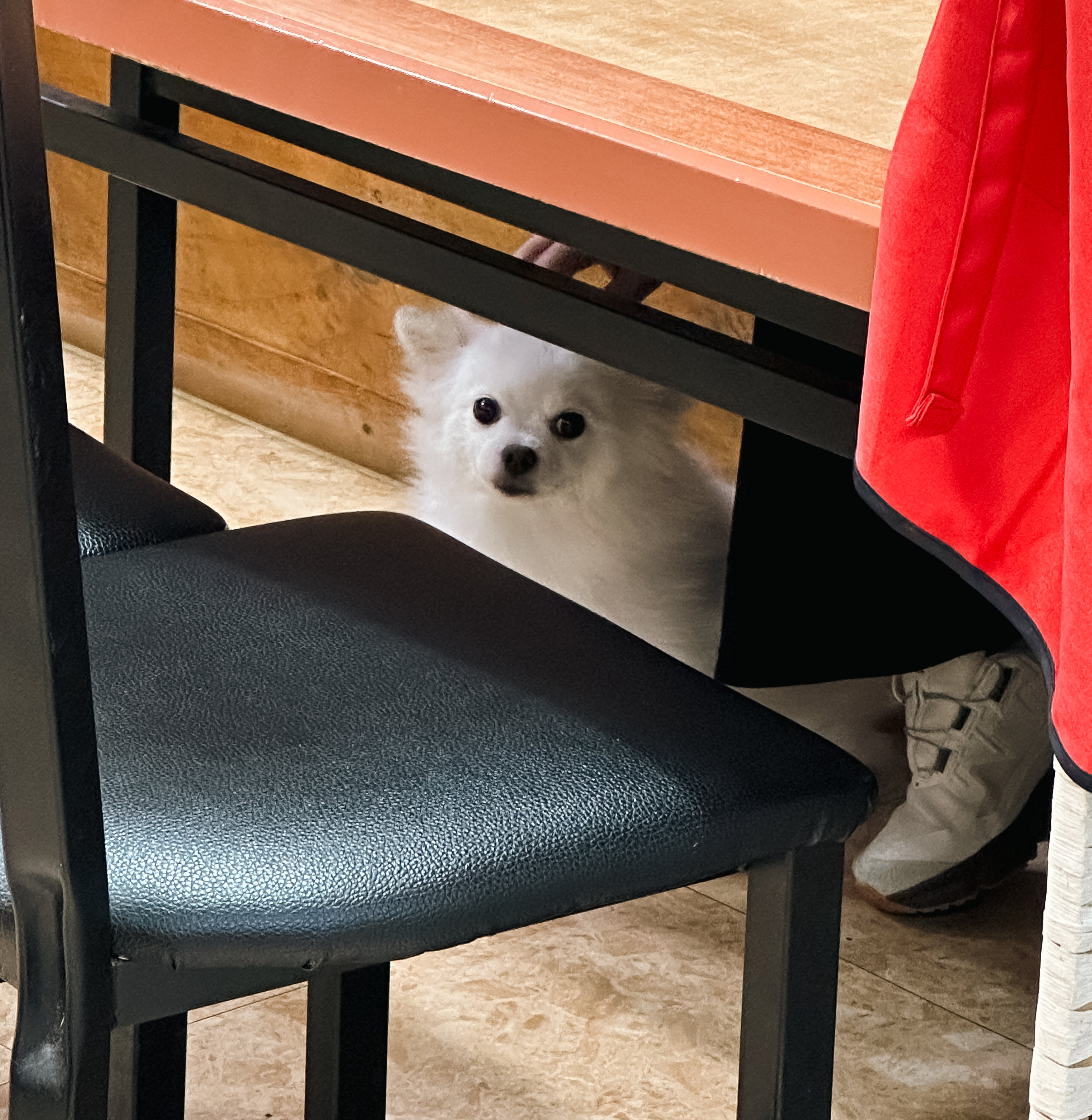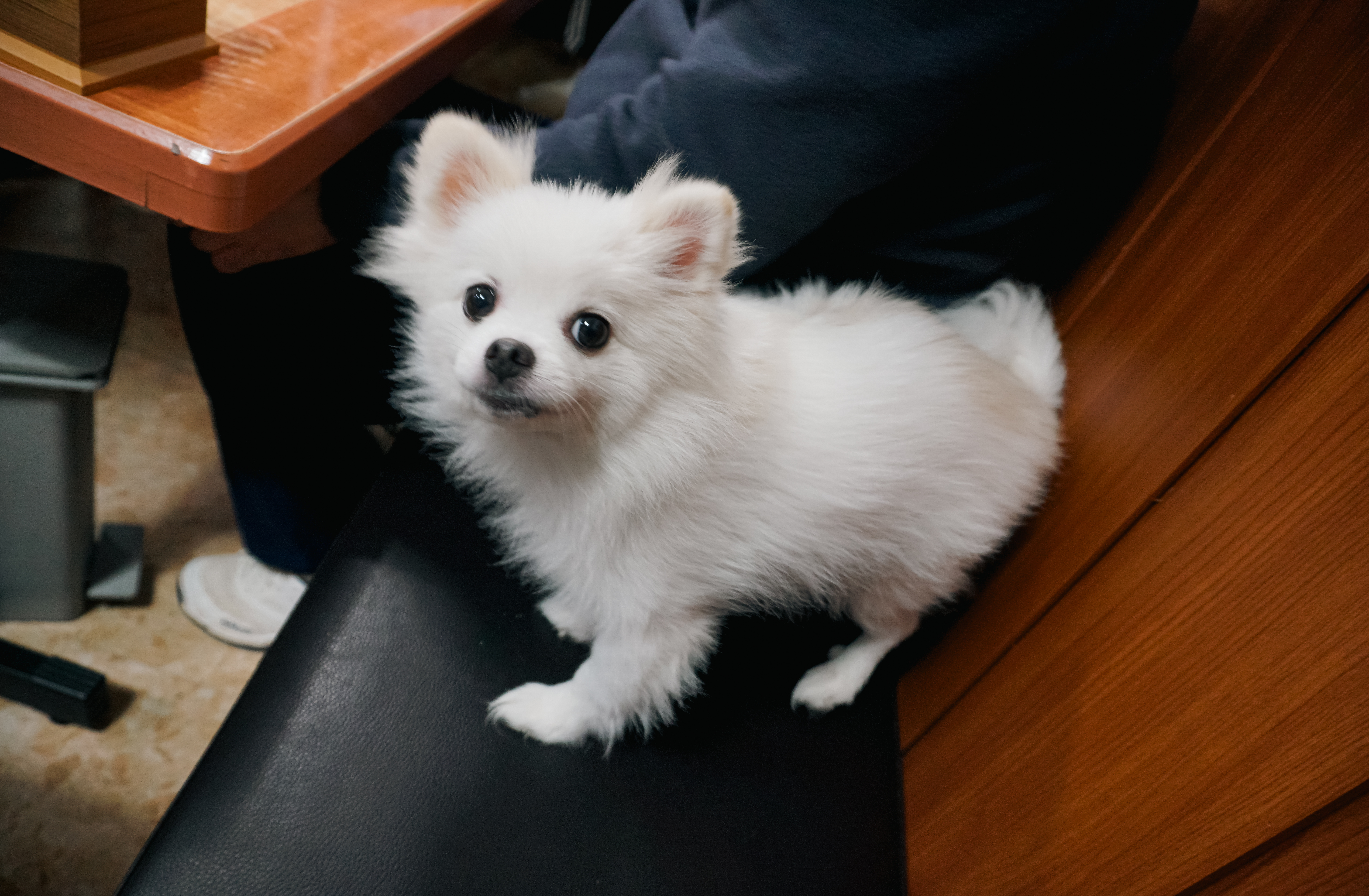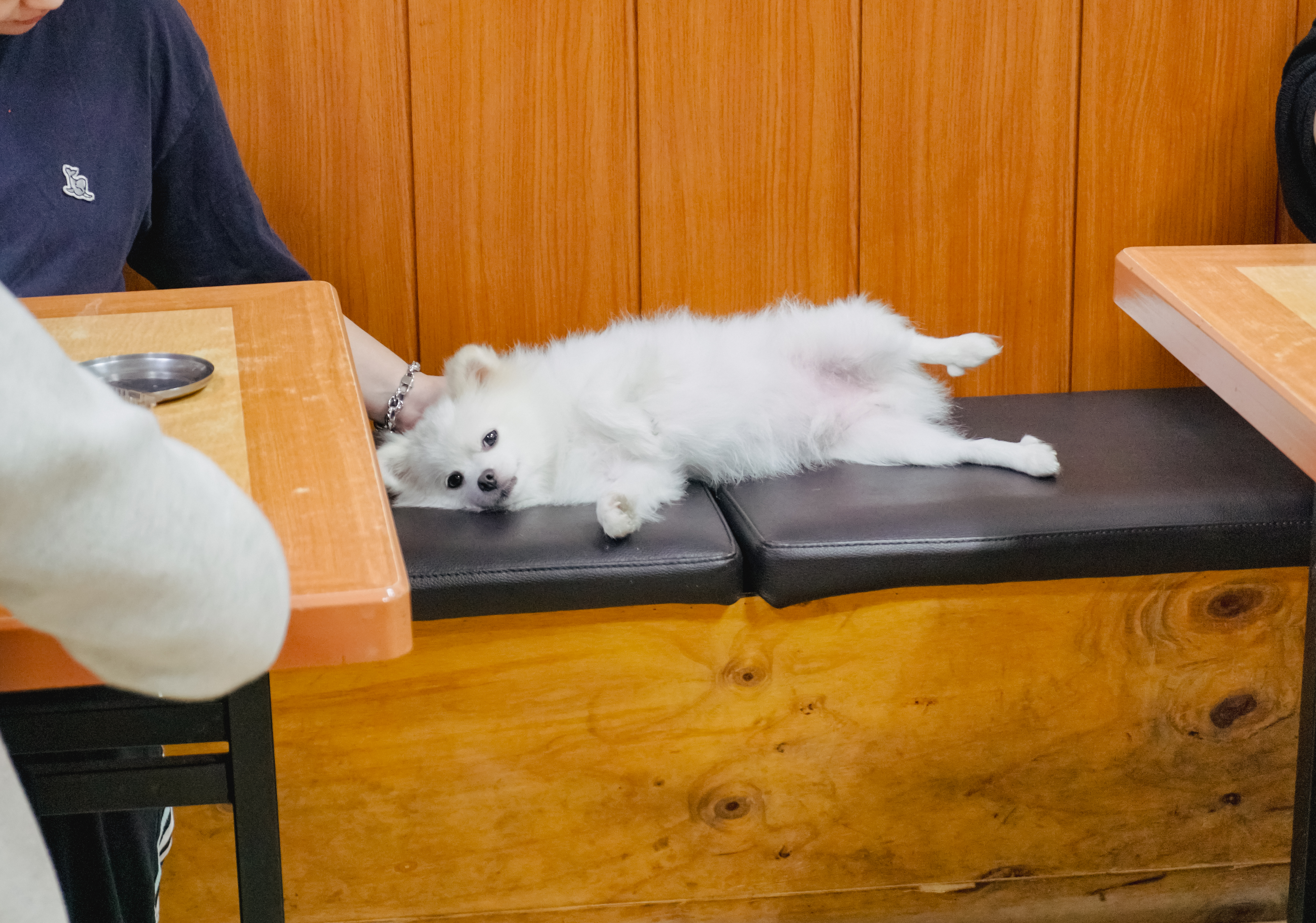 고창댁설렁탕의 강아지는 '모찌'라는 이름의 포메라니안(?) 종류였고, 작고 온순한 아이였습니다. 주로 바닥이나 의자정도로 올라가고 있었고, 손님들 식탁으로는 올라오지 않게 교육이 되어있는 것 같았습니다. 짖거나 뛰어다니지 않고, 얌전하게 있다 보니 손님들 대부분이 좋아하는 편이었습니다. 저 또한 강아지가 식탁에만 오르지 않는다면 크게 개의치 않는 편이라 기분 좋게 식사할 수 있었습니다.
