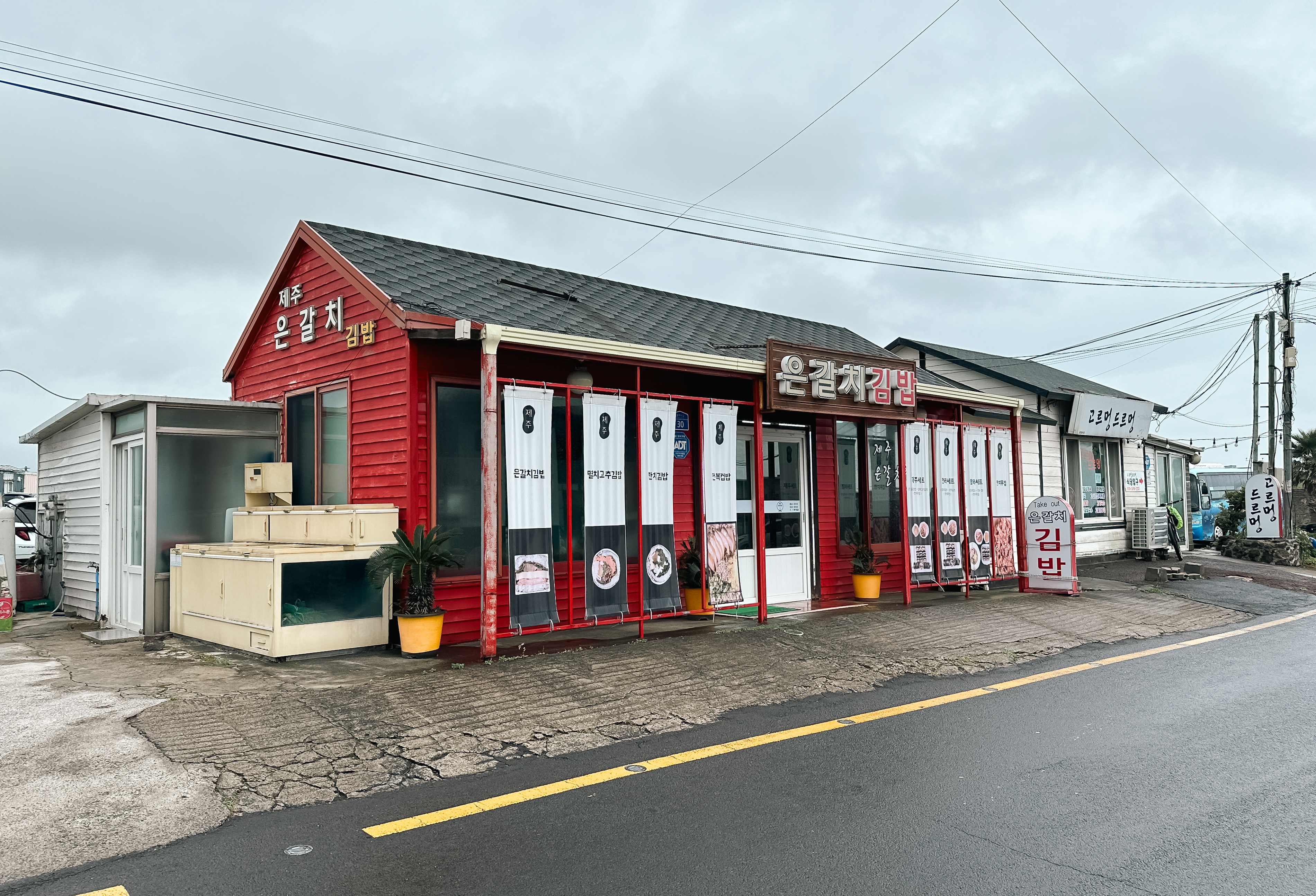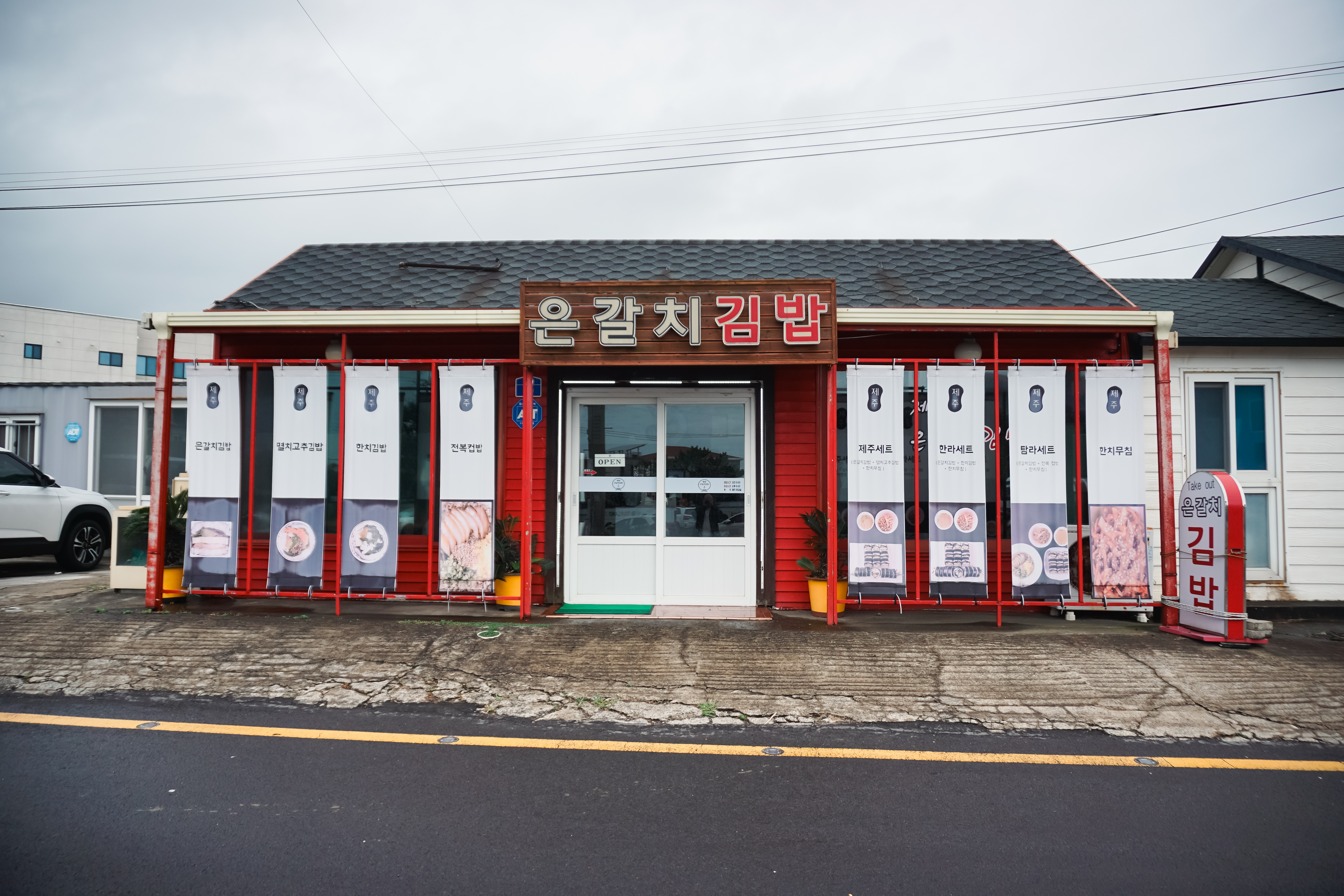 제주 은갈치김밥은 제주특별자치도 제주시 용담삼동 969-2 에 위치한 가게였습니다. 이곳은 제주공항에서 멀지 않은 곳에 위치해 있어서 제주도 여행을 시작하시는 분이나, 여행을 마치고 비행기를 탑승하기 전 잠깐 들르기 괜찮은 가게였습니다. 주차는 가게 옆에다 하면 되었습니다. 영업시간은 08:00~18:00 까지였으며, 화요일은 휴무라고 합니다.