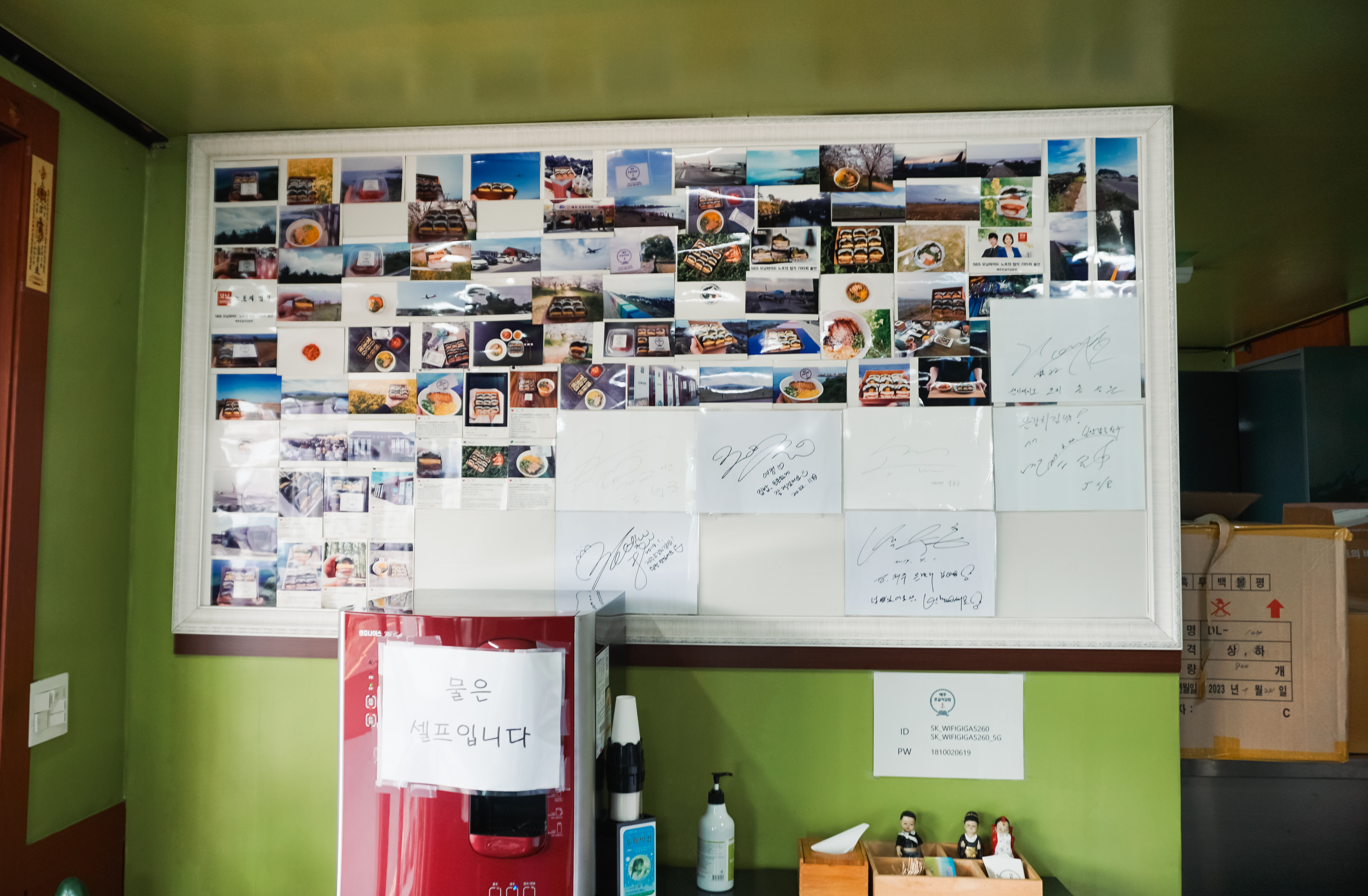 은갈치김밥의 은갈치는 직접 손질하여 가시 없이 먹을 수 있다고 합니다. 그밖에 벽면에는 유명인들의 사인이 붙어있었습니다. 이제 메뉴를 함께 살펴보시죠.
