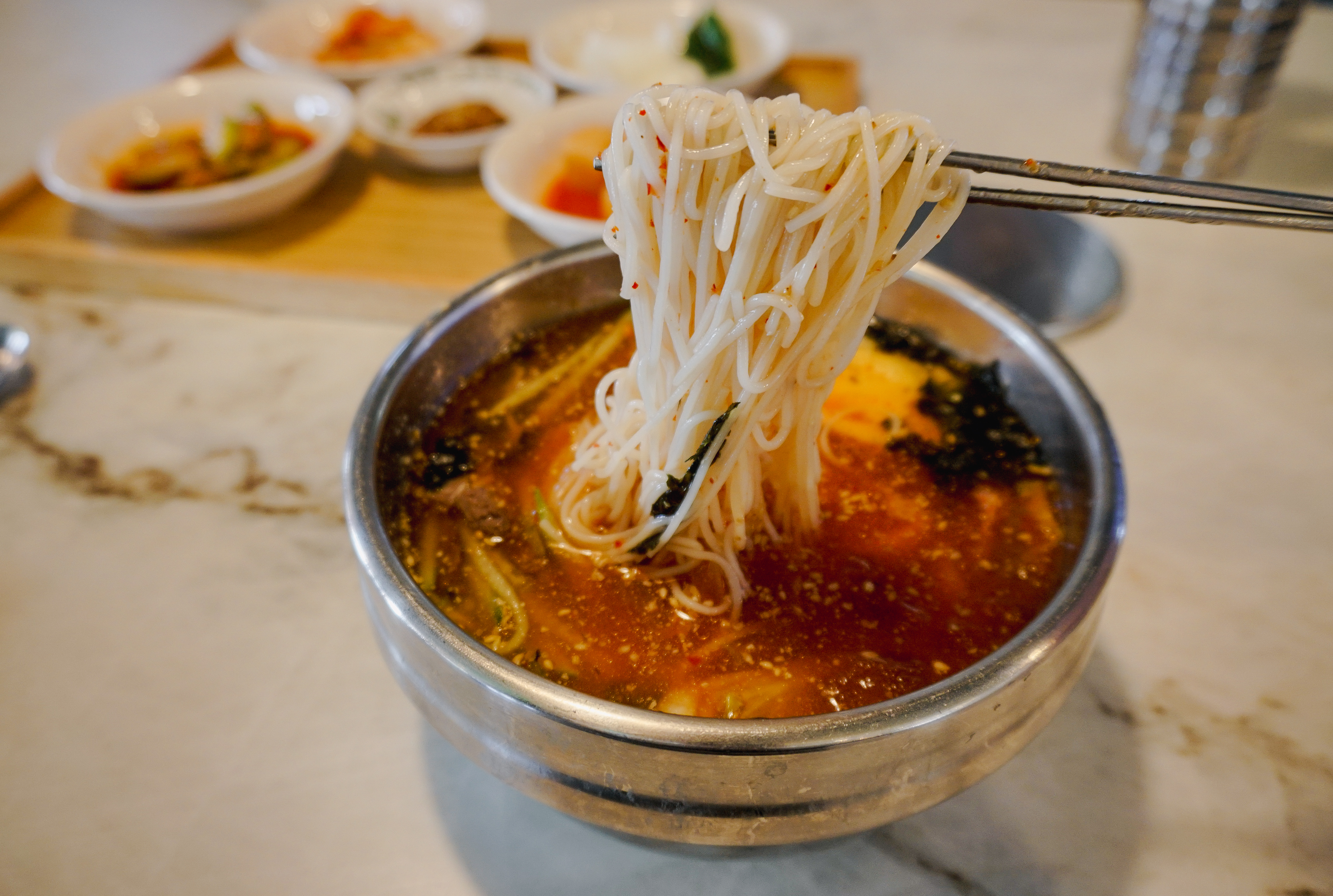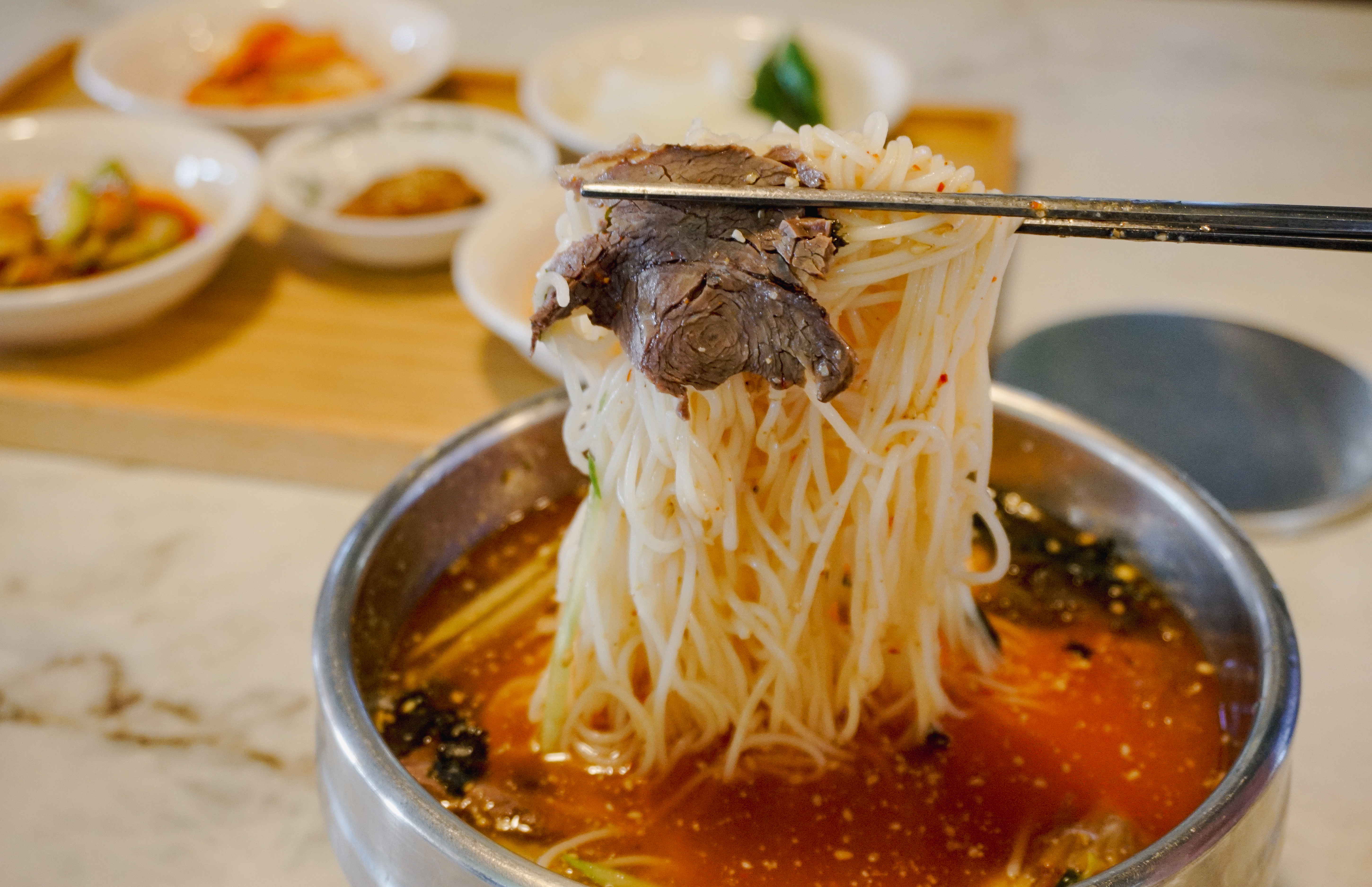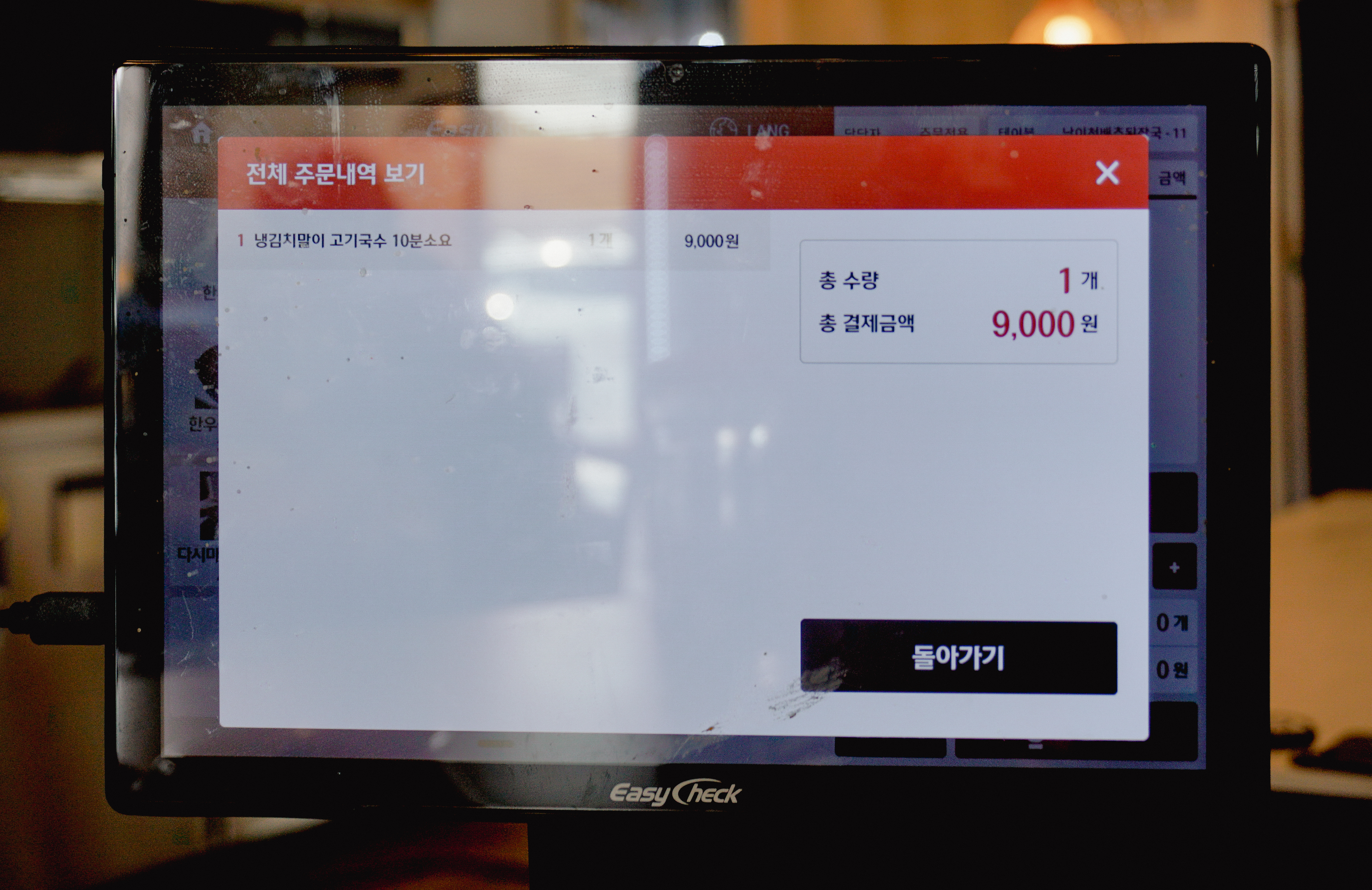 그냥 "평범한 냉김치말이국수구나" 하고 말이죠. 솔직히 맛이 없었던 것은 아닌데, 뭔가 이름으로 기대감만 잔뜩 부풀려놓고 내용은 별게 없다 보니 허무하다는 생각이 들었죠. 그래도 9,000원에 한우사태수육도 들어가 있고, 냉국수에 육수도 진한 육향이 나는 메뉴라 맛은 괜찮았습니다.