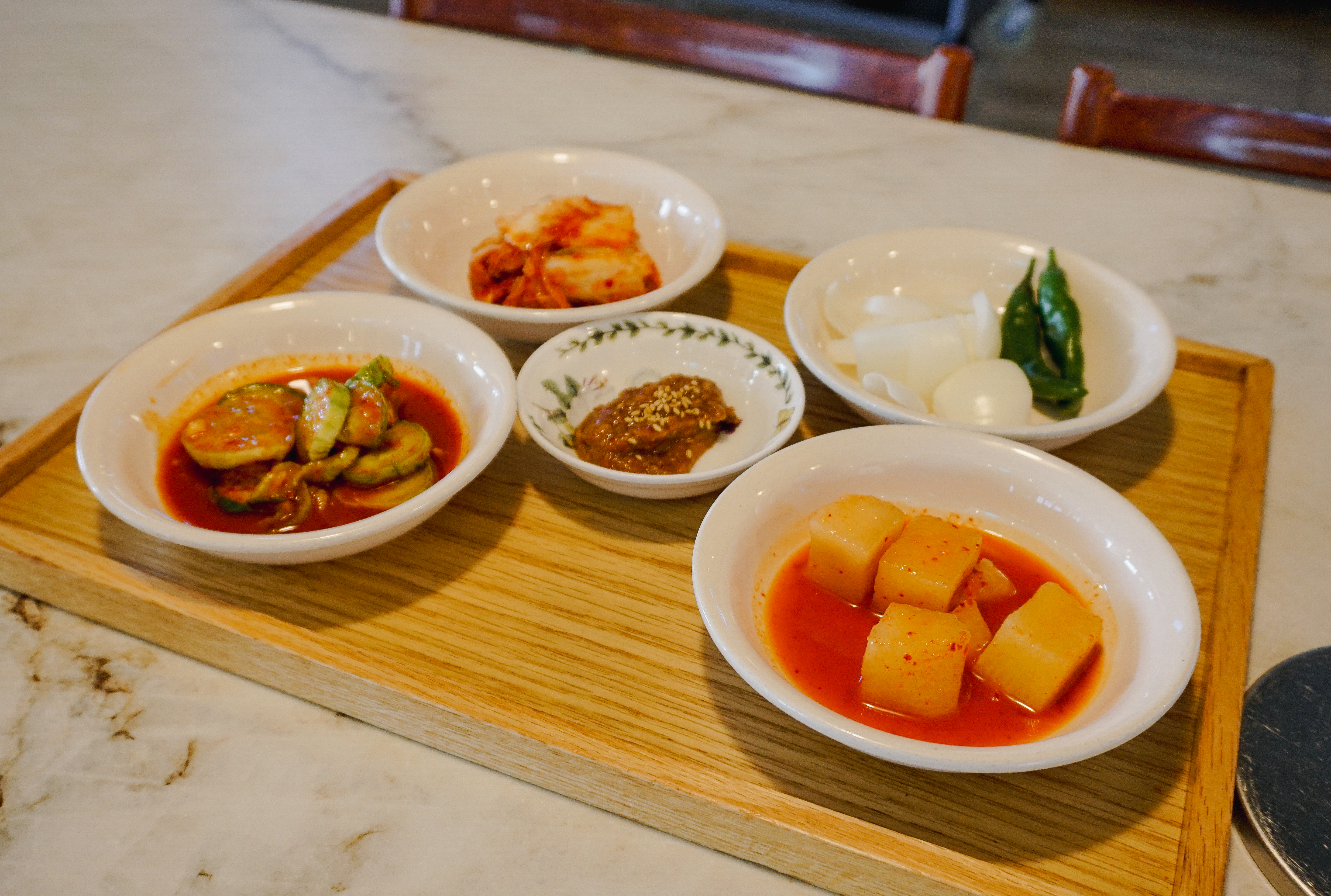 곧이어 주문한 초전도냉김치말이국수와 함께 반찬이 나왔습니다. 솔직히 '더위저항 제로 한우사태수육 융합' 이라는 문구가 적혀있어서 뭔가 새로운 시원함(?)을 줄 것 같았지만, 한 입 뜨는 순간 깨달았죠.