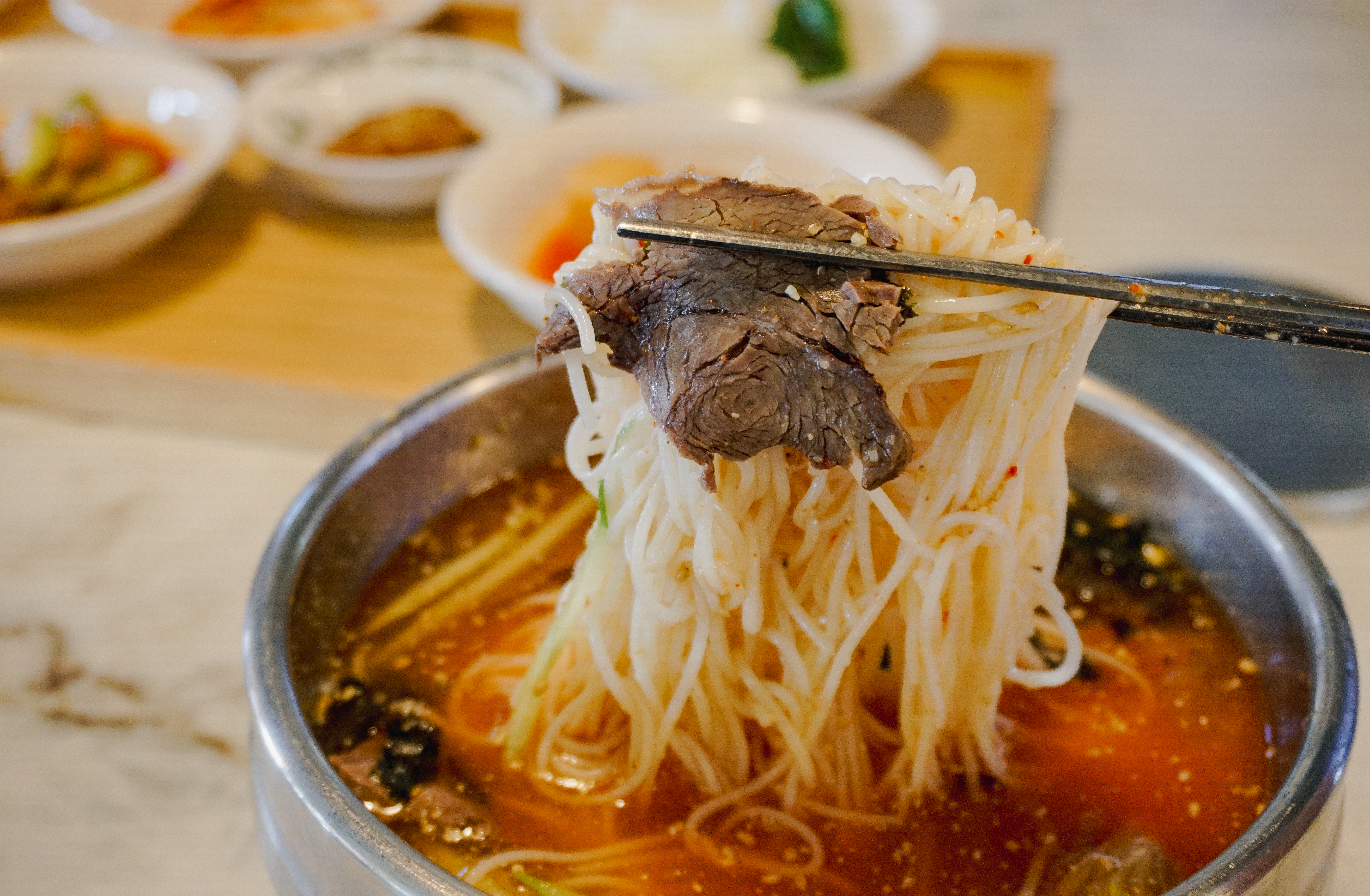 그냥 "평범한 냉김치말이국수구나" 하고 말이죠. 솔직히 맛이 없었던 것은 아닌데, 뭔가 이름으로 기대감만 잔뜩 부풀려놓고 내용은 별게 없다 보니 허무하다는 생각이 들었죠. 그래도 9,000원에 한우사태수육도 들어가 있고, 냉국수에 육수도 진한 육향이 나는 메뉴라 맛은 괜찮았습니다.