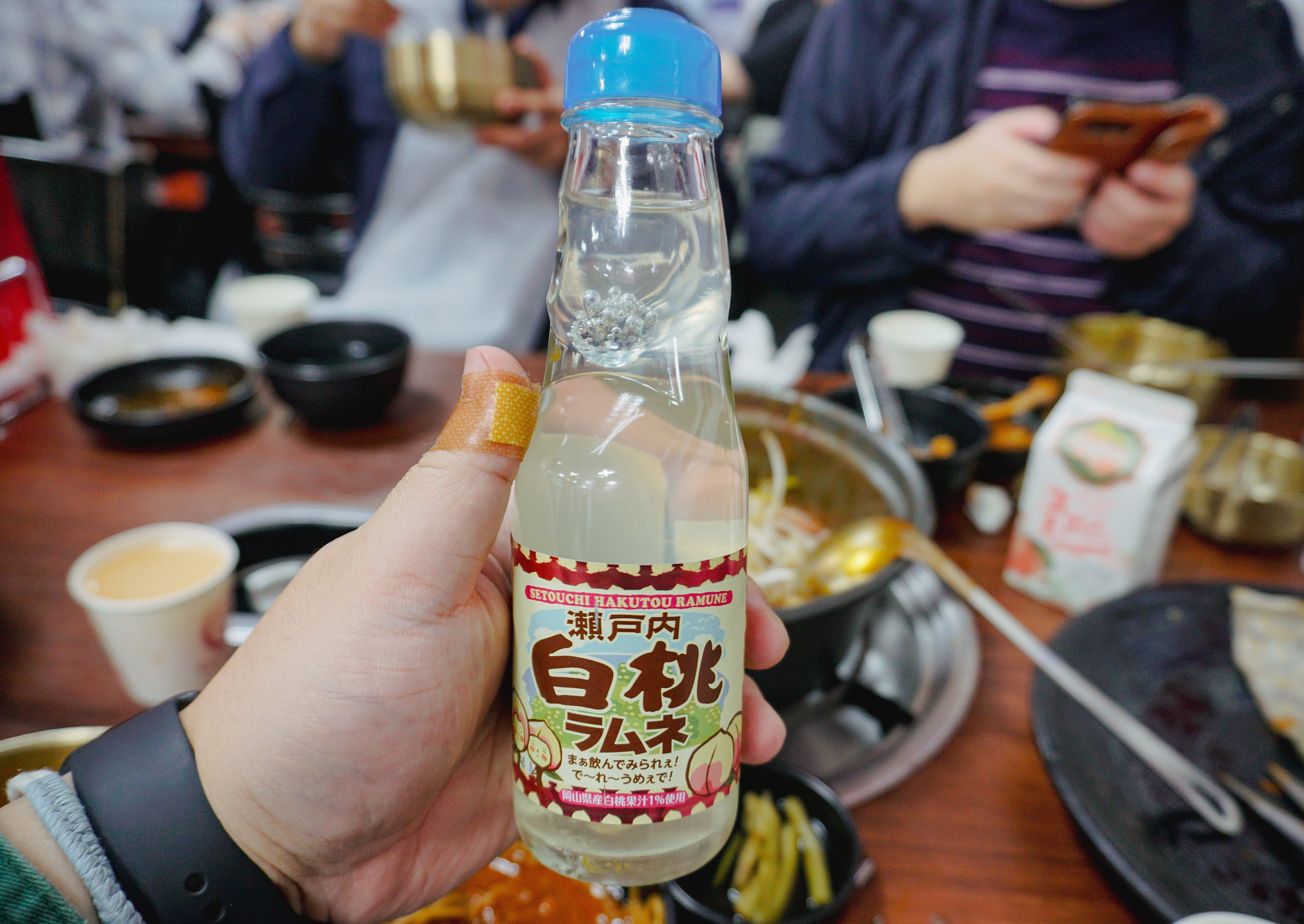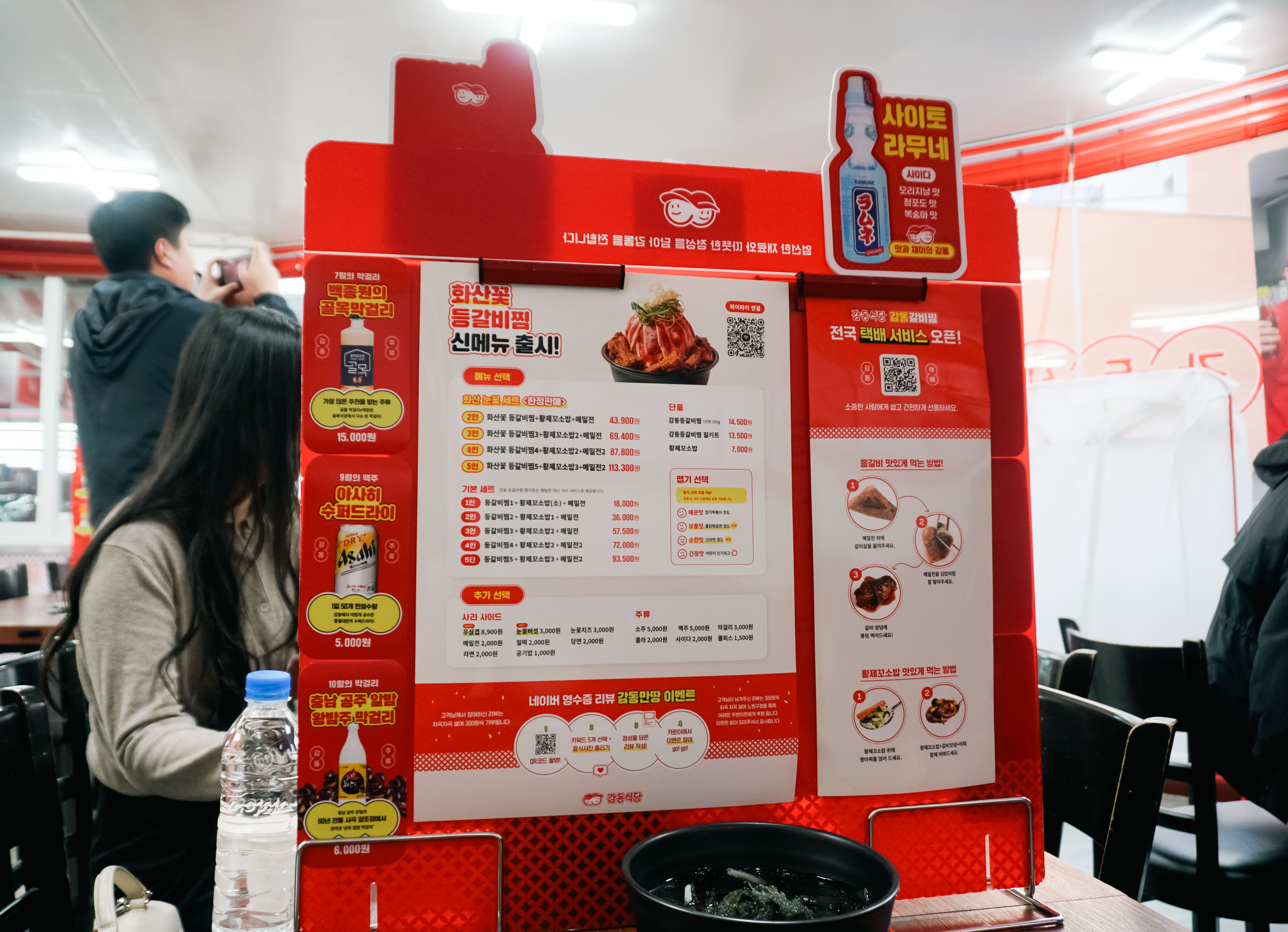 저와 함께 간 일행이 사진을 너무 열정적으로 찍어서인지 사장님이 음료수를 서비스로 주셨습니다. 매운맛에는 쿨피스가 좋긴 하지만, 저는 복숭아맛 라무네를 선택했습니다. 매운맛의 갈비찜도 맛있었지만, 젊은 사장님들의 열정이 많이 보이는 가게라 괜찮게 이용했던 것 같습니다. 요즘 날씨가 쌀쌀해지고 있는데, 매콤한 등갈비찜으로 추위를 맞이해 보는 것은 어떨까요?