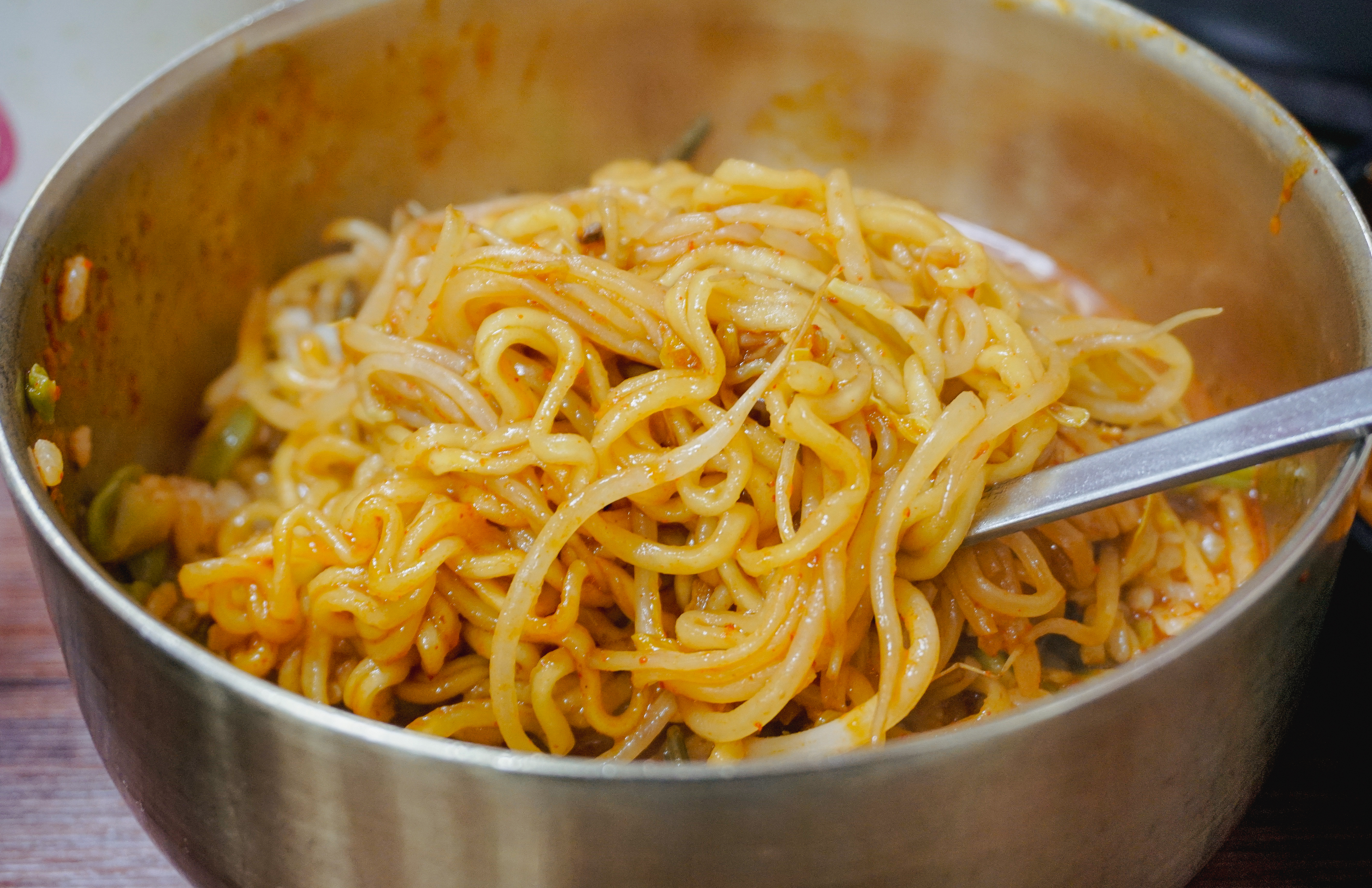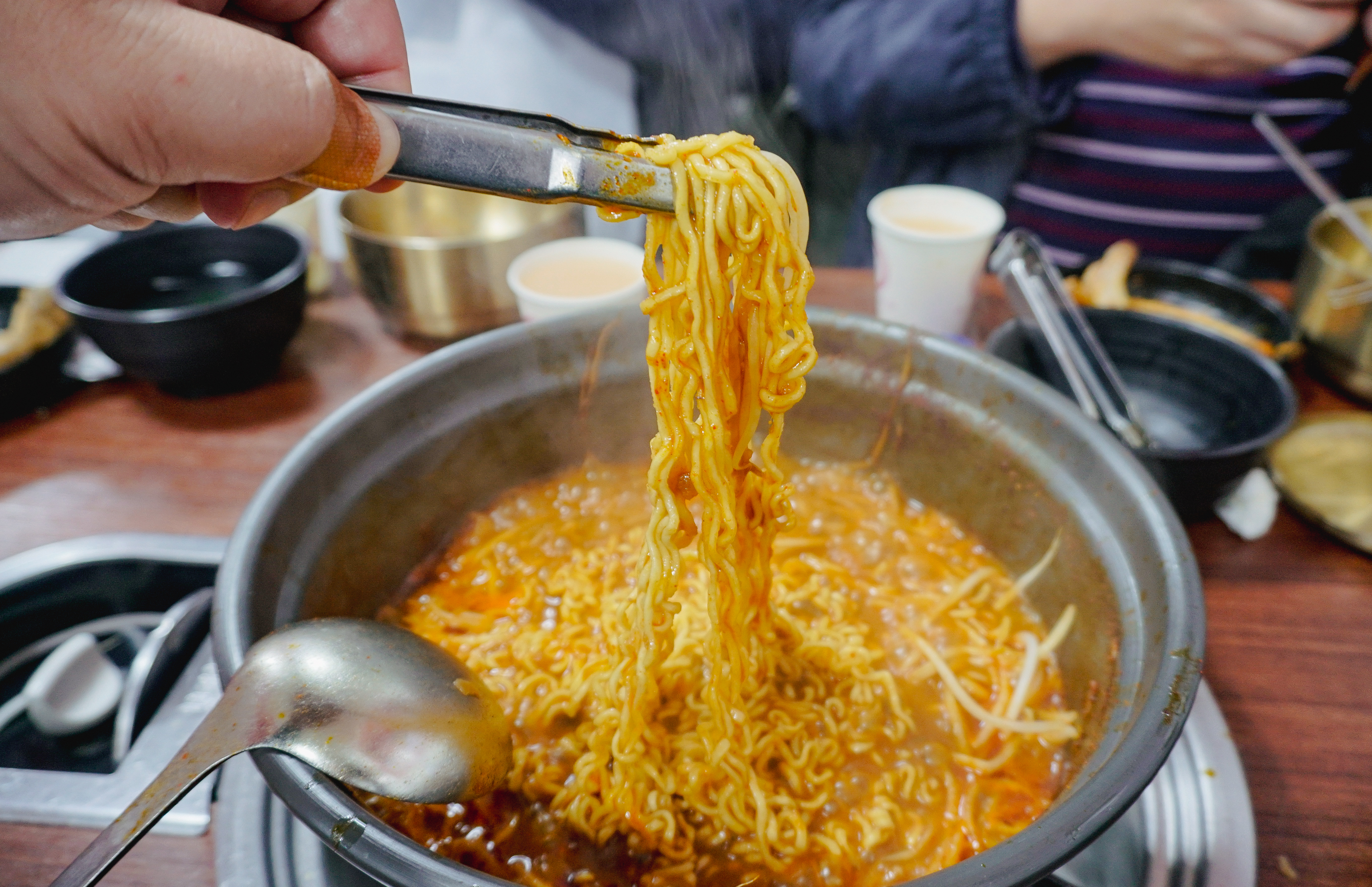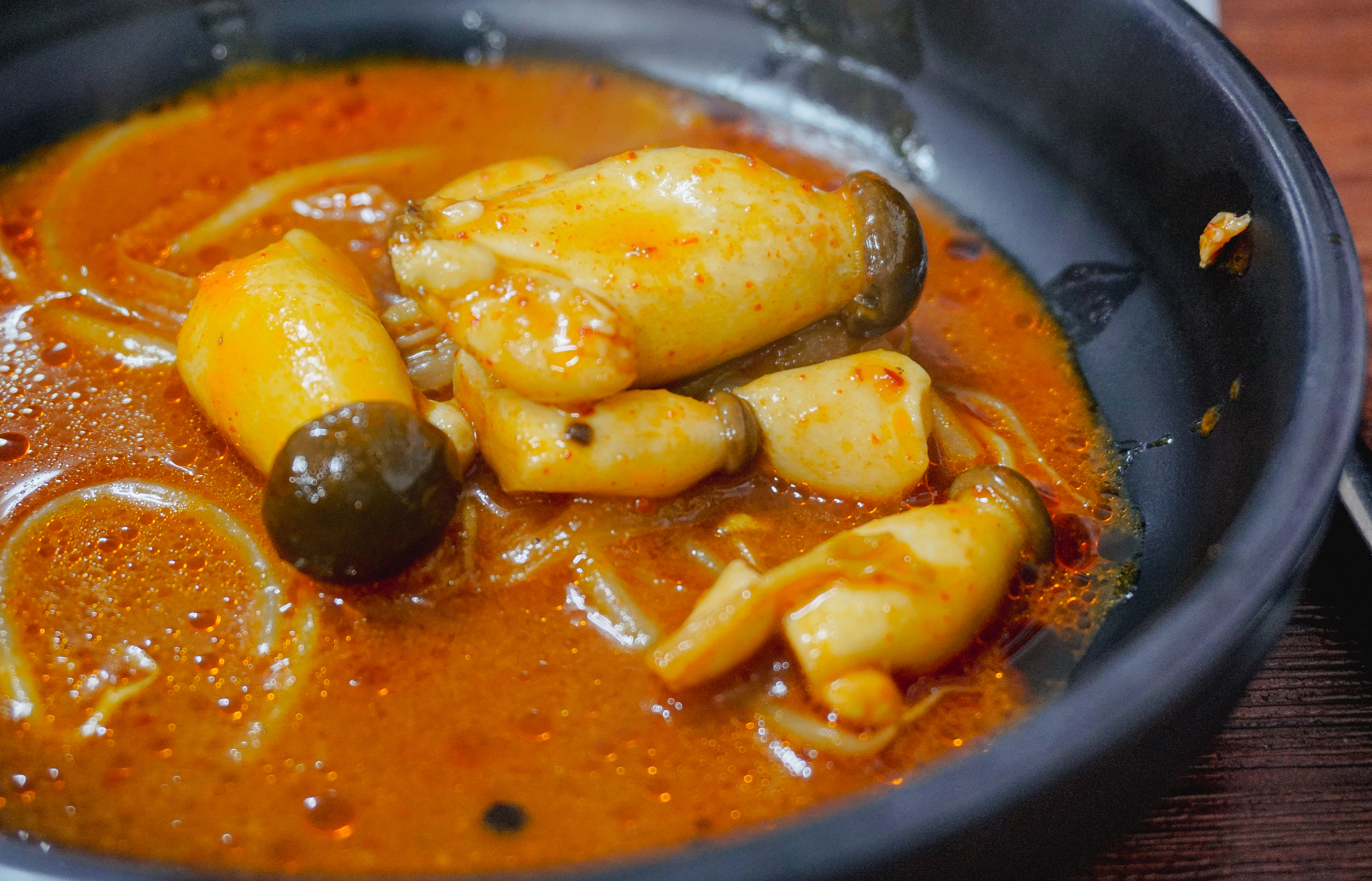 메뉴가 보글보글 끓기 시작했고, 타이머가 울리면 약불로 줄여서 떡과 버섯, 숙주나물을 먼저 건져먹은 다음 등갈비를 꺼내서 먹으면 되었습니다. 등갈비는 적당히 매콤해서 먹기 좋았고, 숙주나물이랑 버섯과 함께 먹으니 맛이 좋더라고요. 참고로, 숙주나물은 중간중간 계속 리필을 해주고 있었습니다.