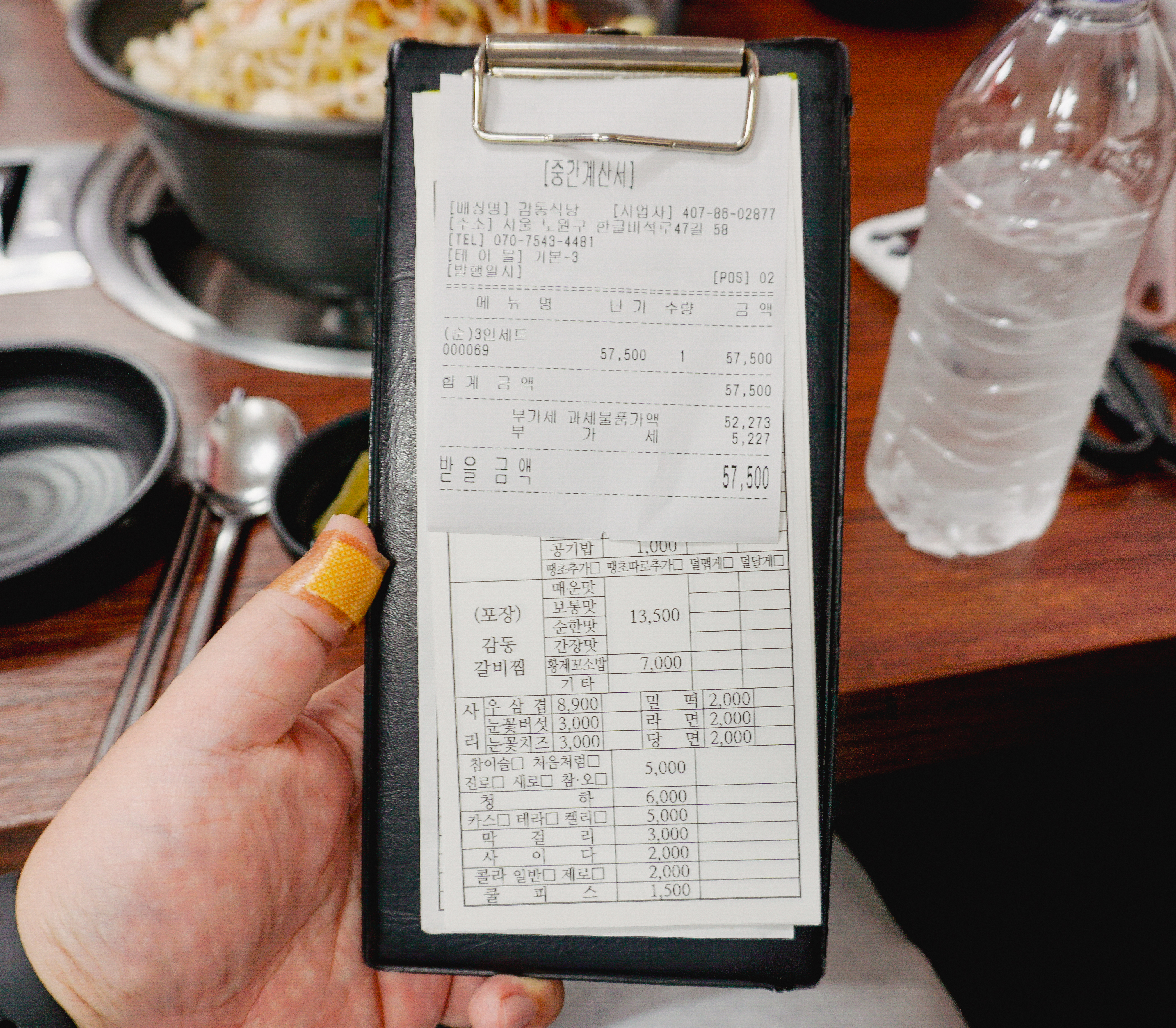 등갈비찜과 함께 미역냉국과 장아찌가 나왔습니다. 등갈비찜이 익는 동안 상계동 감동식당은 조그마한 이벤트 참여를 유도하고 있었는데요, 네이버 영수증 이벤트나 인스타그램, 당근마켓, 카카오 등을 팔로우하고, 리뷰를 남기거나 친구추가를 하면 된다는데 저는 번거롭고 귀찮아서 그냥 이벤트에 따로 참여하지는 않았습니다.
