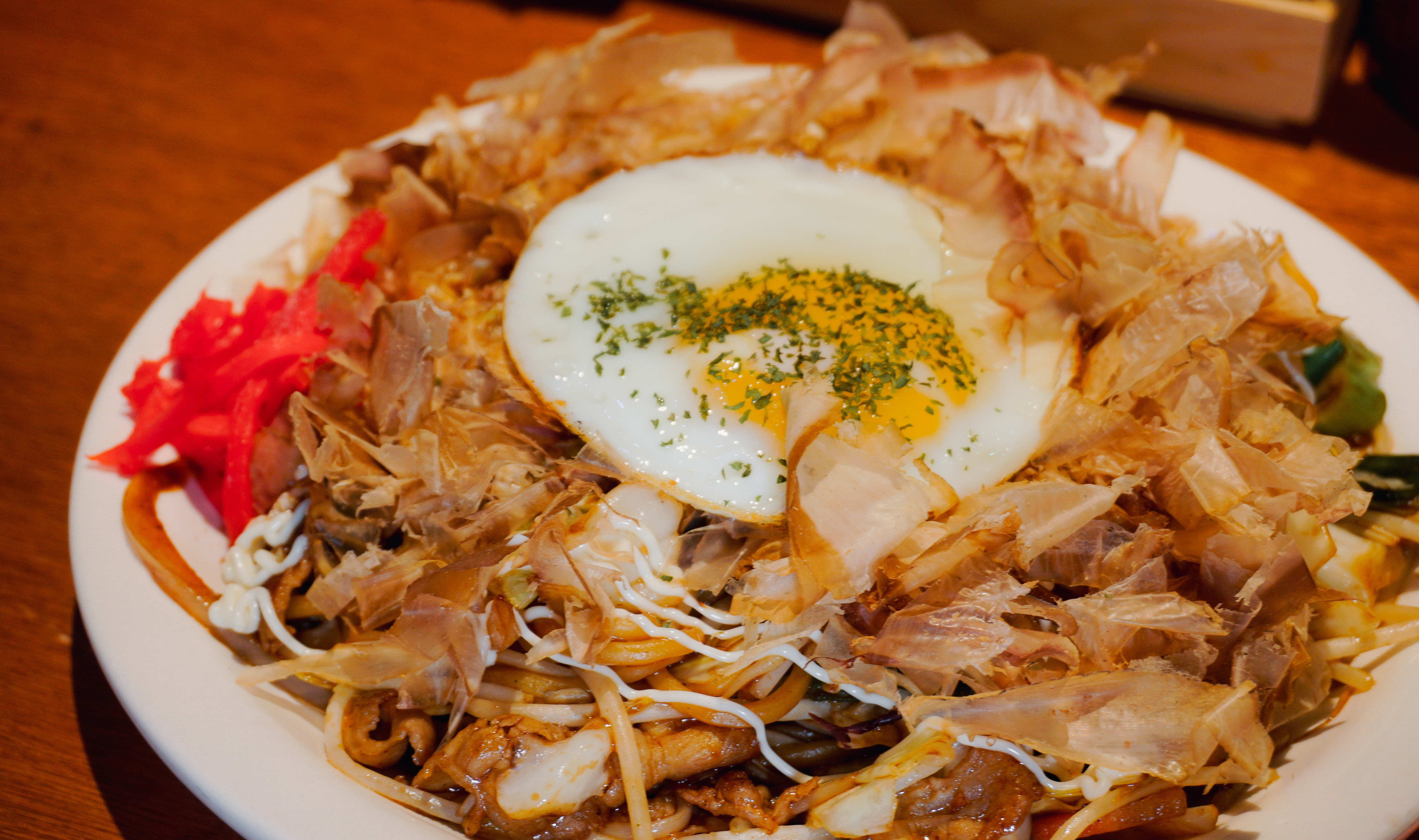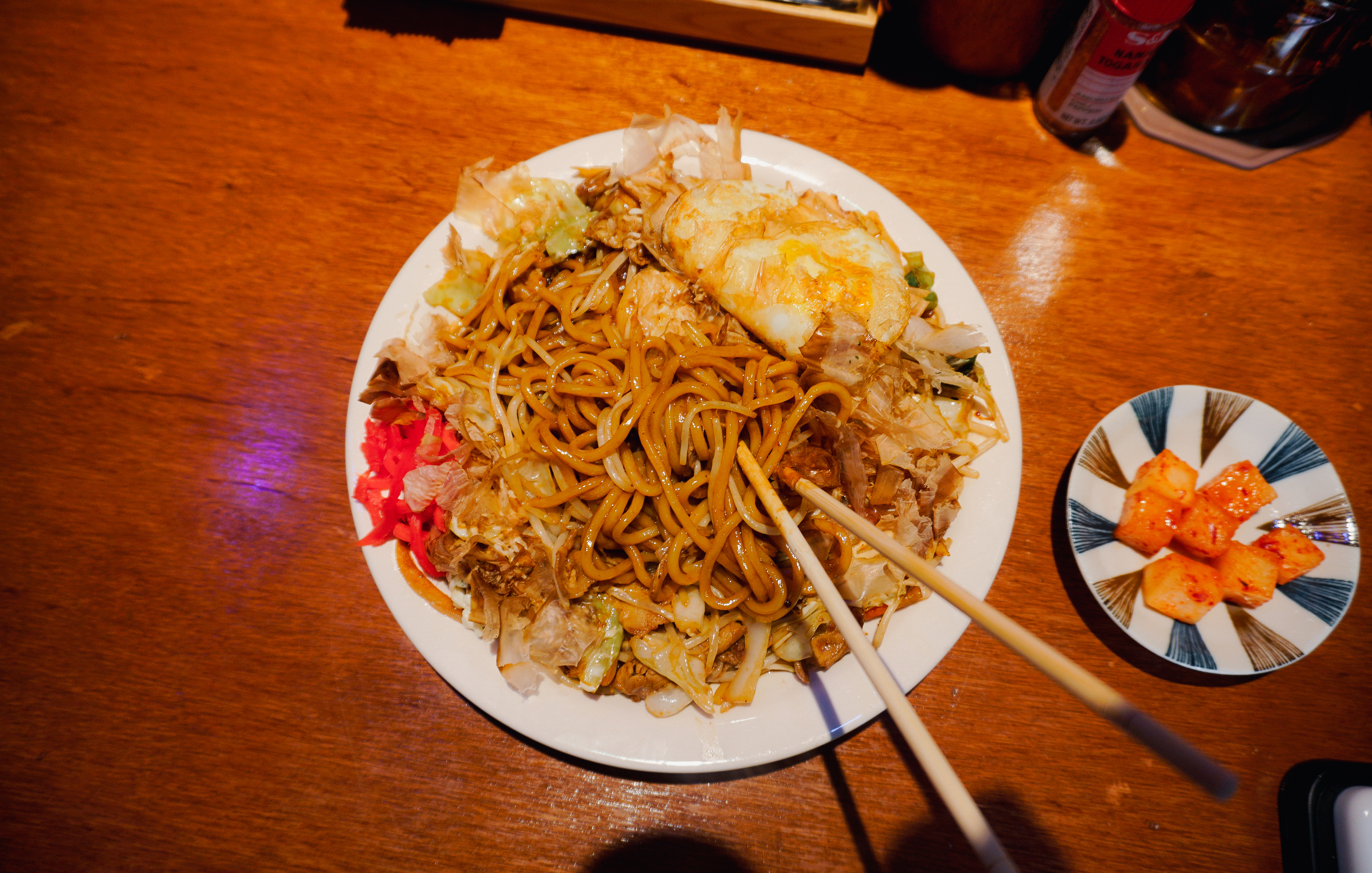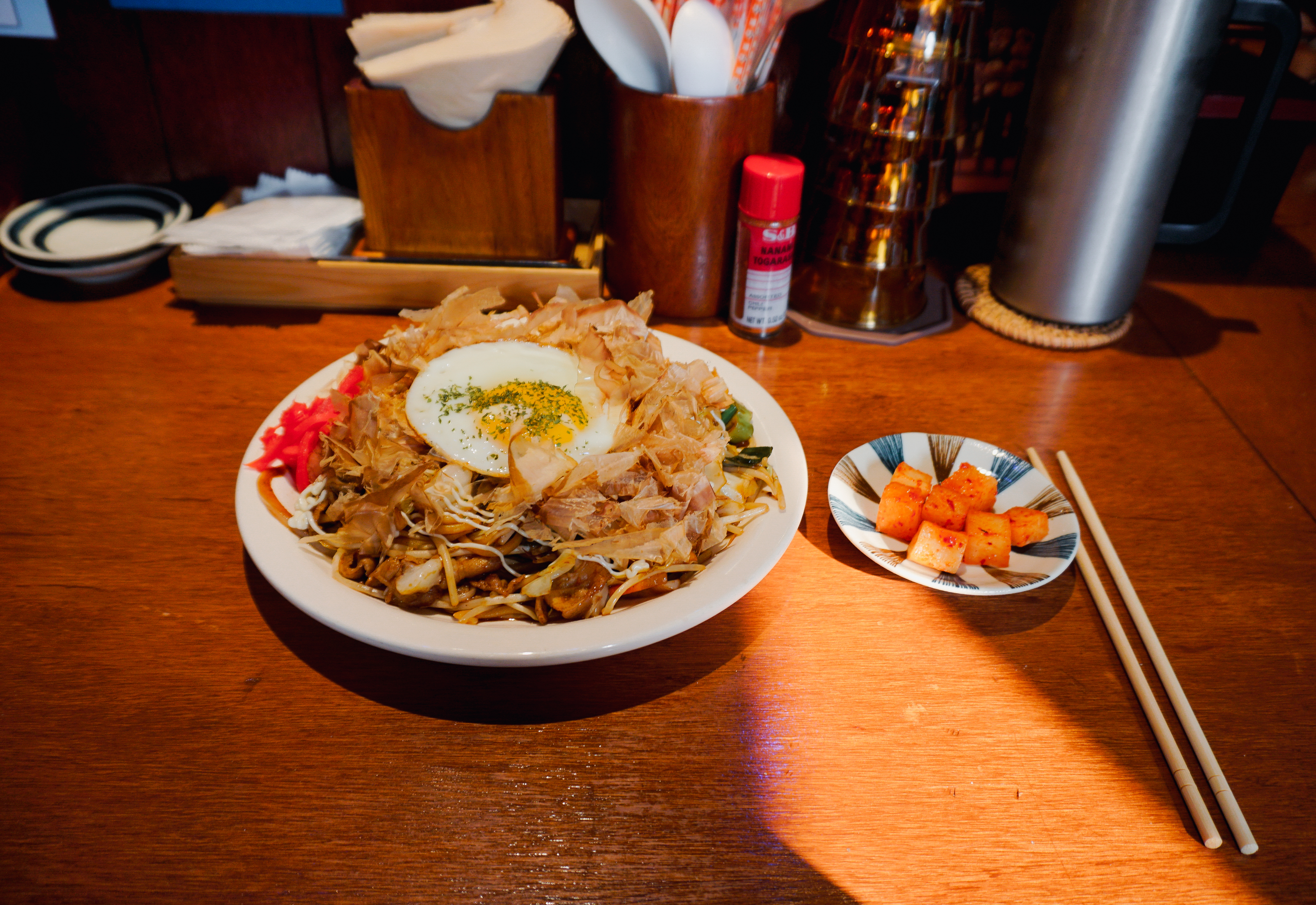 제가 주문한 야끼소바가 나왔습니다. 야끼소바는 볶음면이었는데 오코노미야키와 비슷한 메뉴라고 보시면 될 것 같습니다. 가쓰오부시와 달걀프라이가 올라가 고소하면서도 향이 좋았고, 해산물과 함께 볶아내 감칠맛이 좋았습니다.