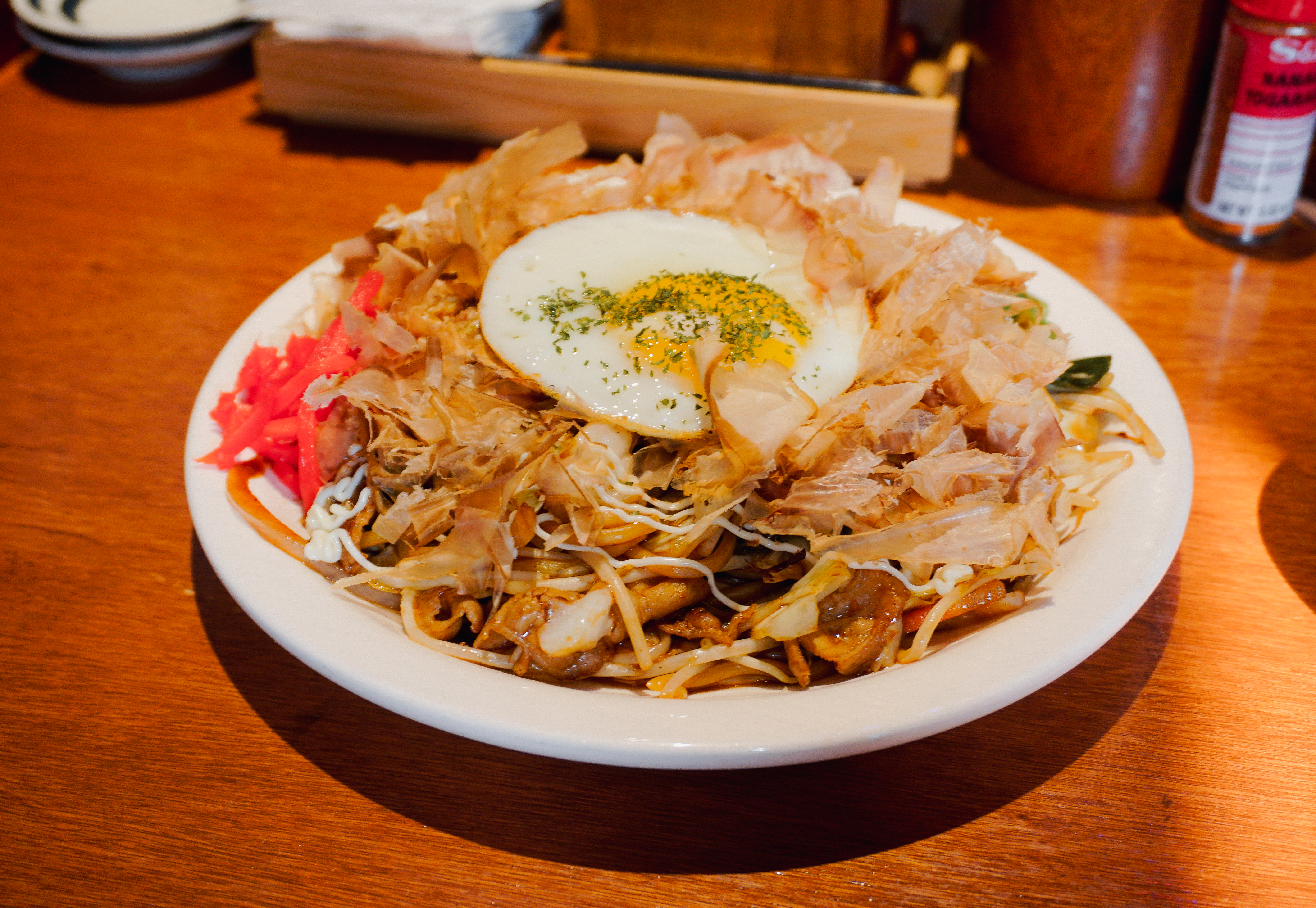 제가 주문한 야끼소바가 나왔습니다. 야끼소바는 볶음면이었는데 오코노미야키와 비슷한 메뉴라고 보시면 될 것 같습니다. 가쓰오부시와 달걀프라이가 올라가 고소하면서도 향이 좋았고, 해산물과 함께 볶아내 감칠맛이 좋았습니다.