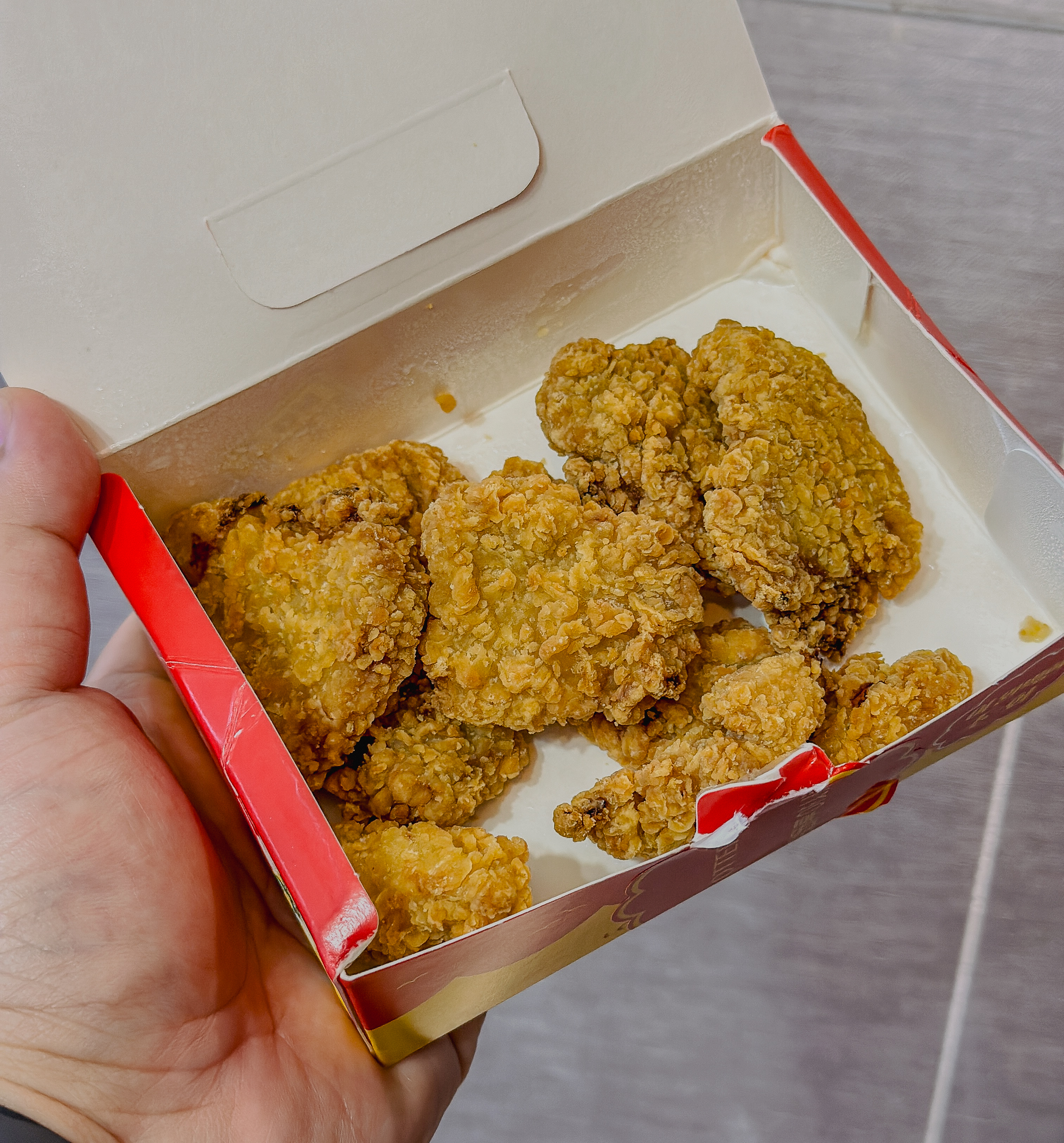 롯데리아의 깡돼후는 이미 튀겨놓은 깡돼후를 너겟처럼 기름에만 튀겨낸 맛이었습니다. 아무래도 직접 튀긴 메뉴에 비하면 퍽퍽한 느낌이 있었고, 롯데리아 치킨처럼 튀김옷이 눅눅한 느낌이 있었습니다.