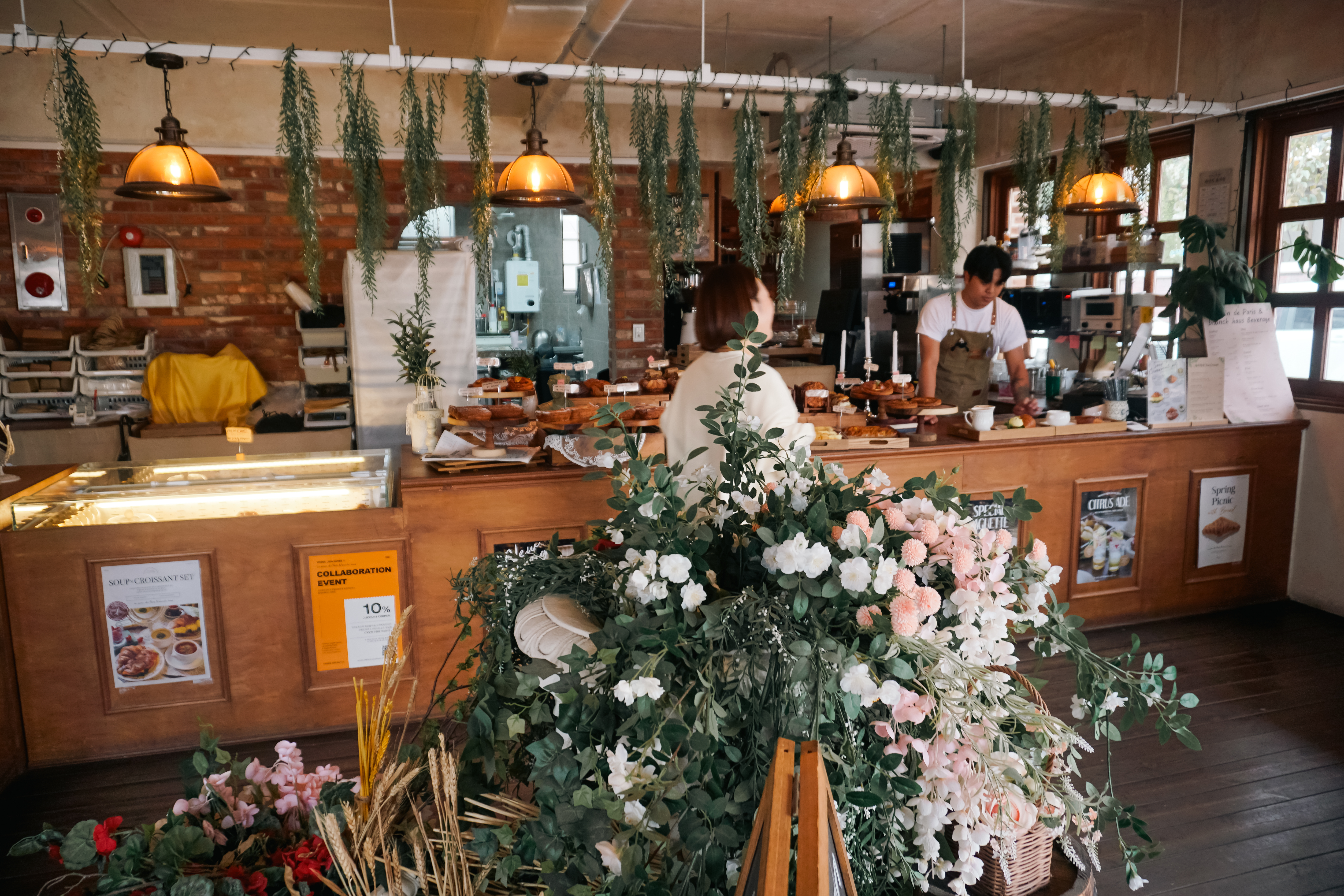 르빵드파리 1층은 빵과 음료를 주문할 수 있는 곳으로, 곳곳에 식물들이 놓여있었고 먹음직스러운 빵이 맛있어 보이더라고요. 1층에서 커피를 주문하고 2층으로 올라갔습니다.