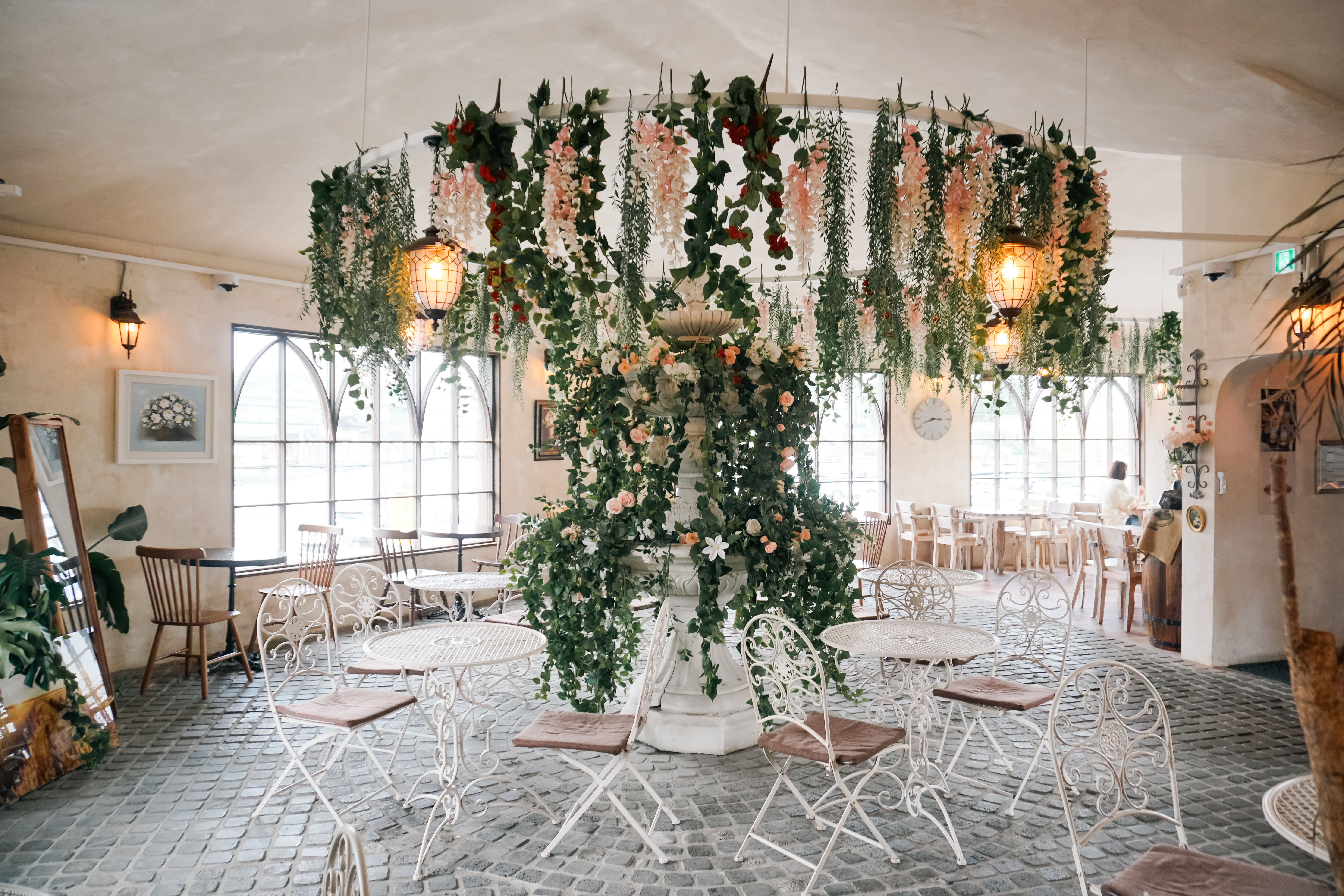 계단을 따라 2층으로 올라가 보았습니다. 르빵드파리의 계단부터 2층 입구까지 다양한 장식들이 있었는데, 유럽풍의 인테리어가 돋보이는 가게였습니다. 카페 2층은 정원 같은 분위기가 인상적인 공간이었습니다.