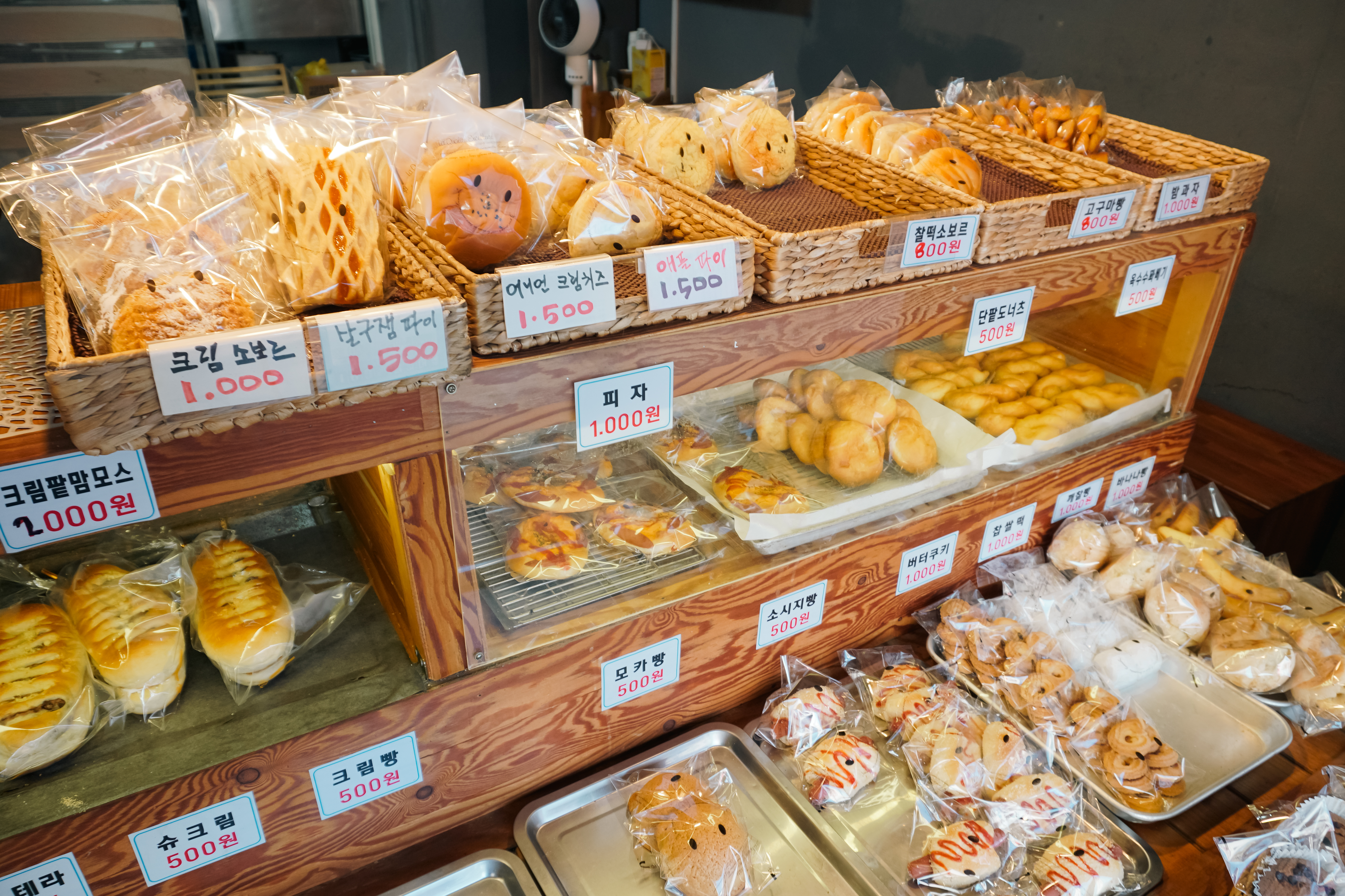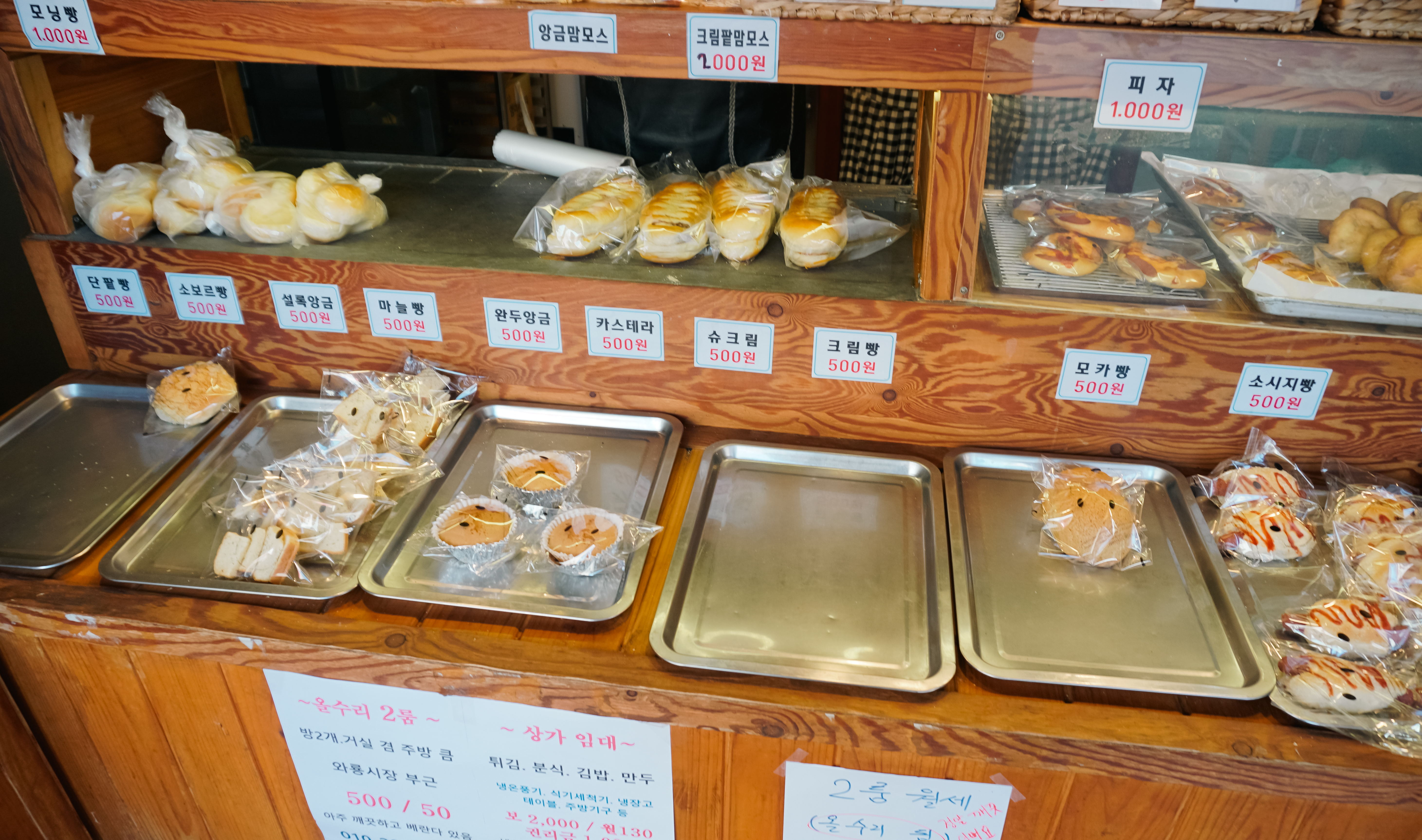 500원 빵을 팔게 된 계기를 아주머니께 여쭤보니, 개업을 한 2012년부터 시작해서 500원 빵을 팔기 시작했는데, 아직까지도 그 가격을 기억하고 찾아주는 손님들이 있다고 했습니다. 그러면서 "500원이라는 가격은 팔 수 있는 마지노선에 있는 금액" 이라고 하시더라고요. 그래서 "기왕이면 500원 빵 외에도 여러 가지 섞어서 먹고 싶은 빵을 다양하게 사가시기를 바란다"라고 말씀하셨습니다.