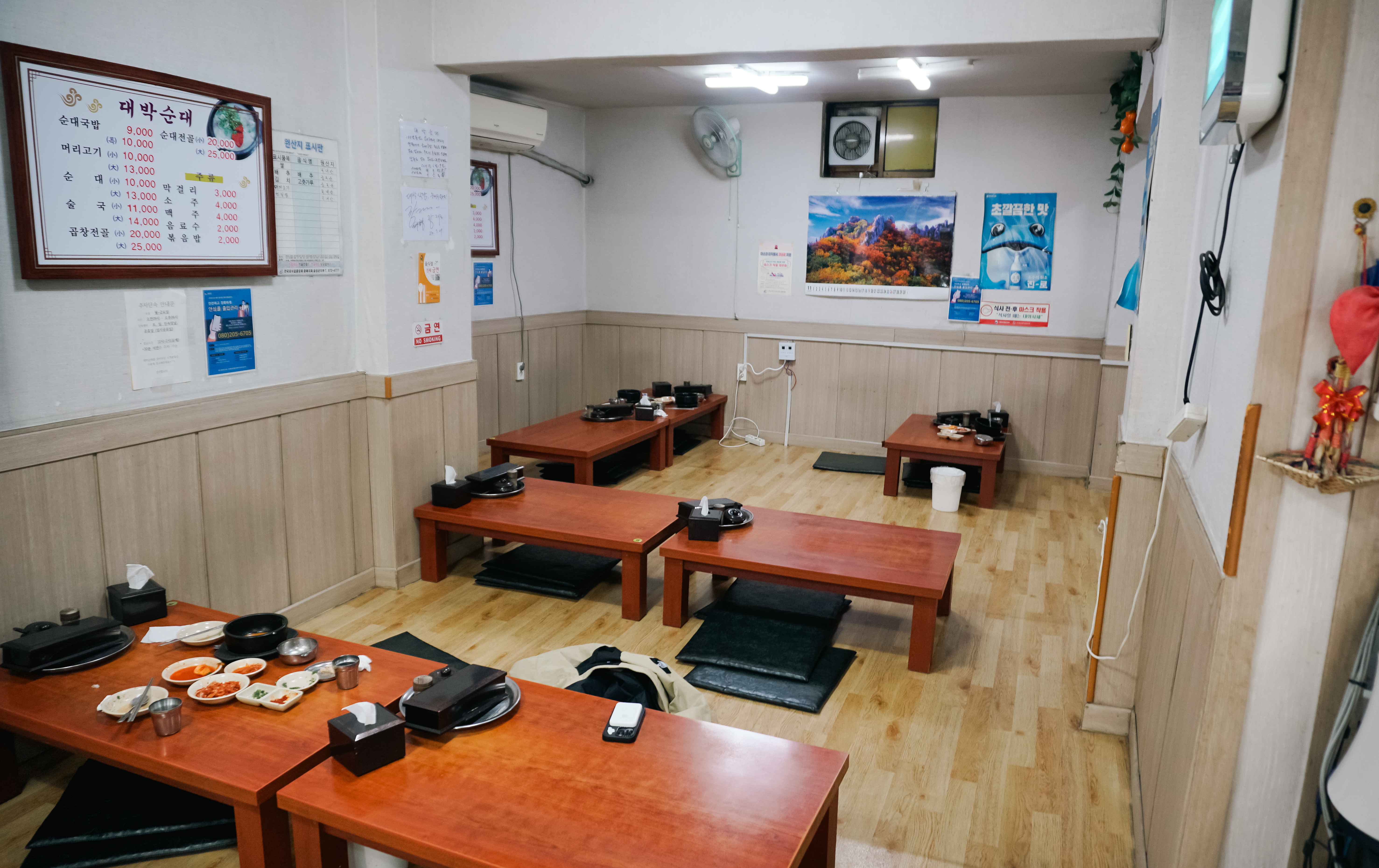 대박순대는 위와 같이 좌식 테이블이 놓여 있었고, 벽면에는 흥미로운 문구가 적혀있는 것을 볼 수 있었습니다. 내용은 아래와 같습니다.