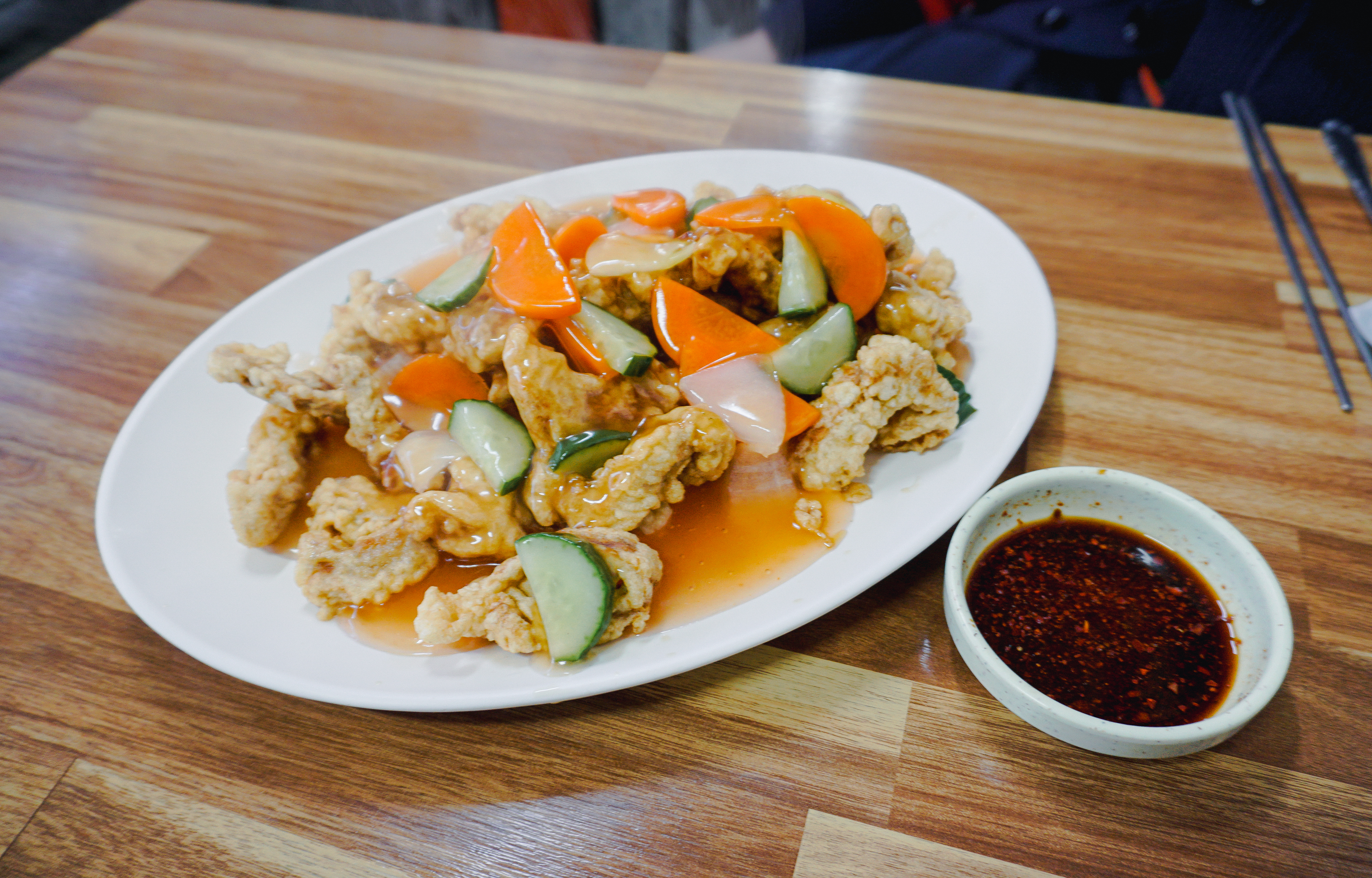 먼저, 아리랑반점의 탕수육 부터 살펴보겠습니다. 탕수육은 옛날 중국집 탕수육이었는데, 확실히 이런 종류의 탕수육은 찍먹보다는 부먹으로 먹는게 맛있는 것 같더라고요. 촉촉한 소스가 잘 스며든 탕수육은 맛이 좋았고, 양도 꽤 넉넉해서 배불리 먹을 수 있었습니다.