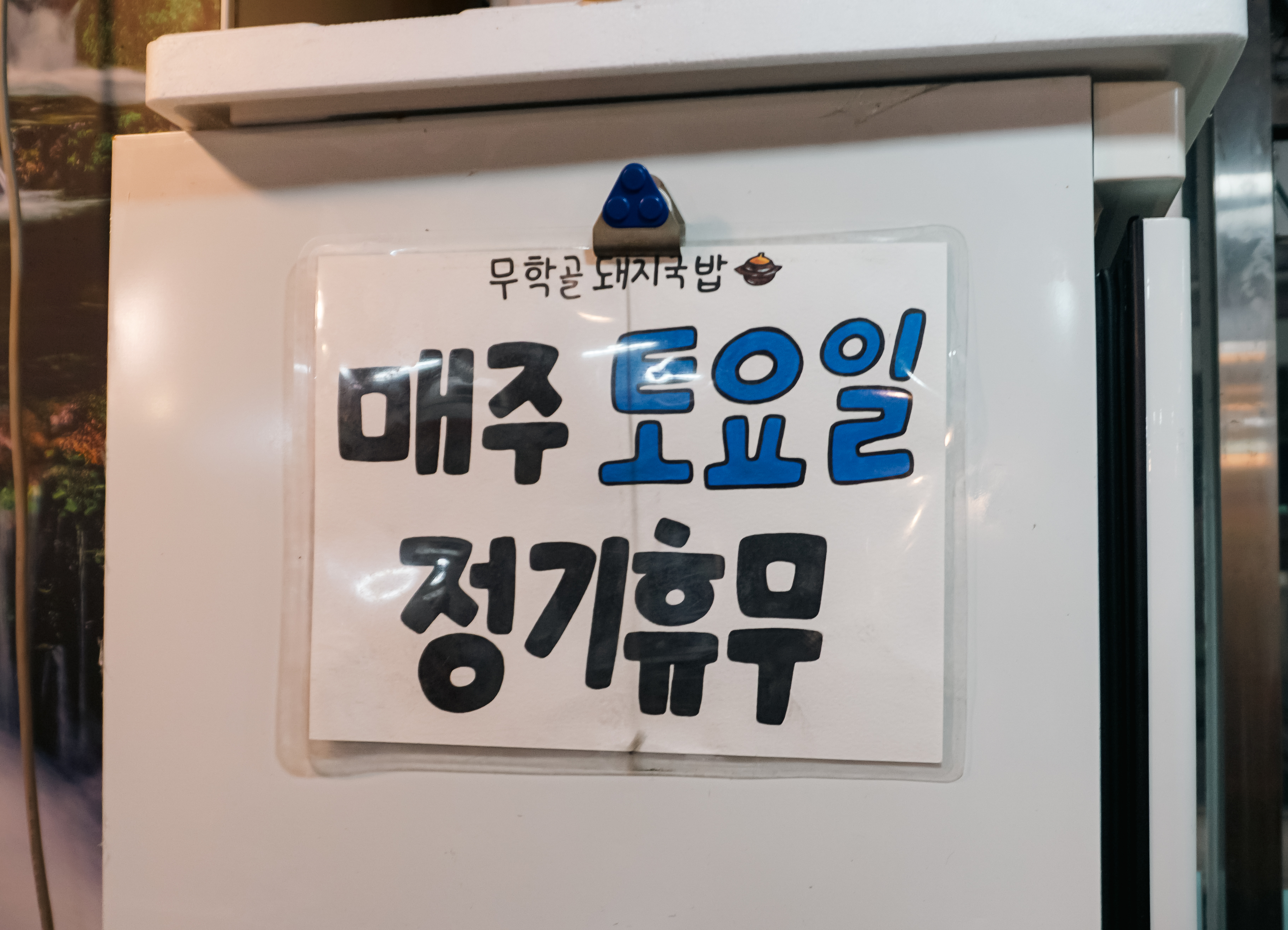 신암동 무학골돼지국밥에서 9,000원 돼지국밥 한 그릇만 먹었는데, 돼지 내장을 하도 먹어서 그런지 배가 많이 부르더라고요. 이 날 맛집 소개하는 유튜브 채널(?) 운영하는 분이 오셨는지, 가게 이곳저곳을 돌아다니시며 영상을 찍으시더라고요. 관심 있으신 분은 더 소문나기 전에 돼지 내장 좋아하시는 분은 얼른 다녀오시는 것을(?) 추천드립니다.