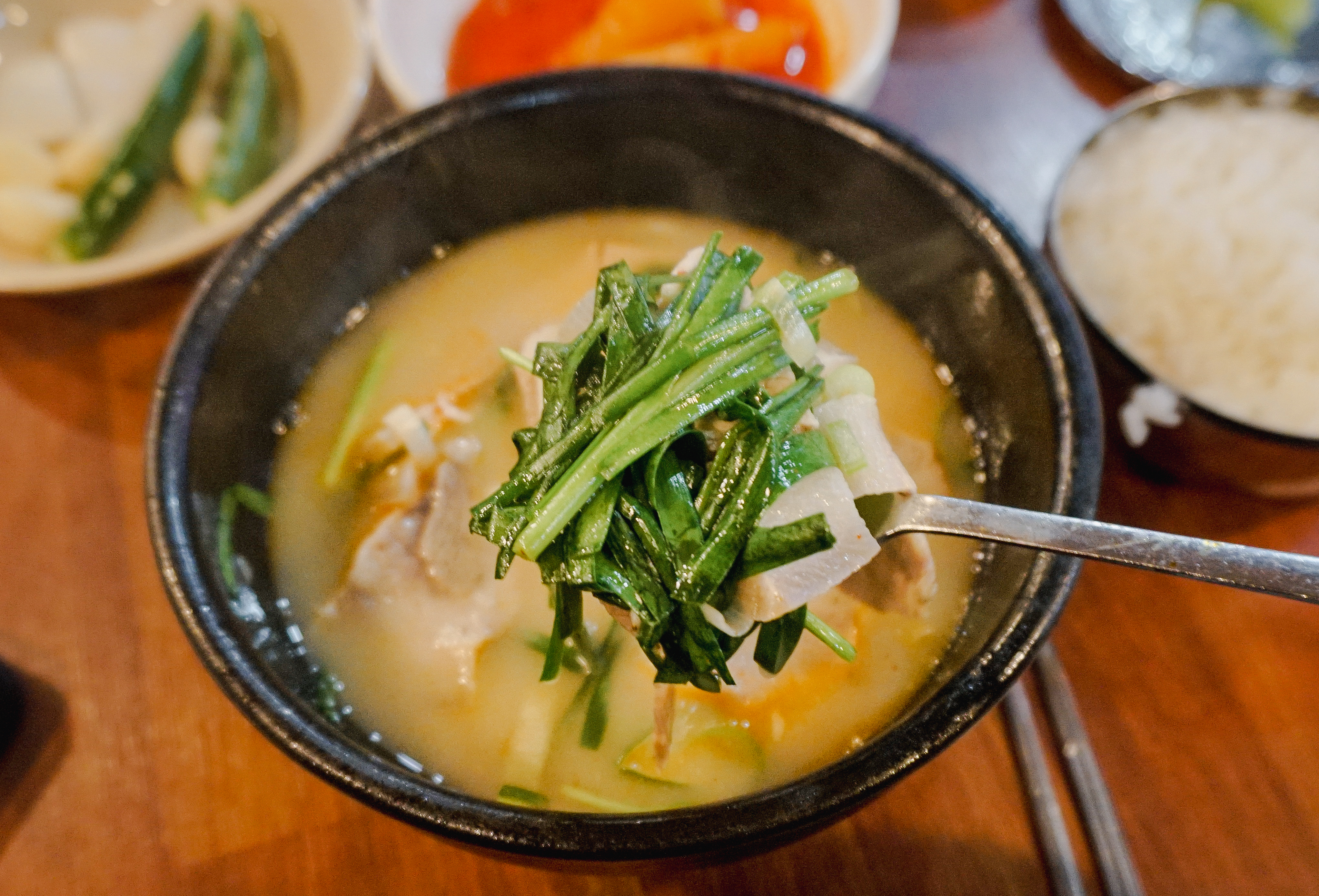 내장도 맛있었지만 돼지국밥 먹으러 갔으니, 돼지국밥을 소개해드려야겠죠? 저는 솔직히 돼지국밥은 좀 고기가 퍽퍽하고 국물이 진득한 맛이 적어서 아쉬웠어요. 새우젓이랑 부추를 풀어넣어도 뭔가 부족한 맛이 채워지지를 않더라고요.