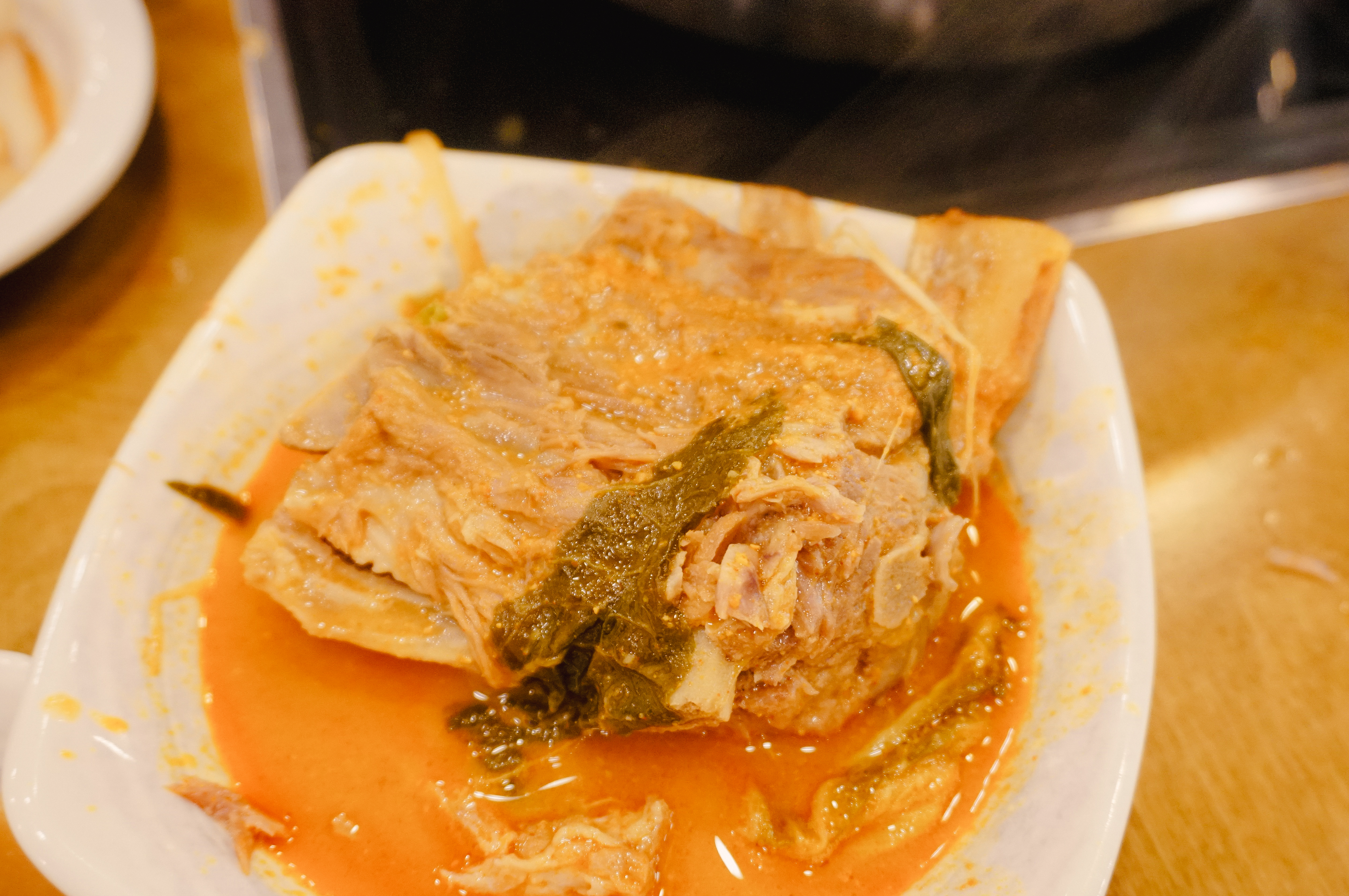 주문한 감자탕이 나왔습니다. 고기도 제법 들어있고, 국물은 꽤나 맵칼했습니다. 반찬들도 맛이 괜찮았고 특히 배추김치는 바로 담가서 그런지 아삭아삭 씹히는 맛이 있었습니다.