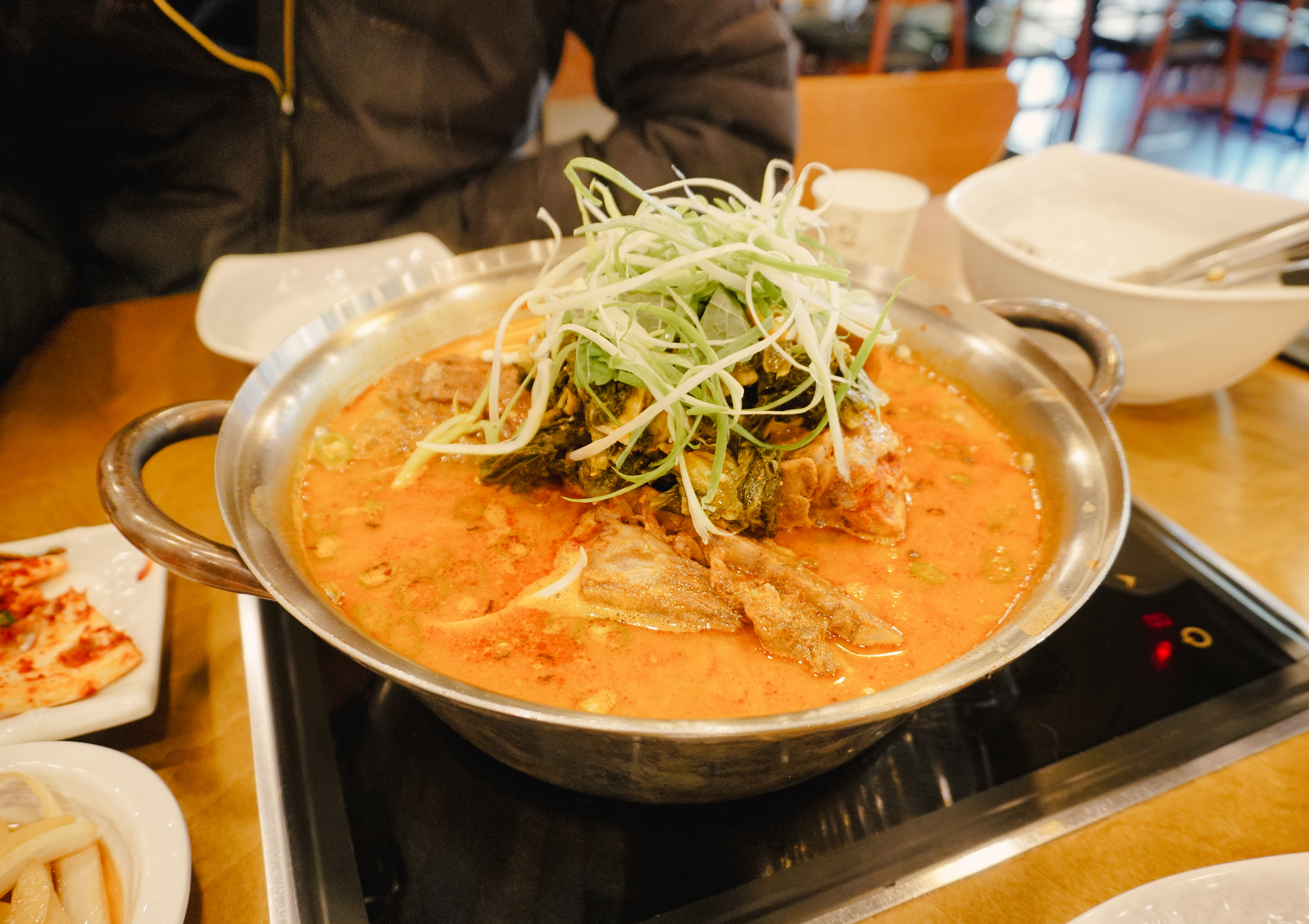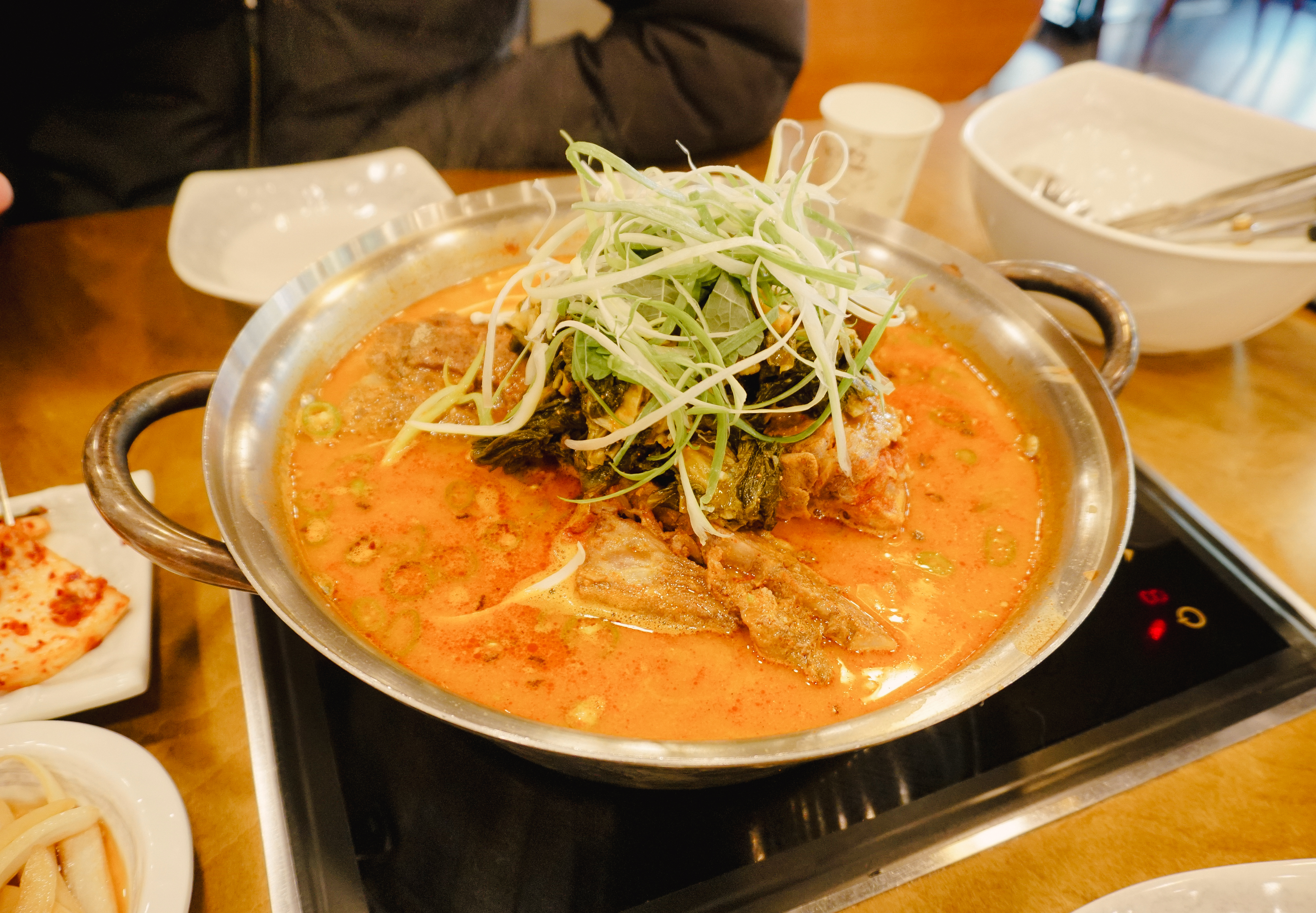 감자탕은 솔직히 평범했습니다. 맛집이라기보다는 그냥 흔한 감자탕집 정도, 친구가 먹고 싶다고 해서 방문했는데, 딱히 특별한 것도 없고 고기도 엄청 부드럽거나 하지는 않아서 제 기준엔 쏘쏘 했습니다. 얼큰 감자탕이라 해서 청양고추를 꽤 많이 넣었는데, 톡 쏘는 매운맛이 있더라고요. 양념이 더 진한 게 아니라 자극적인 매운맛이라 호불호가 있을 듯합니다.
