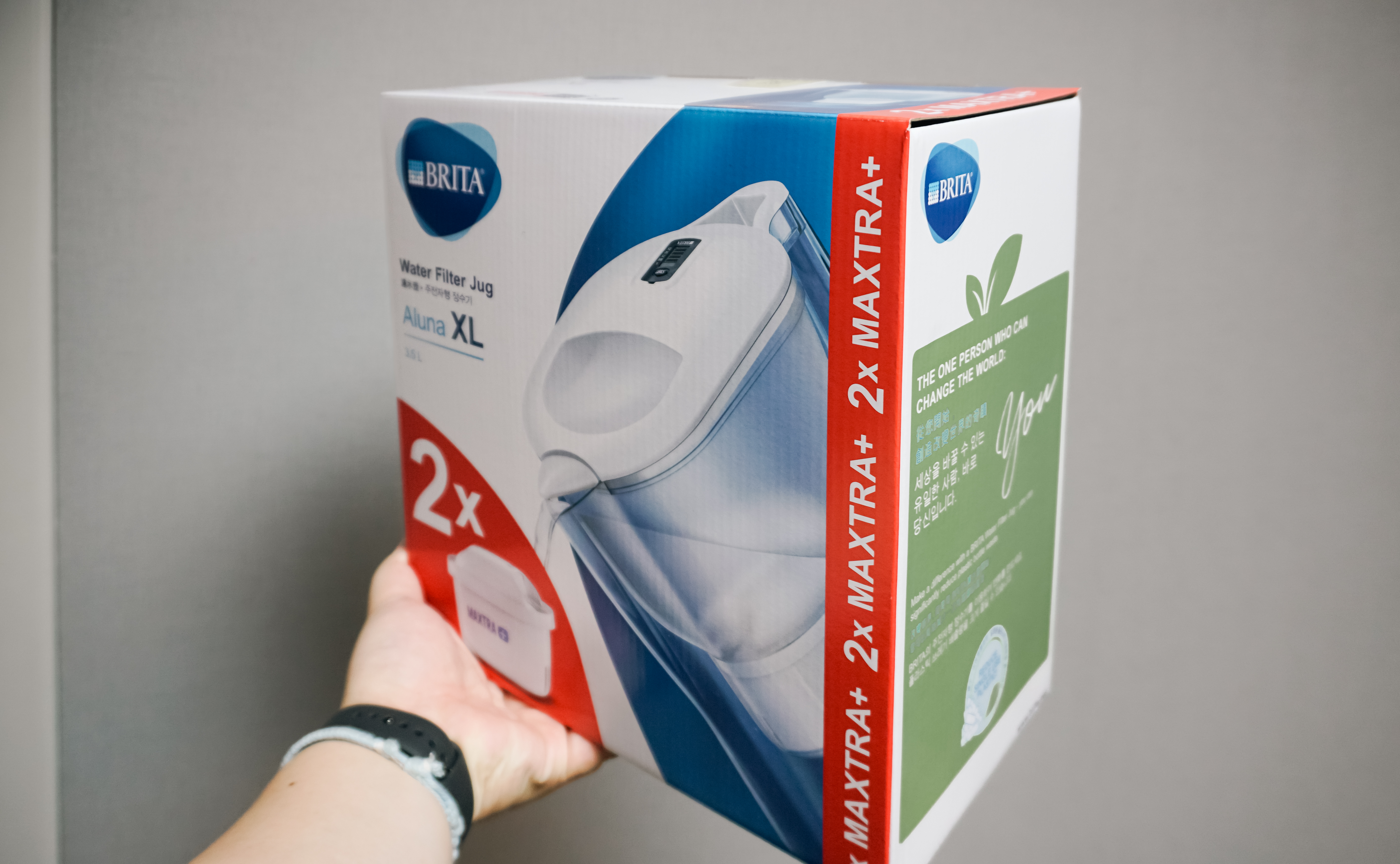 코스트코에서 구입할 수 있는 제품은 42,990원에 판매 중인 'BRITA Aluna XL(브리타 알루나 XL)' 모델입니다. 해당 상품에는 '막스트라+' 라는 정수기 필터가 2개가 기본적으로 들어있었고, 대부분 코스트코에서 브리타 정수기를 입문하시는 분은 같이 구입하시는 여분필터 6개 입니다. 정수필터 하나당 150L 정도의 수돗물을 정수할 수 있다고 하며, 집에서 주로 시켜 먹는 2L 생수병으로 환산해 보니 75통이 나오더라고요. 한 묶음에 6통이니 12.5 묶음정도가 나온다고 할 수 있겠습니다. (코스트코 판매링크)
