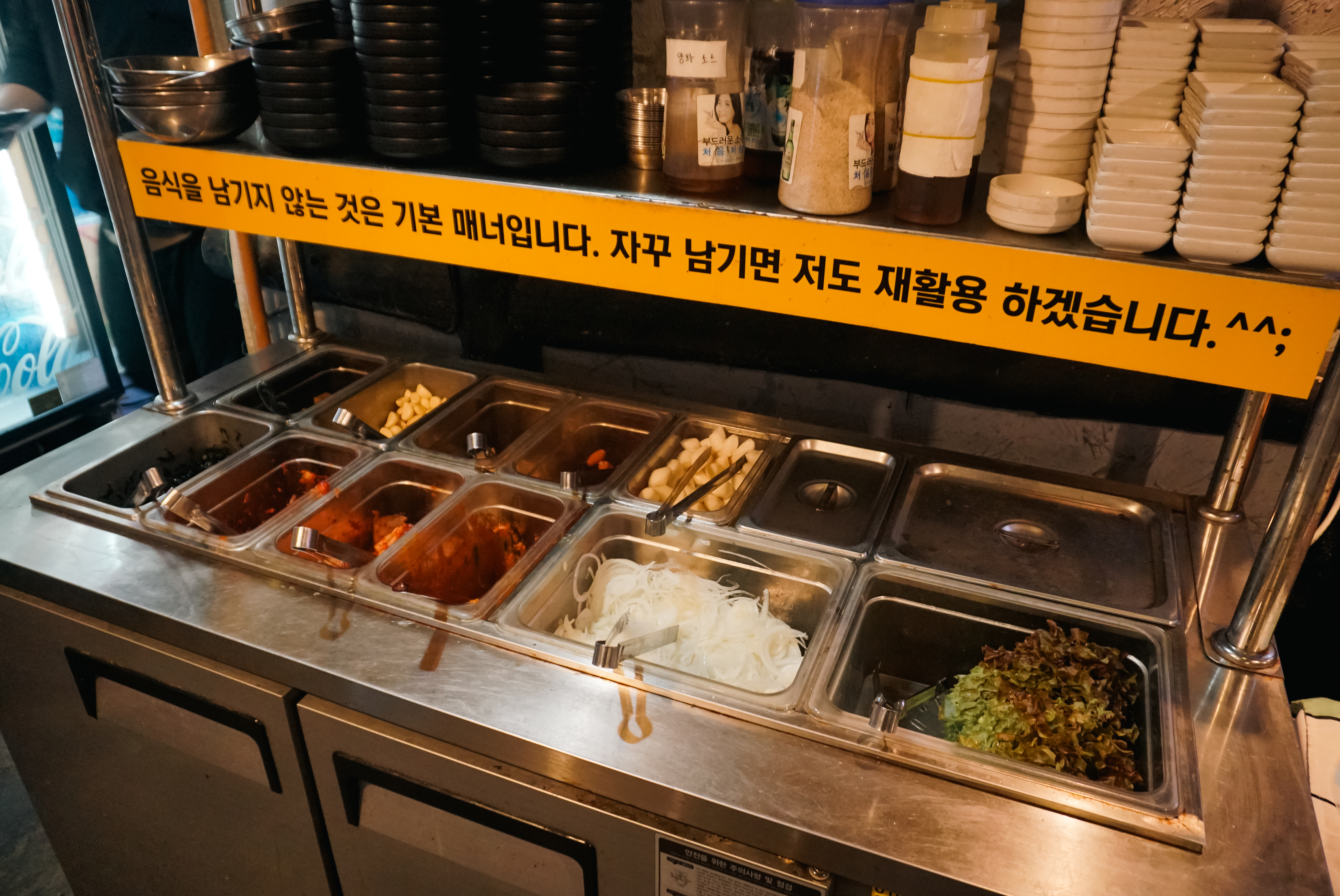 보통 음식점에서 음식물 남는 것에 대해 어려움이 있다는 것은 알지만, "음식을~ 자꾸 남기면 저도 재활용 하겠습니다." 라는 식의 공격적인 문구는 돈을 주고 사 먹는 손님으로써 조금은 불쾌한 문구였습니다.