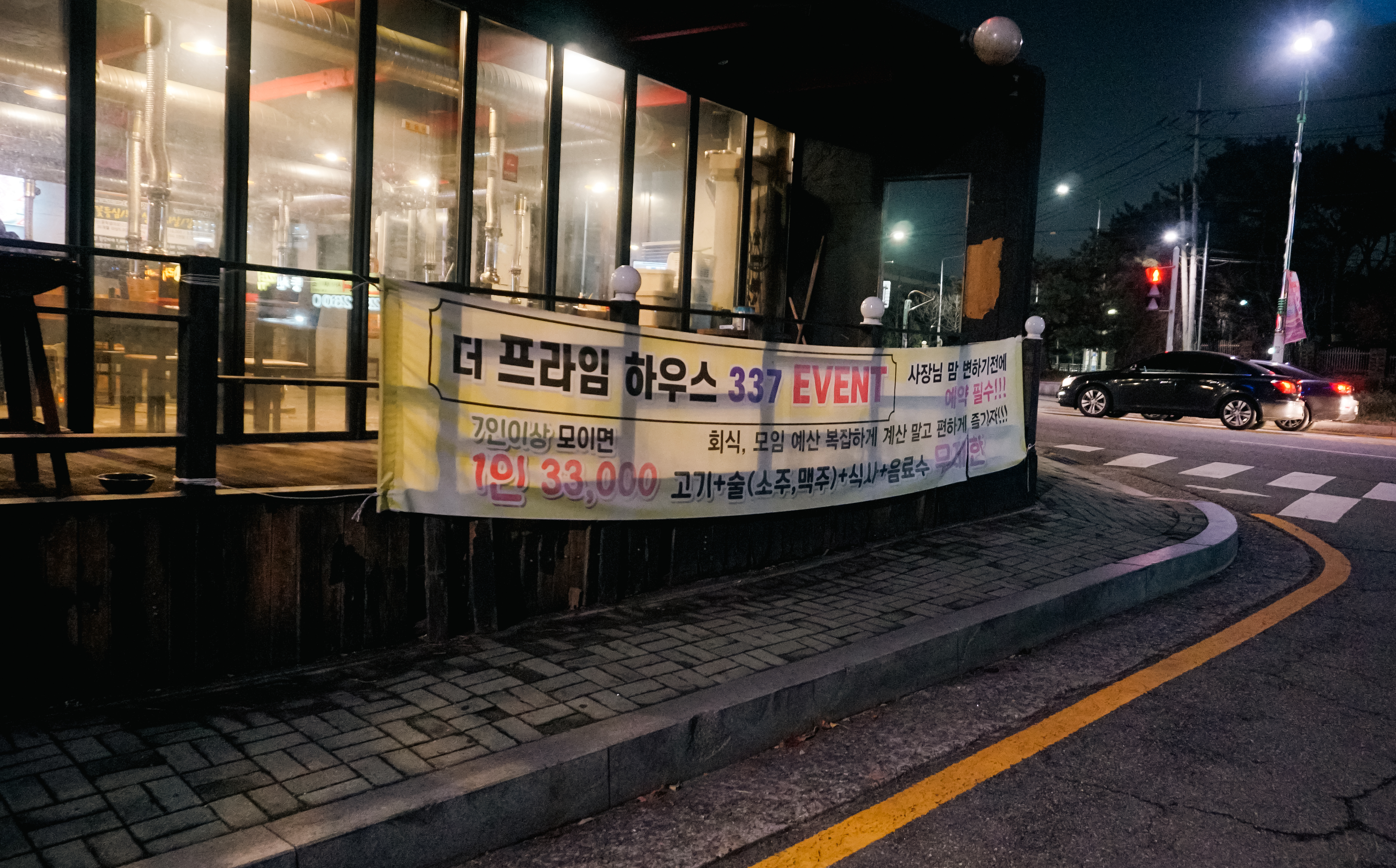 건물에 약 5대 정도 주차할 수 있는 주차공간이 마련되어 있었고, 이곳은 337 이벤트라고, 7명 이상 회식할 경우 33,000원에 고기, 술, 식사, 음료수 무제한 제공 하고 있었습니다. 저는 친구와 둘이서 방문했기 때문에 일반 가격으로 주문했습니다.