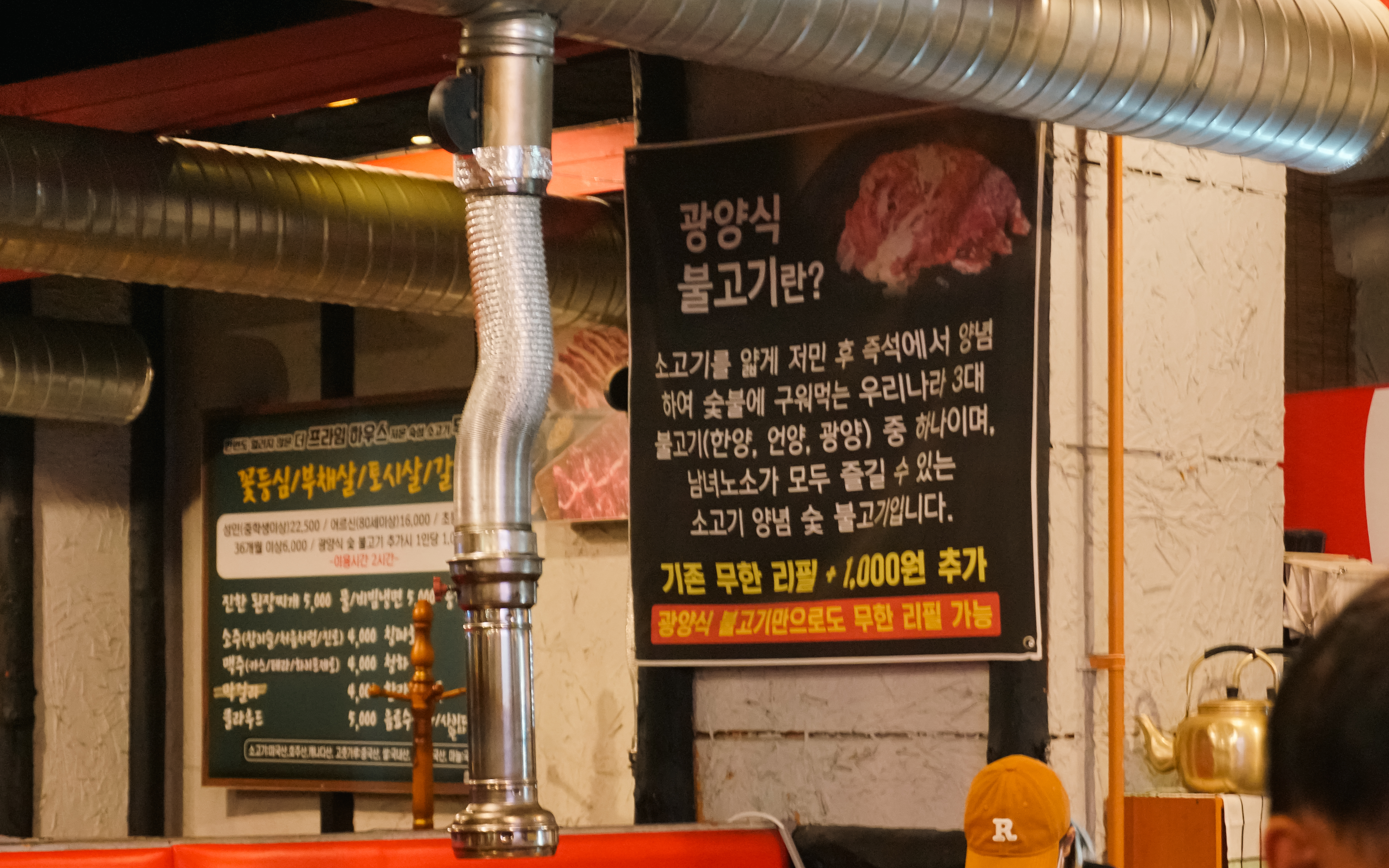 더프라임하우스의 무한리필 메뉴는 소고기 꽃등심, 부채살, 토시살, 갈비살이었고, 식사 메뉴는 진한된장찌개, 물냉면, 비빔냉면, 등이 있었습니다. 광양식 숯불고기 추가 시 1,000원씩 추가를 받고 있다고 합니다.
