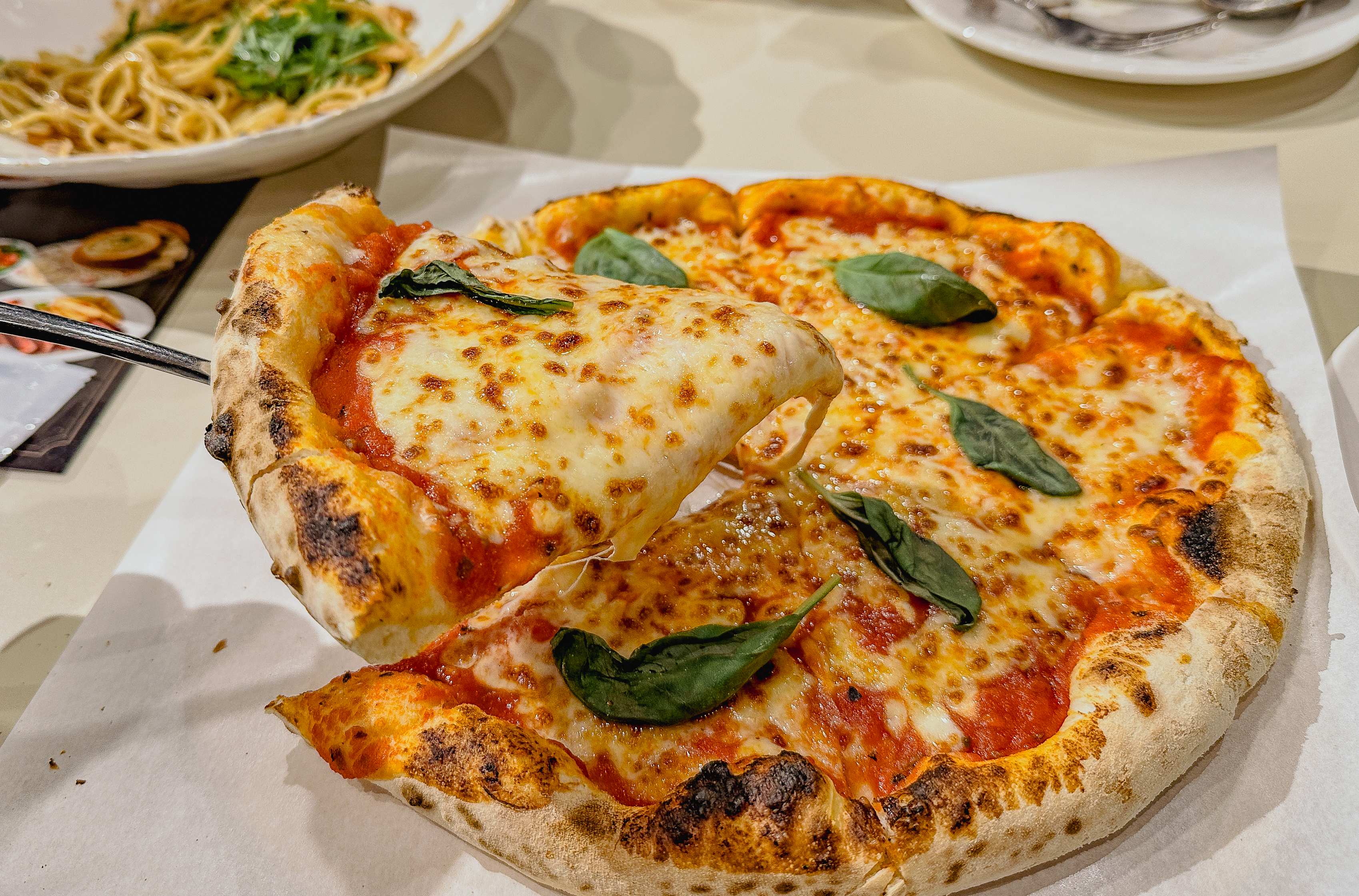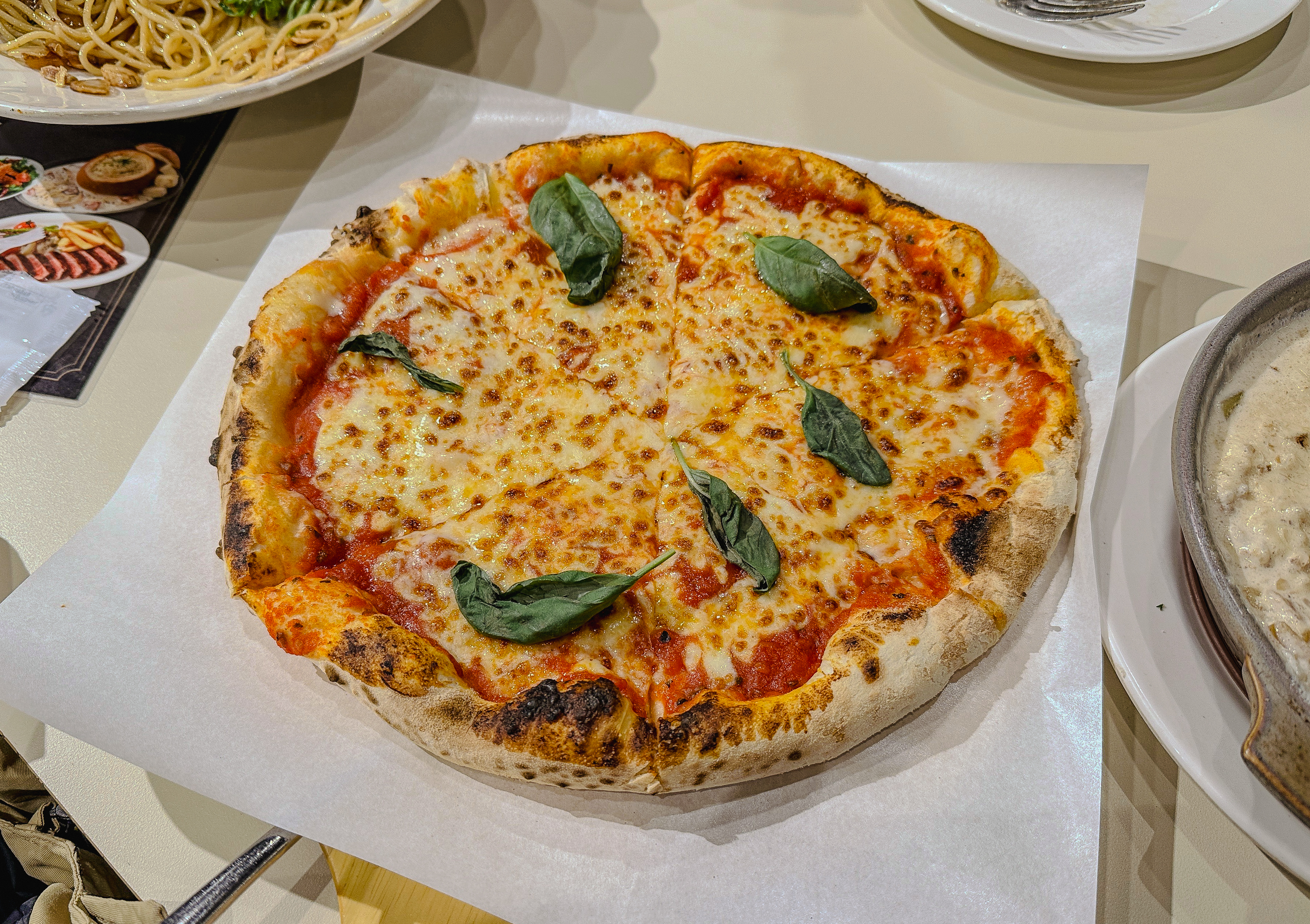 마르게리따 피자도 토마토소스와 바질을 얹은 피자 위에 치즈를 듬뿍 올려 고소하면서도, 새콤한 맛이 괜찮았습니다. 식전빵으로 나왔던 깔조네와 비슷한 식감으로 쫄깃한 빵은 먹기에 괜찮았습니다.
