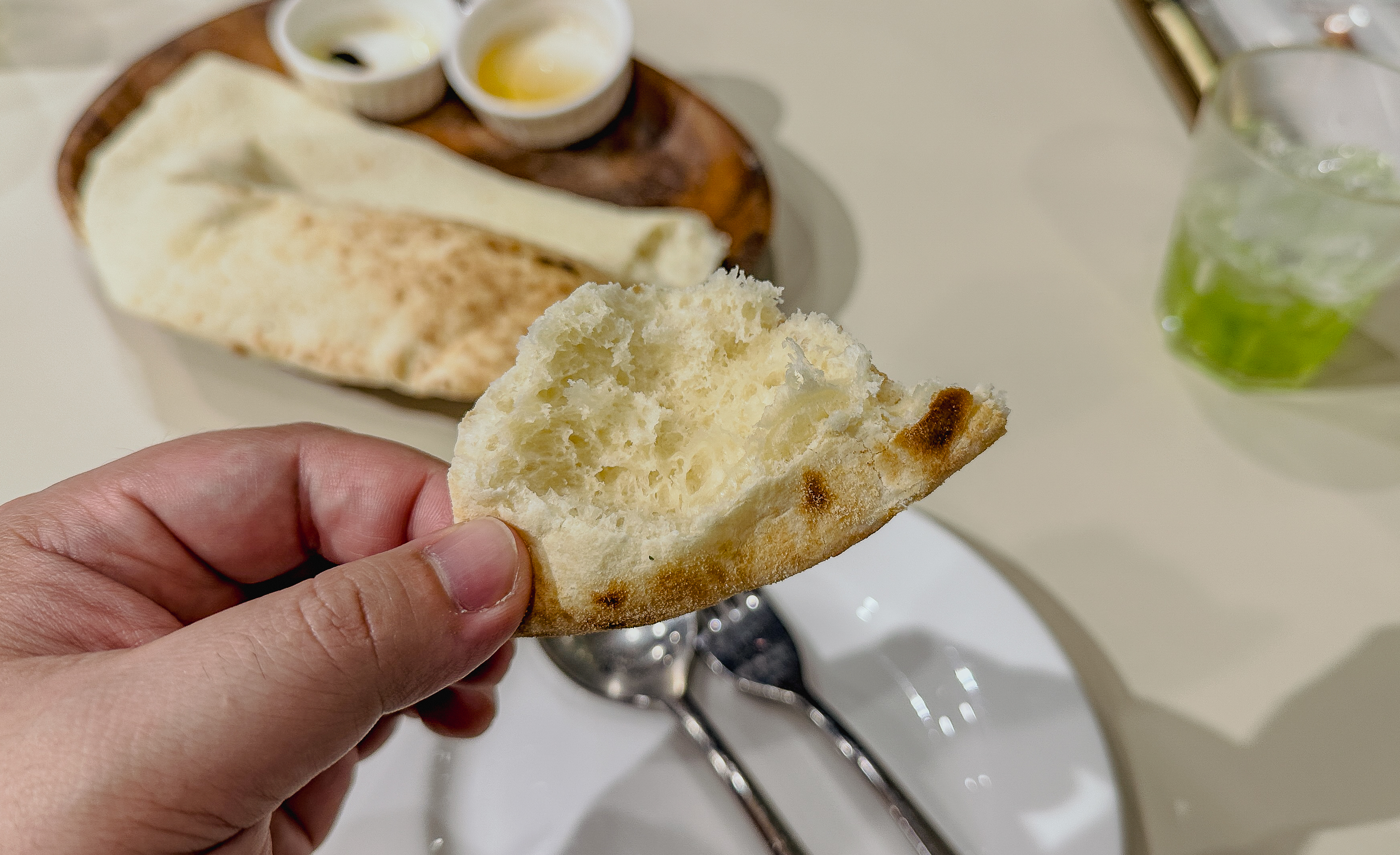 문정동 리미니에서는 식전빵으로 반달 모양의 깔조네를 제공하고 있었고, 커피나 음료를 무제한 무료로 제공하고 있었습니다. 깔조네는 기본적으로 제공되는 올리브오일이나 꿀과 곁들여 먹으면 좋았고, 빵은 갓 구워내 부드럽고 쫄깃했습니다.