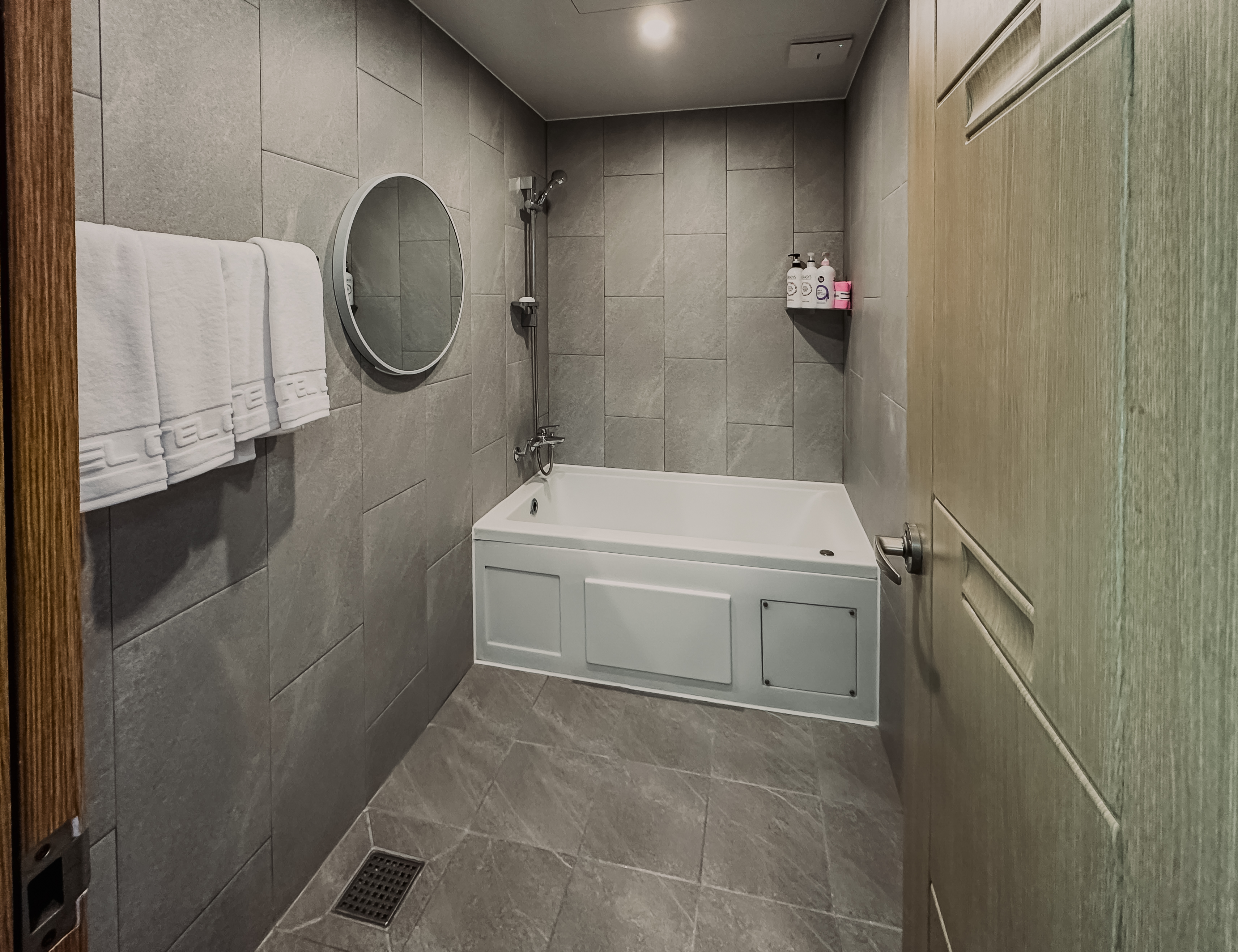 욕실도 최근에 인테리어를 새로 해서 그런지 깔끔한 분위기가 참 좋더라고요. 구조에 따라서 욕실과 화장실의 구분이 되어있는 곳도 있고, 구분 없이 사용되는 곳도 있는 것 같았습니다.