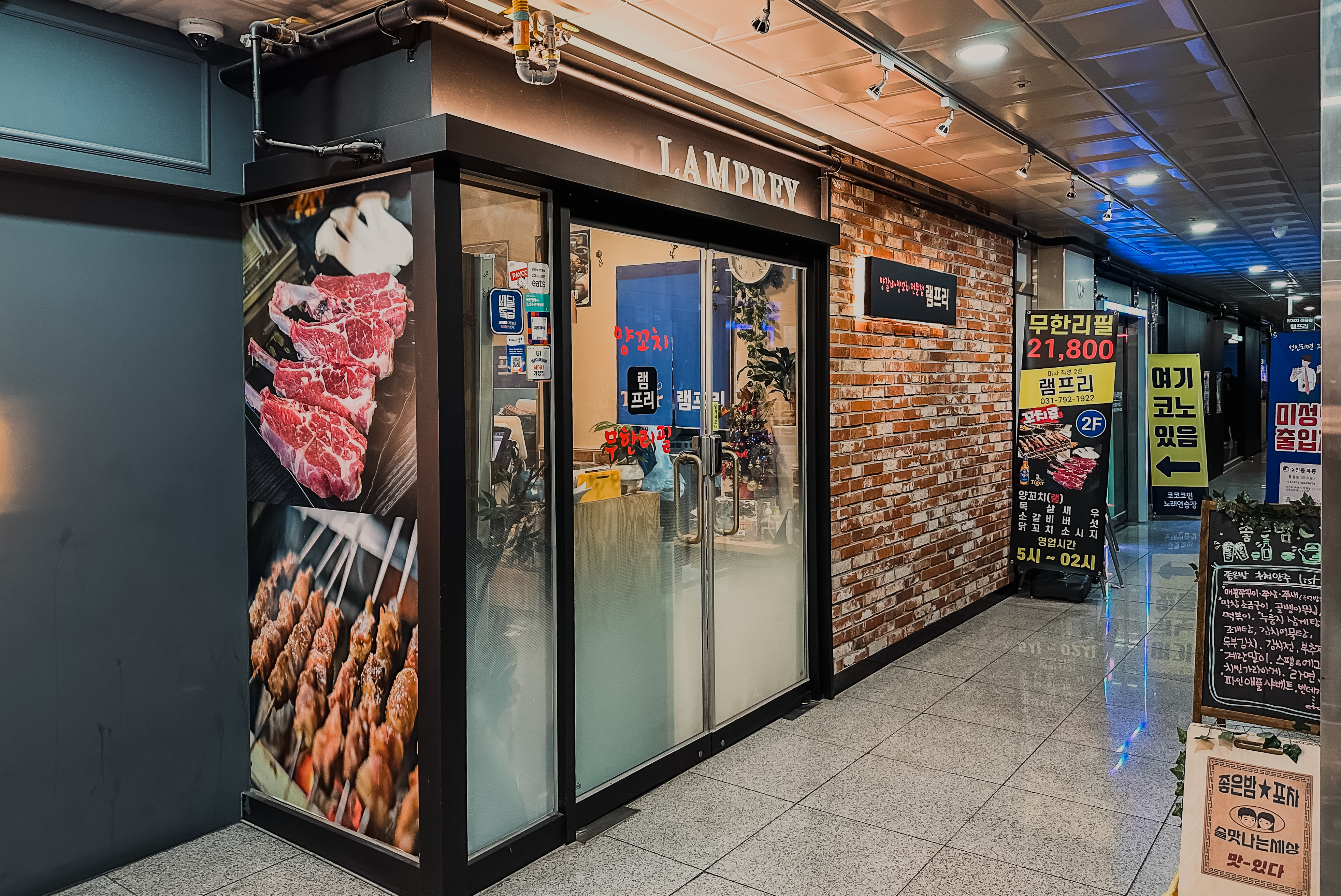 제가 다녀온 램프리는 경기 하남시 망월동 1111-1, (신성프라자1) 2층 에 위치한 가게로, 21,800원에 2시간 동안 6가지 꼬치를 무한리필로 먹을 수 있다고 할 수 있다고 합니다. 건물 내 지하주차장을 이용할 수 있었고, 주차는 가게 이용 시 2시간을 넣어주기 때문에 편리하게 이용할 수 있었습니다. 영업시간은 매일 14:00~02:00 까지라고 합니다.