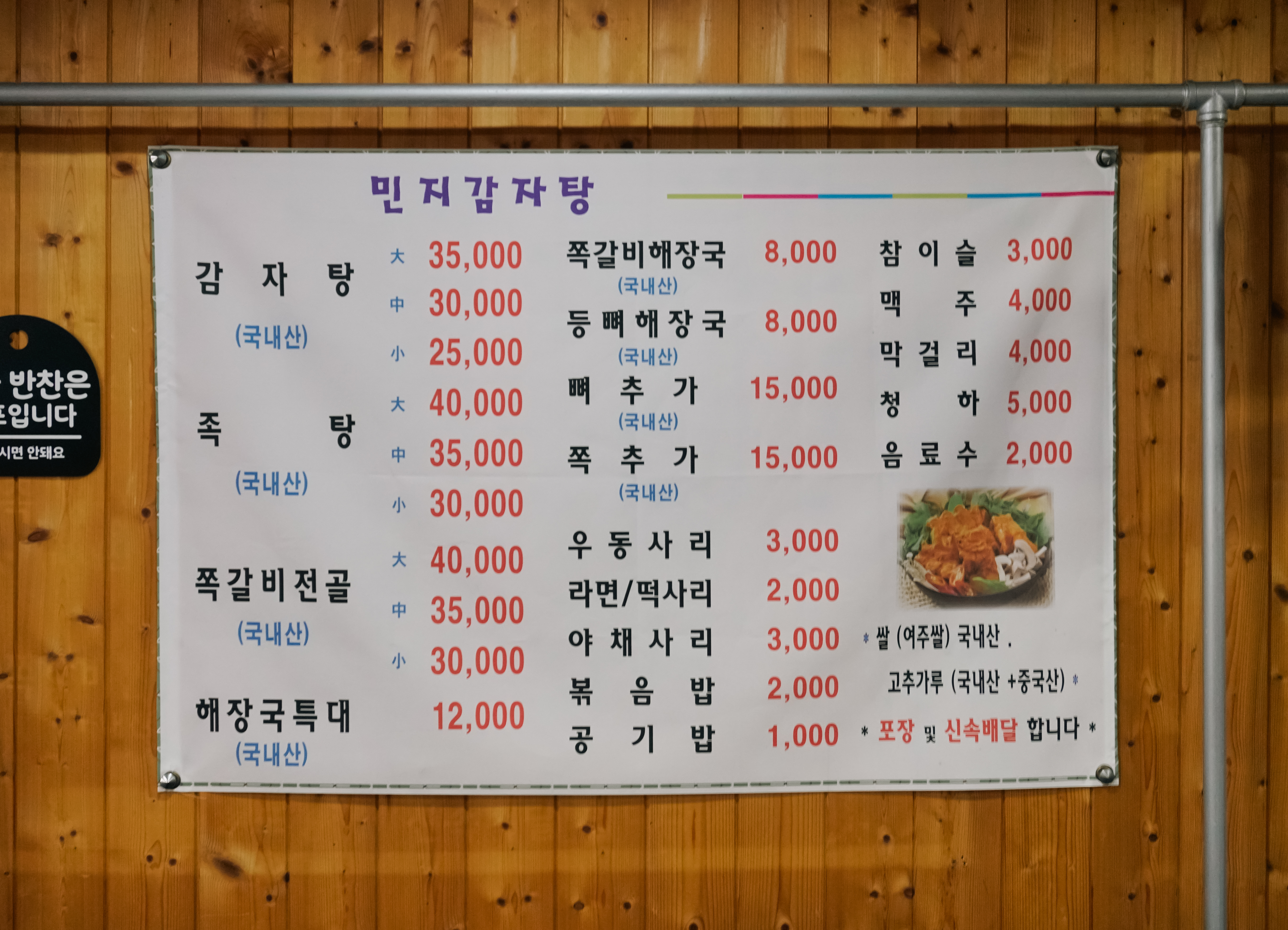 민지감자탕은 경기 여주시 홍문동 271-6 에 위치한 가게였습니다. 주차는 가게 앞에 하면 되었는데, 협소하기도 하고 도로로 사용되는 곳이니 인근의 주차장을 찾아보시는 것을 추천드립니다.