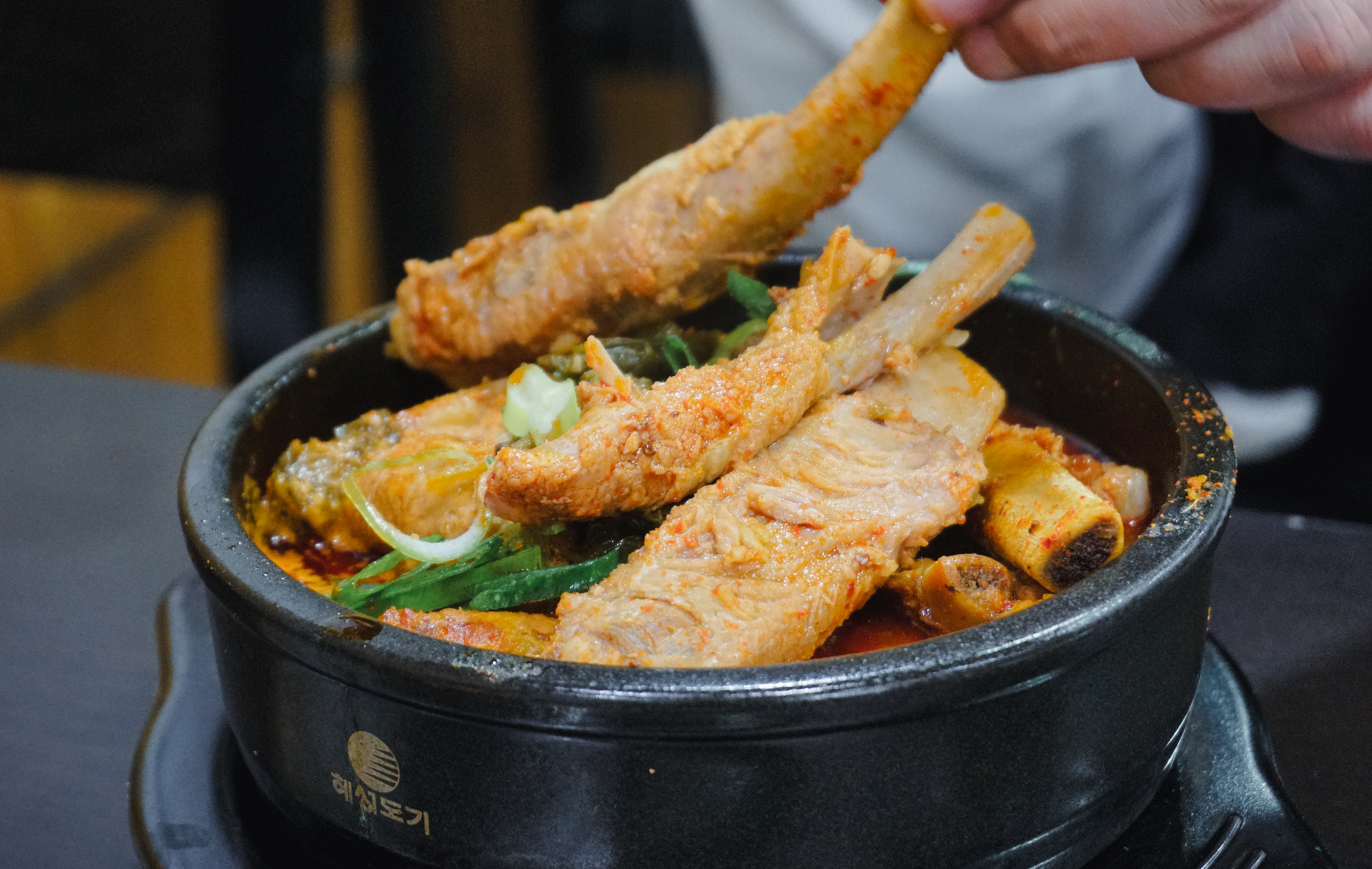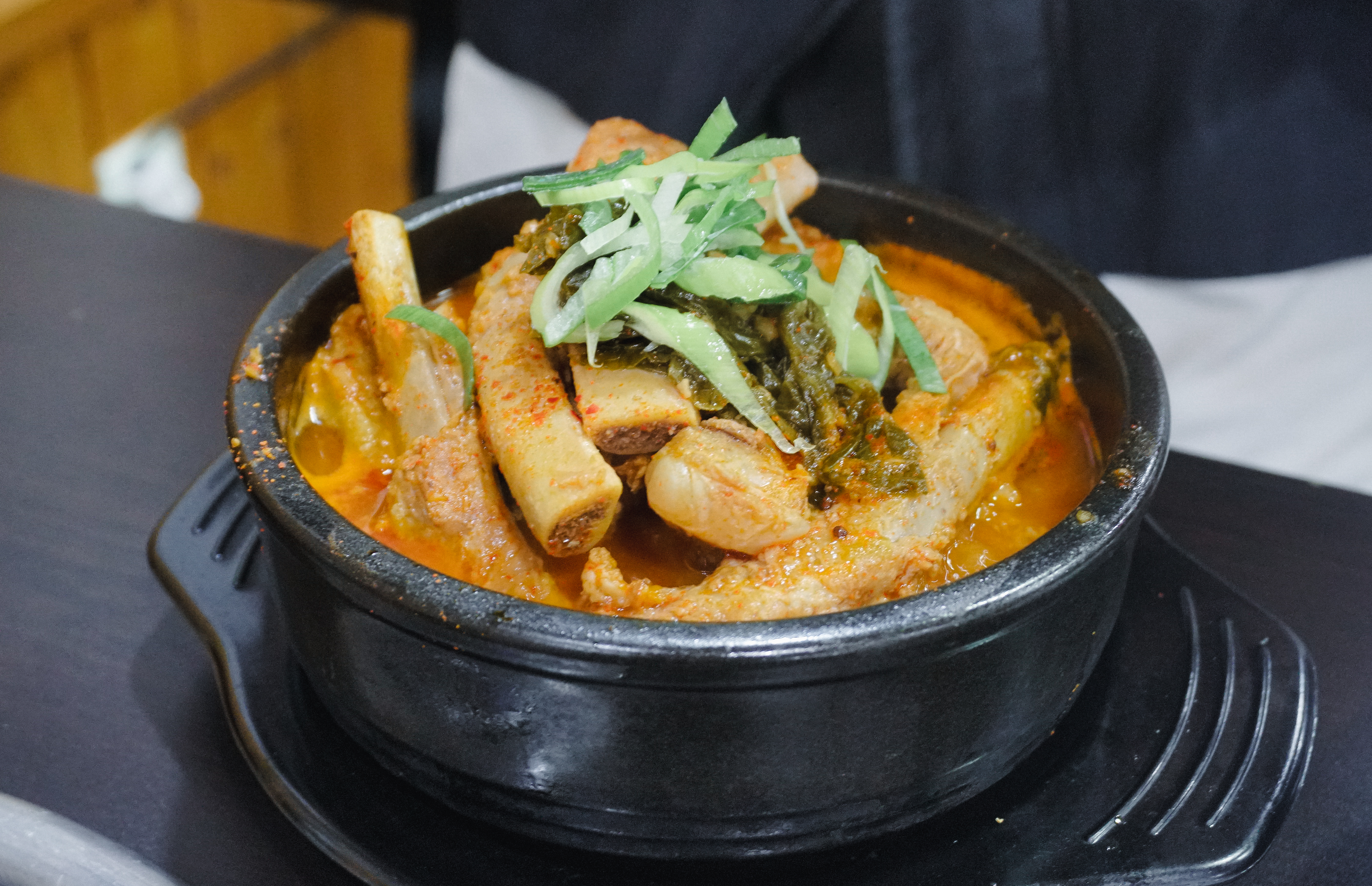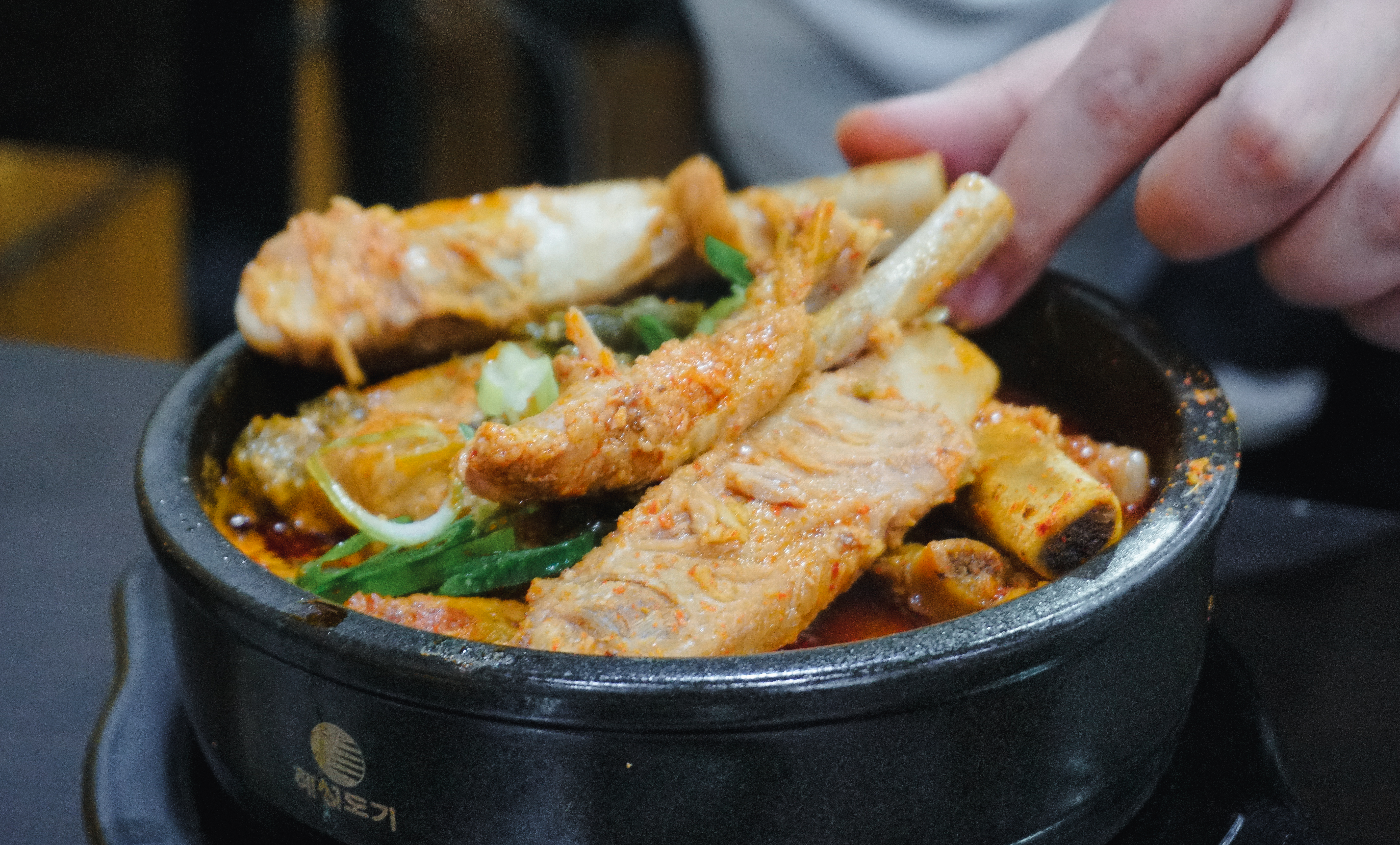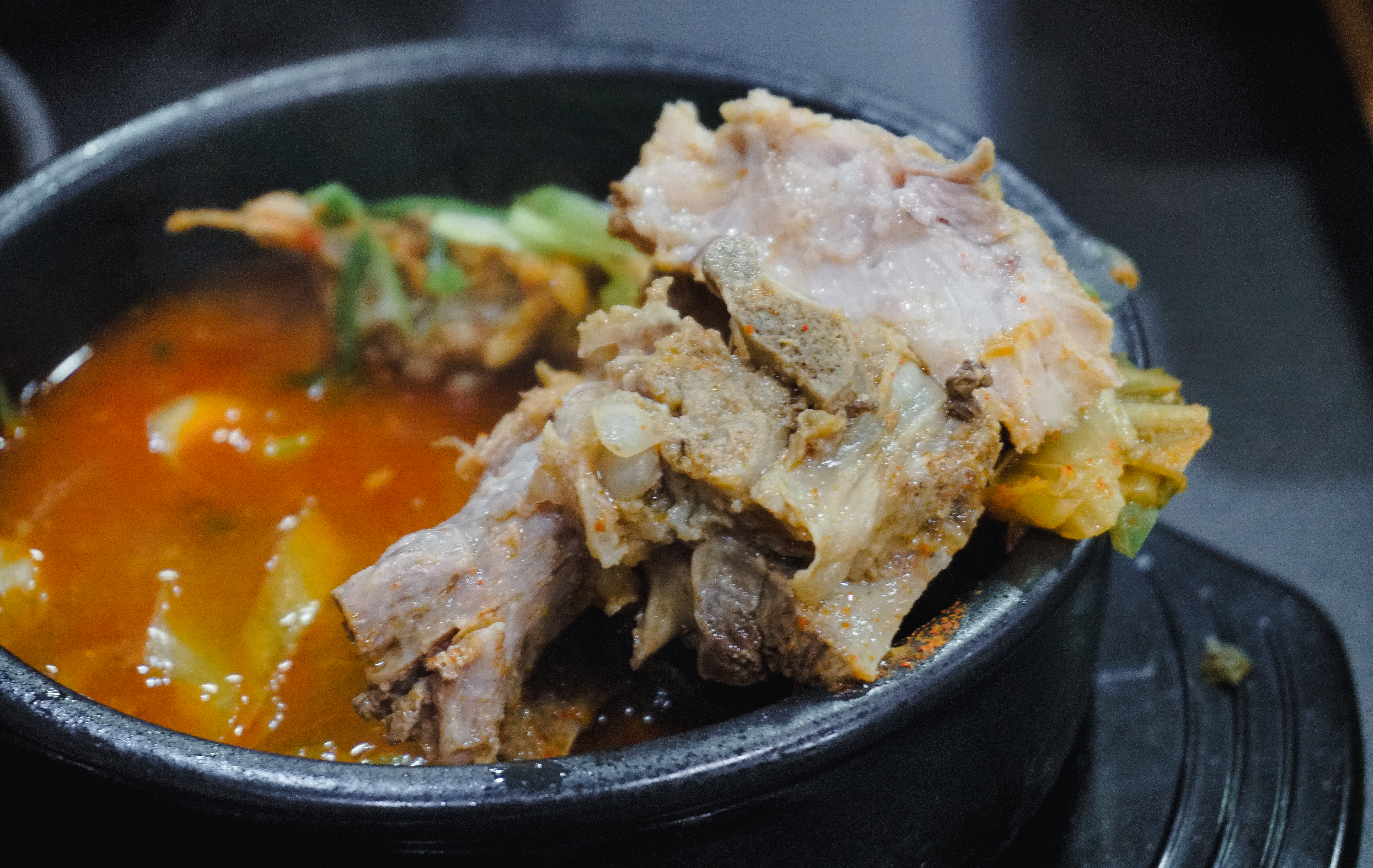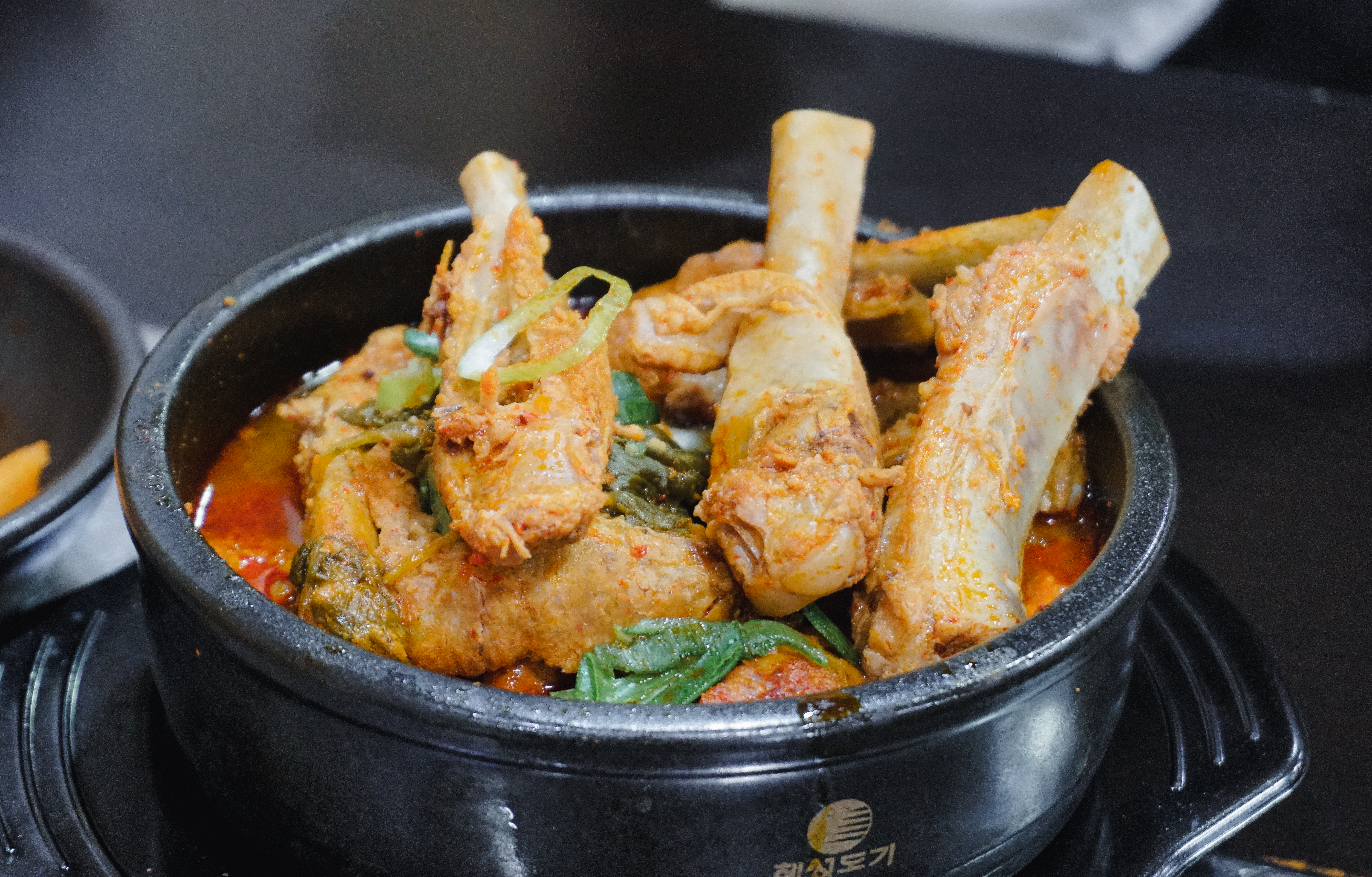 일반적인 감자탕도 맛있지만, 쪽갈비 감자탕은 뼈를 들고 간단하게 발라서 먹을 수 있어서 좋았고, 꽤 많은 뼈가 들어 있어서 양이 부족하지는 않았습니다. 국물은 담백하고 칼칼한 편이었습니다.