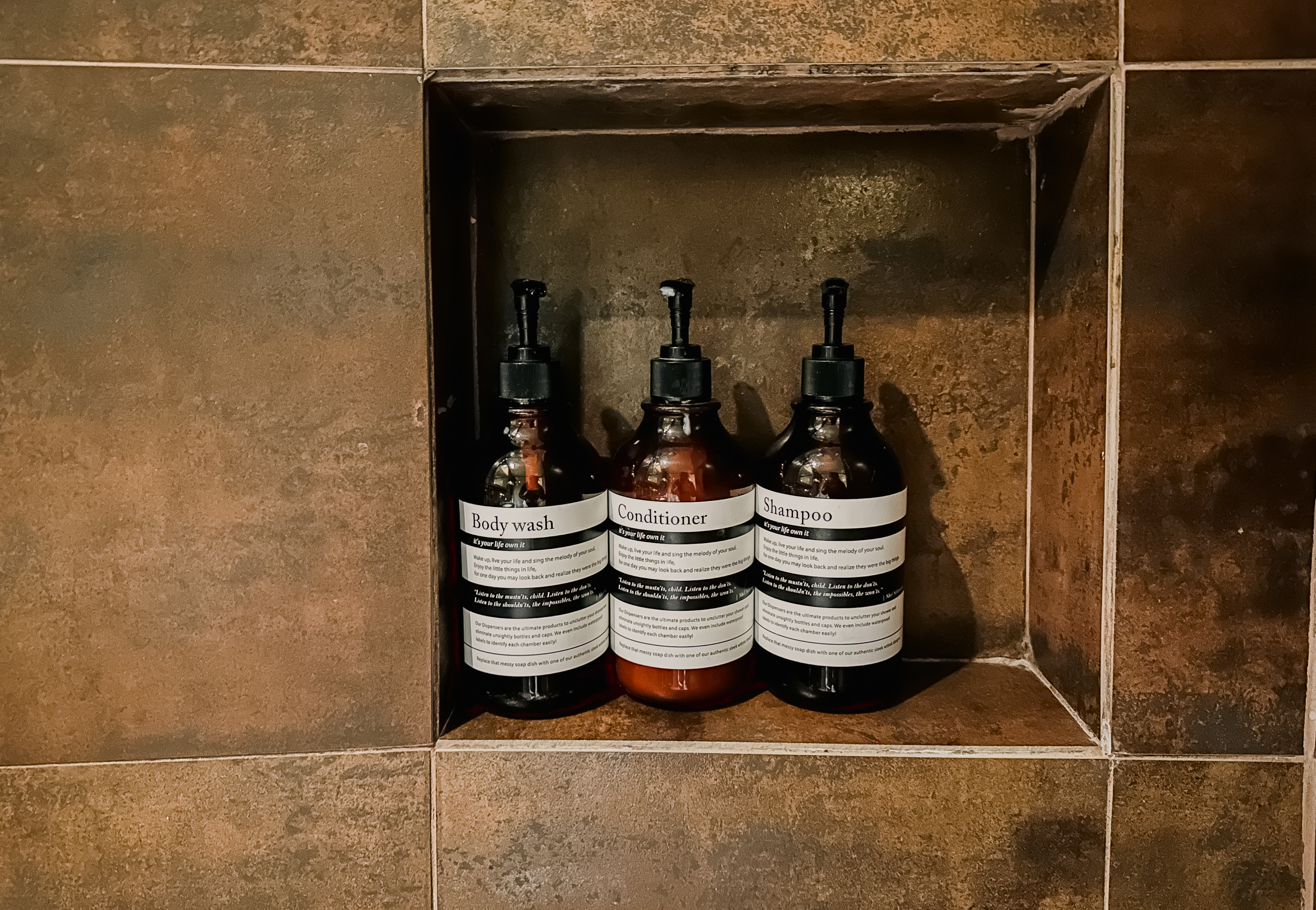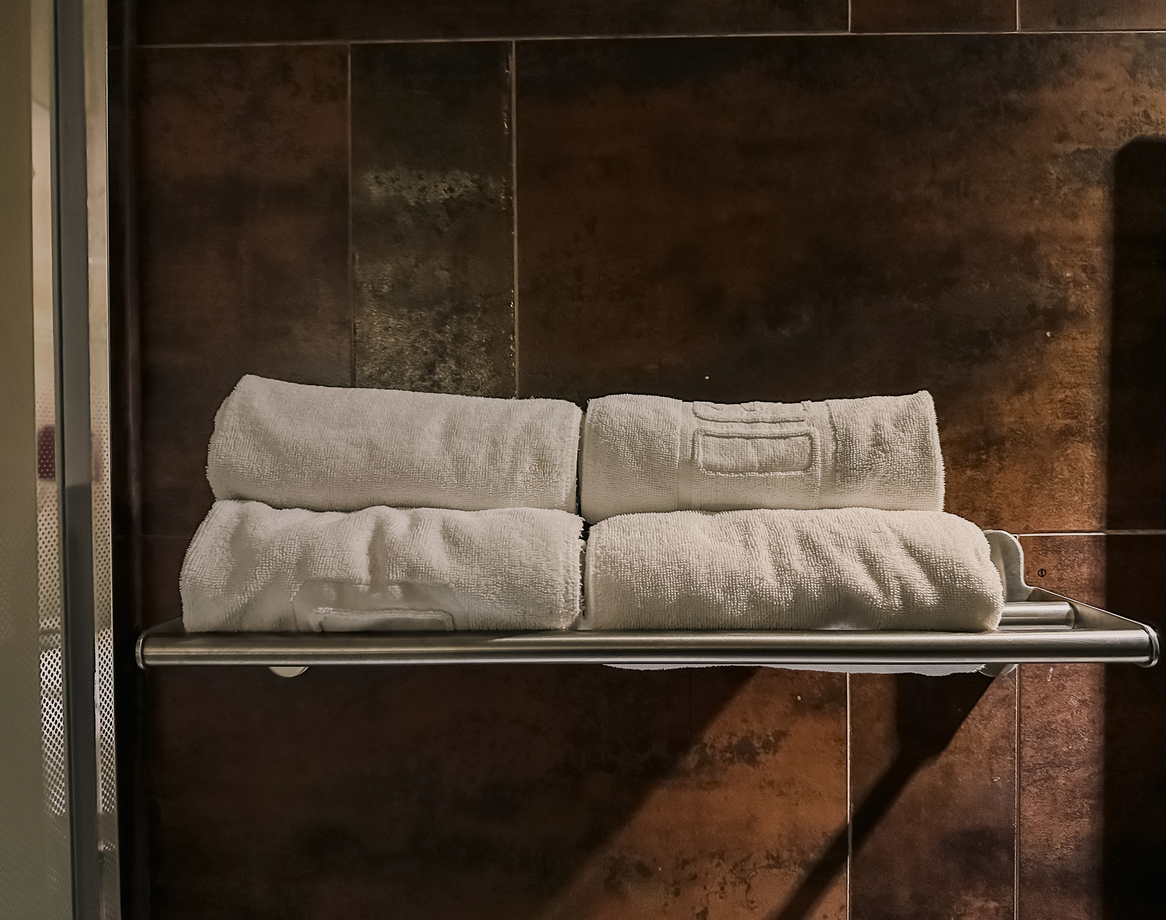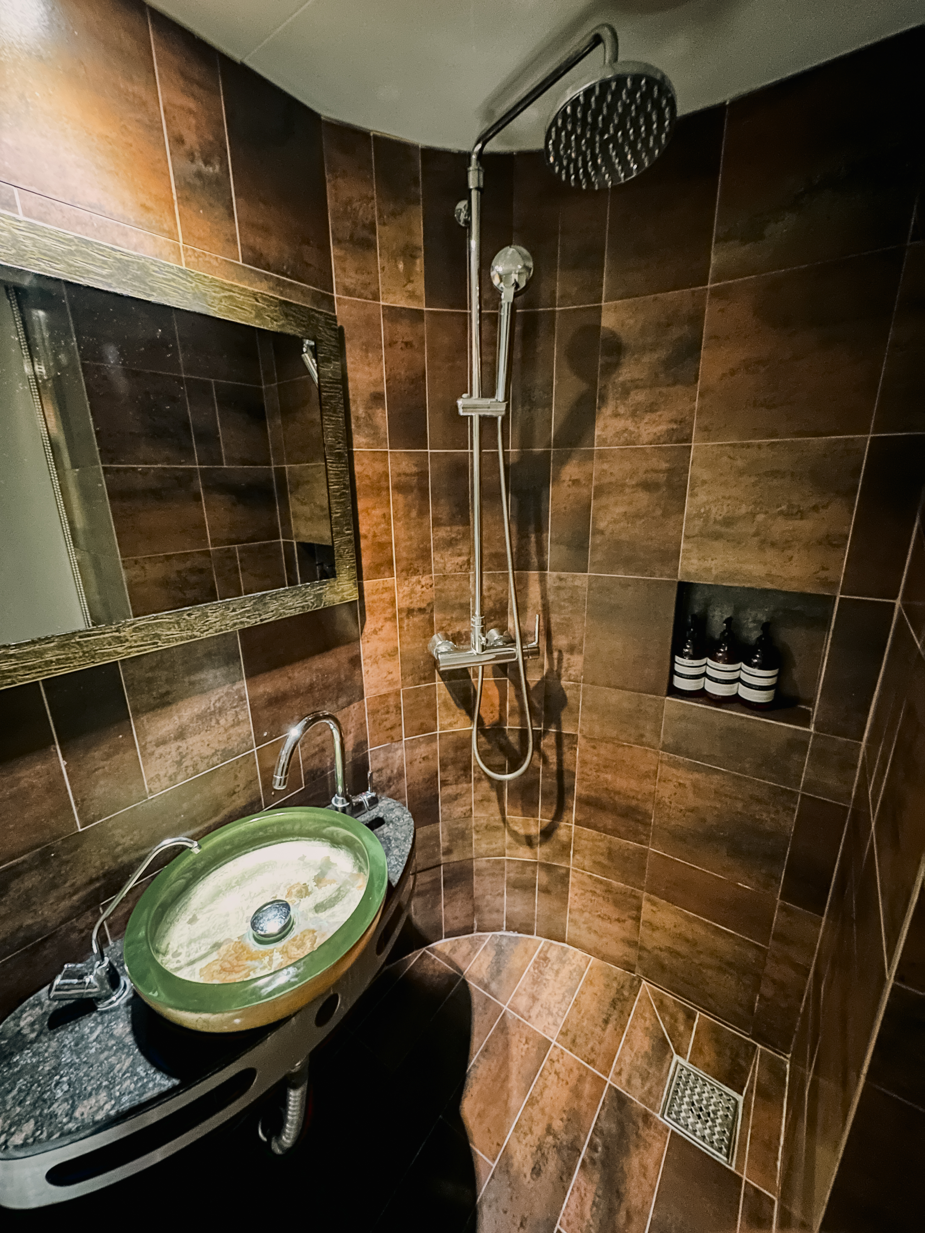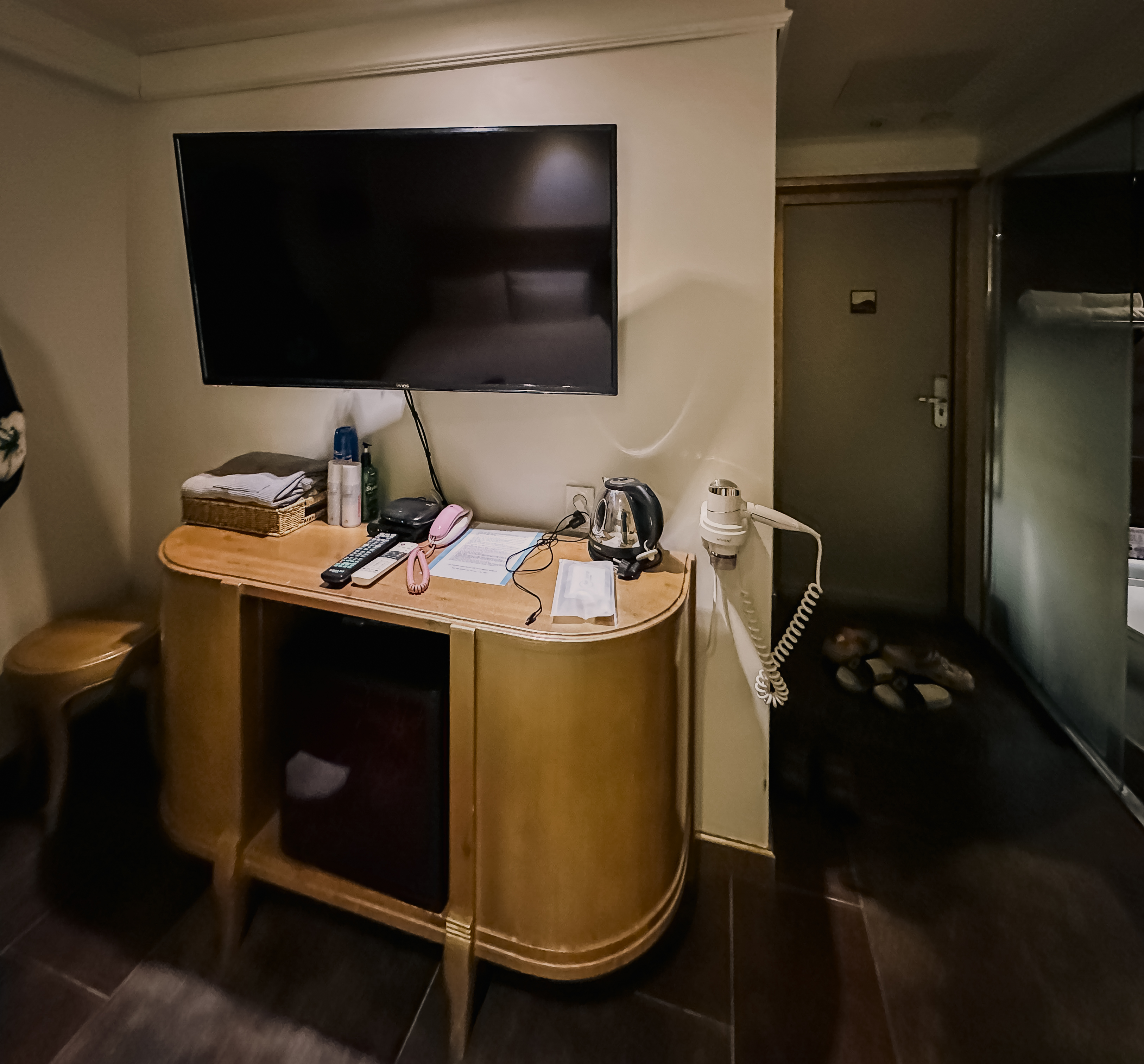 욕실은 조금 작은 편이었는데 바디워시, 컨디셔너, 샴푸 등 별도의 용기에 깔끔하게 담겨 있었고, 수건도 잘 정돈되어 있었습니다. 전체적으로 무난한 느낌이었습니다.